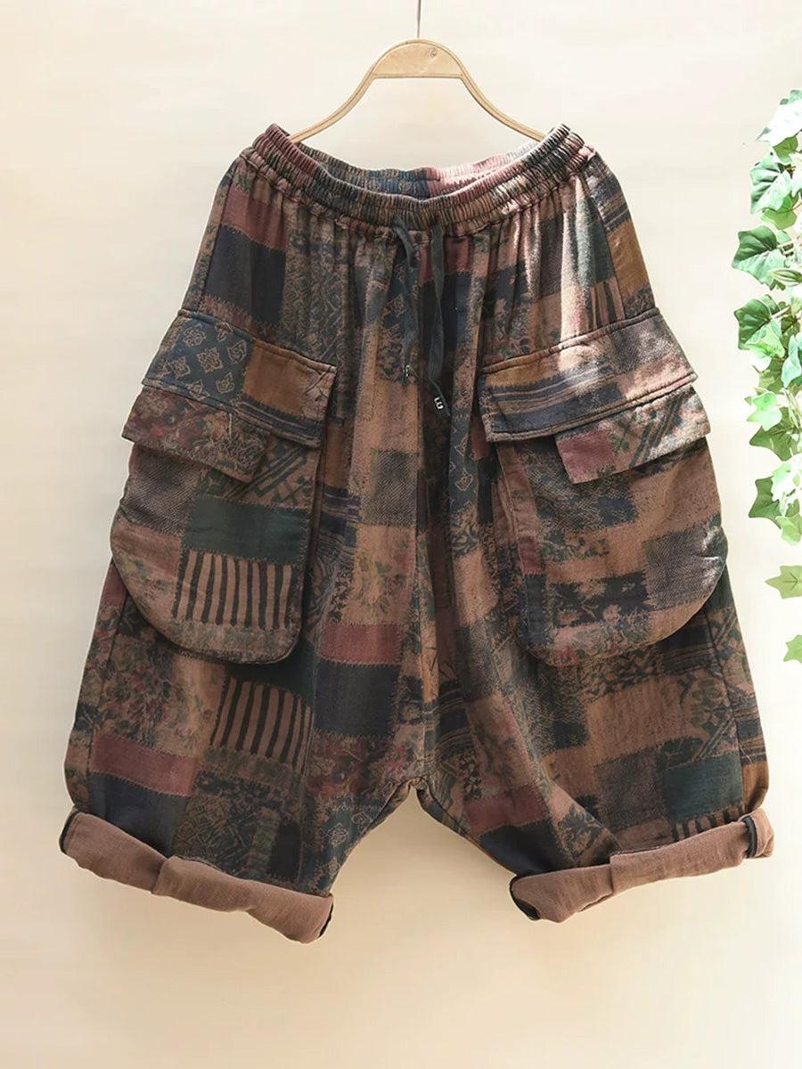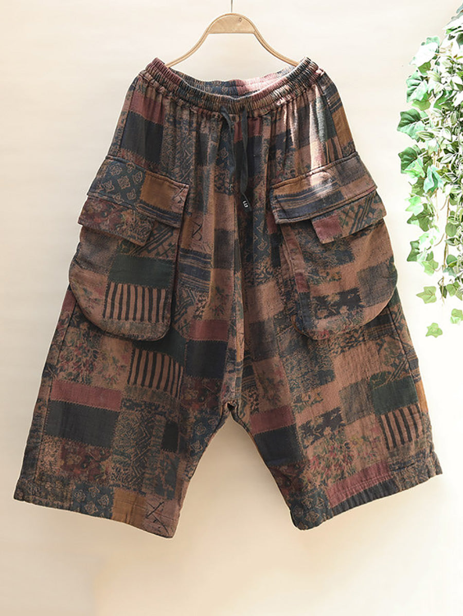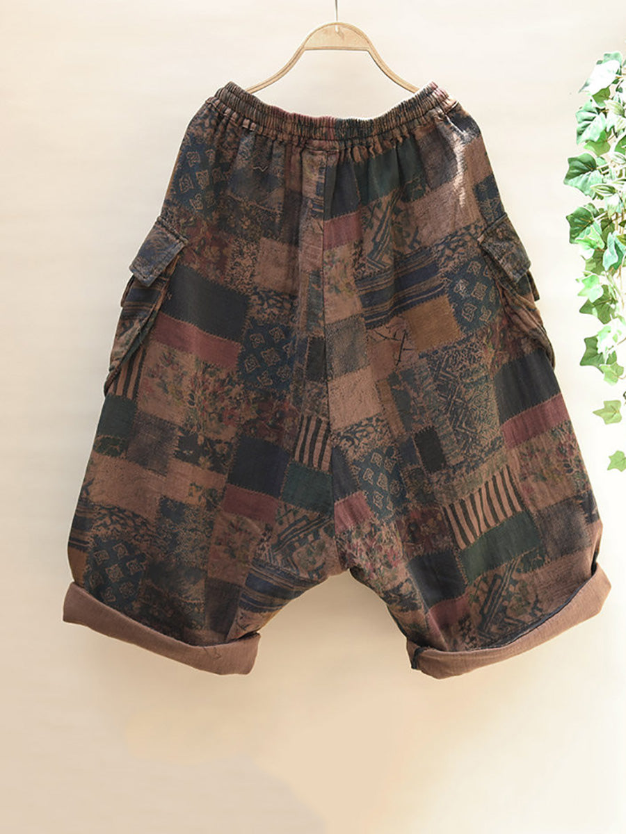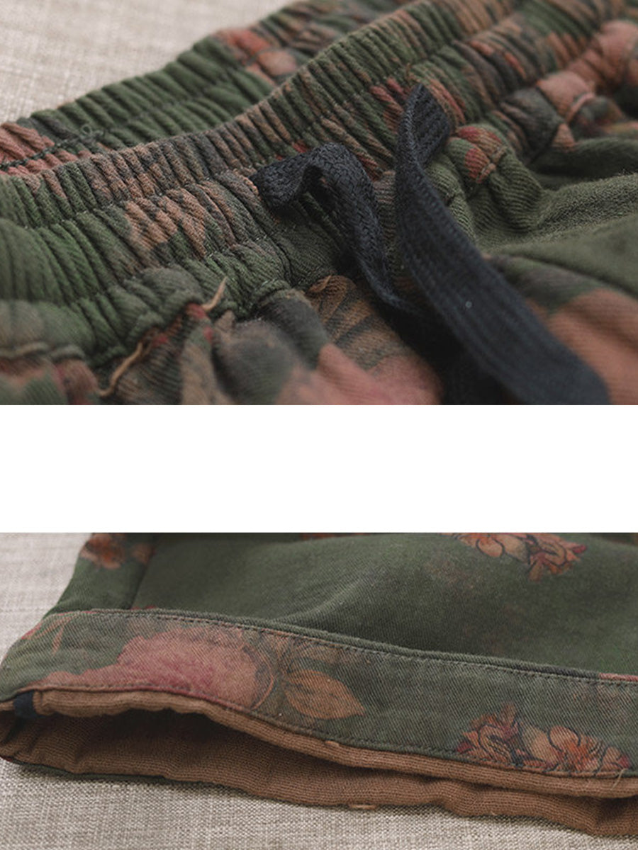Plus Size Women Summer Retro Flower Wide-leg Cotton Pants