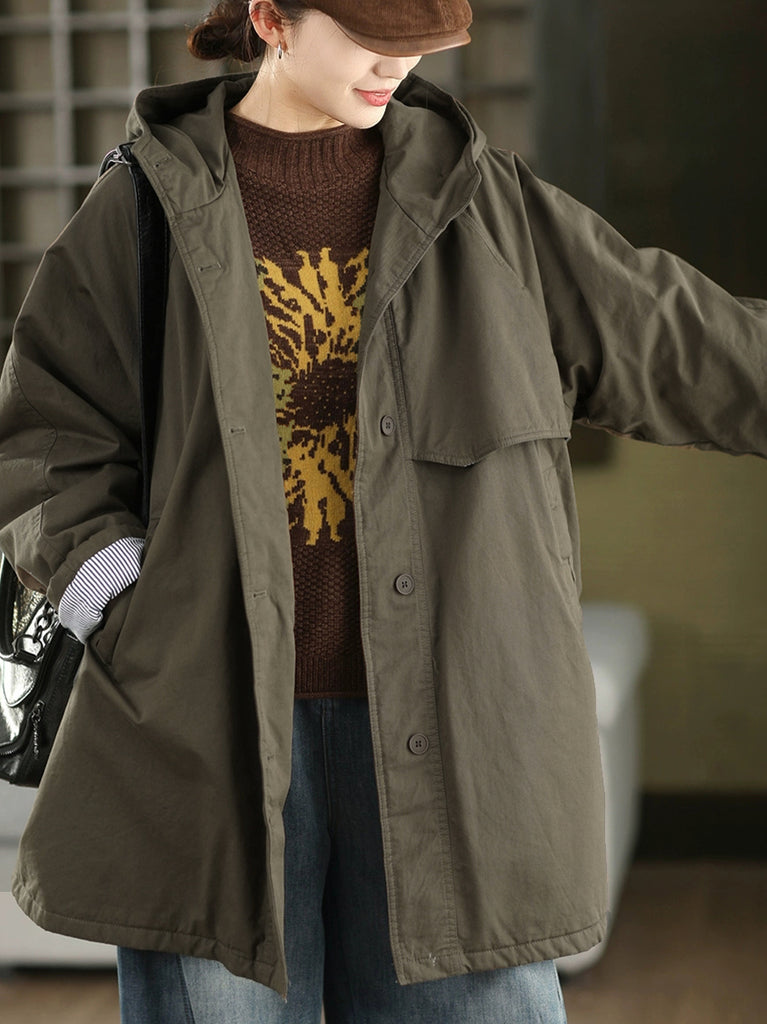 Women Winter Pure Color 100%Cotton Padded Hooded Coat