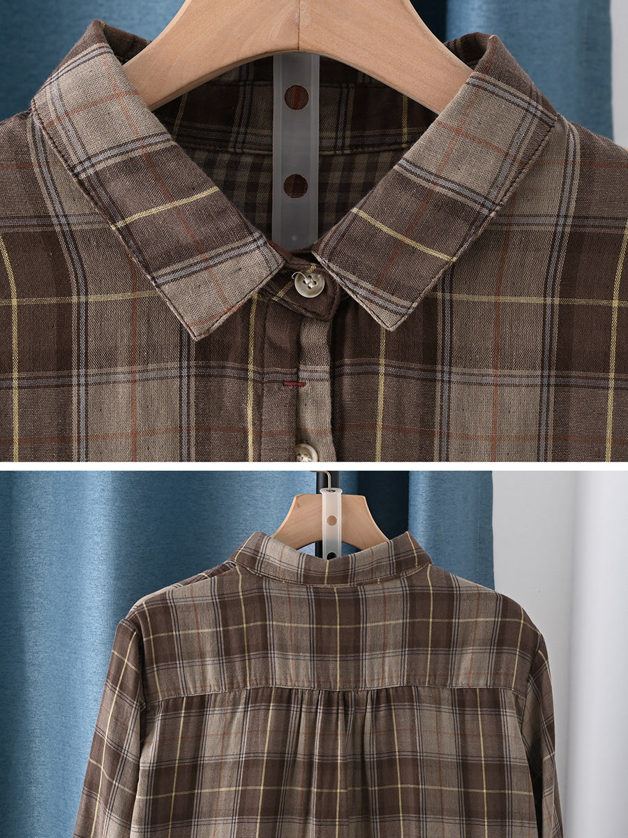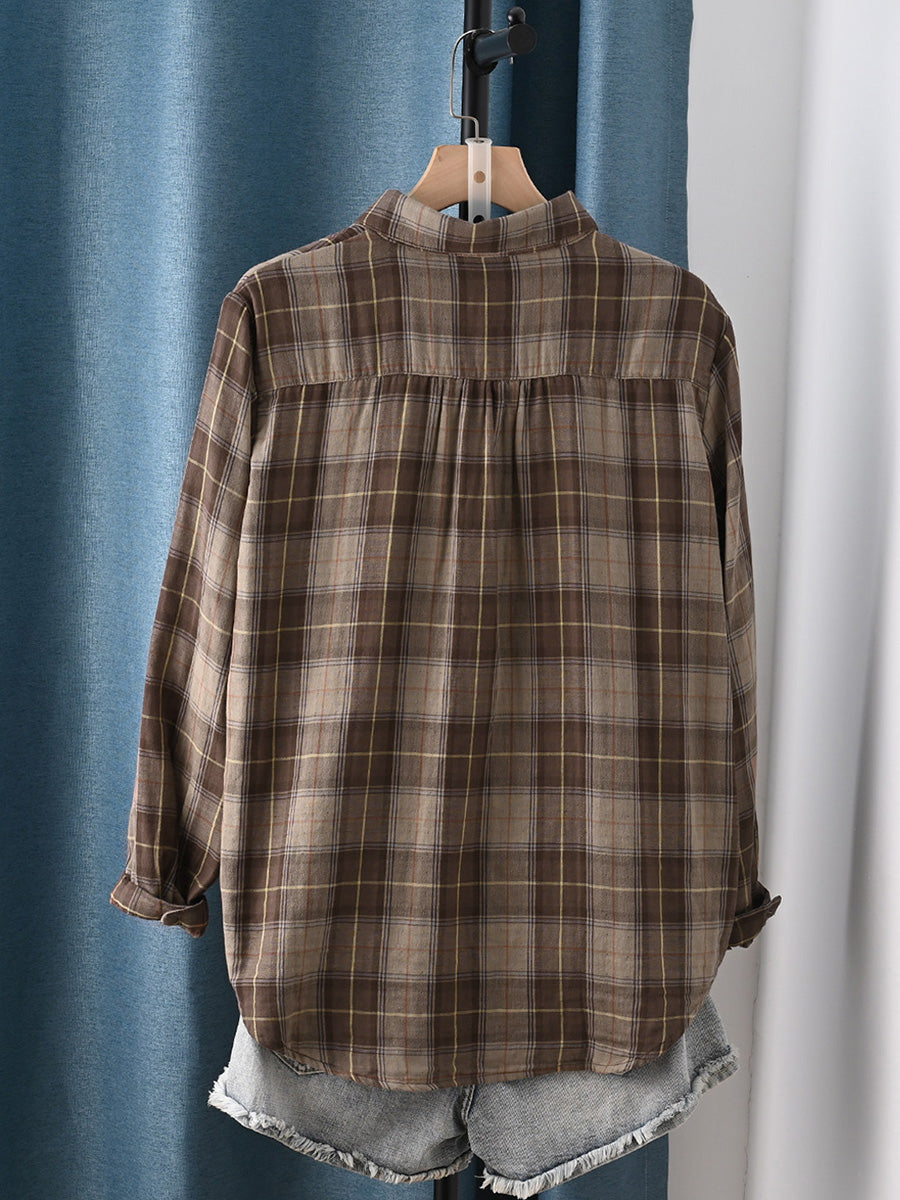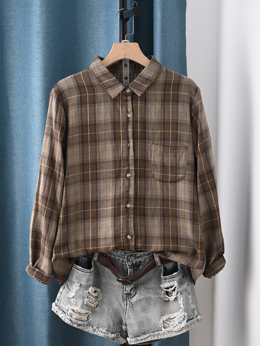Women Artsy Spring Plaid 100%Cotton Shirt