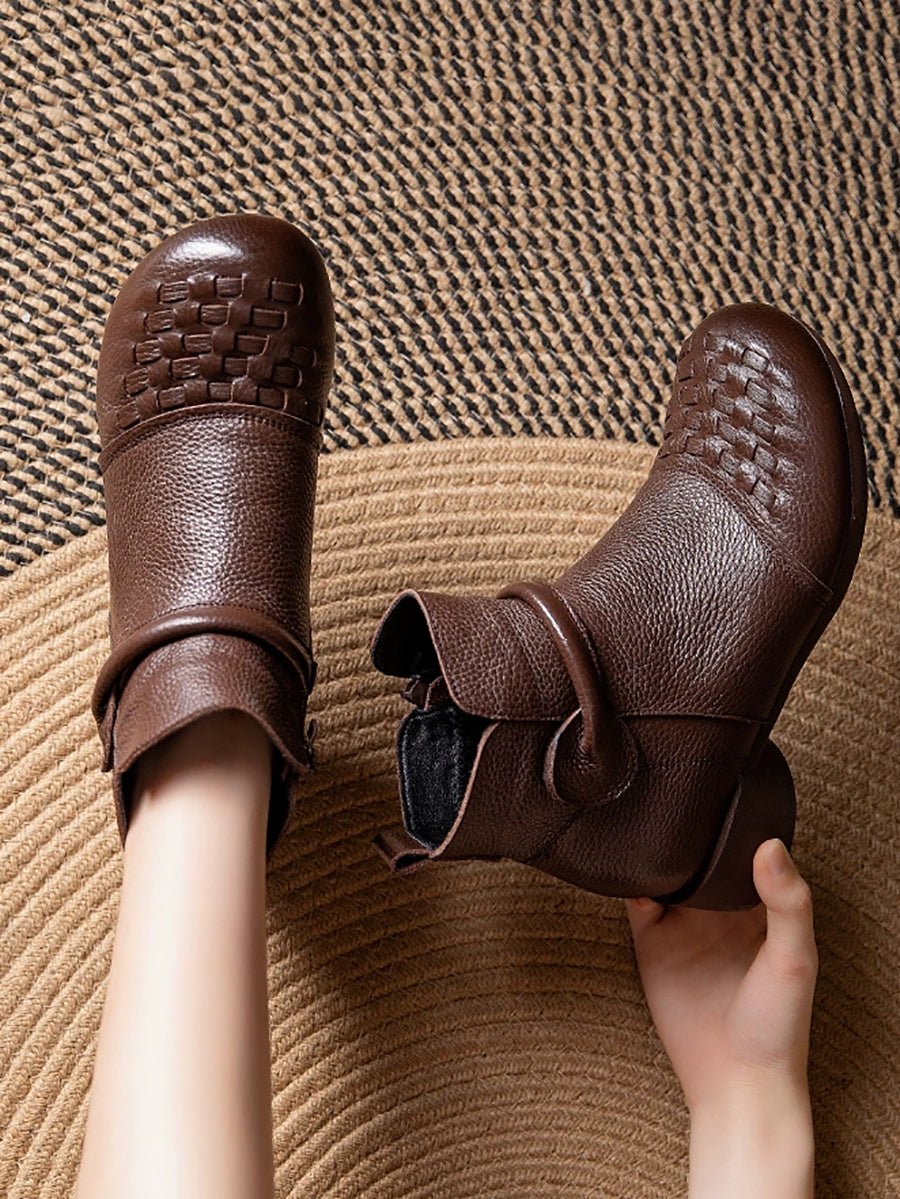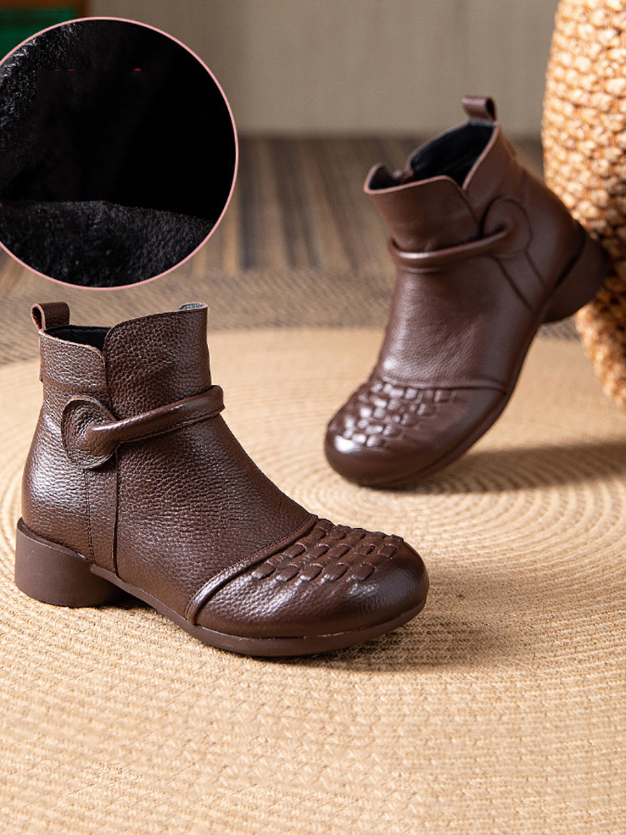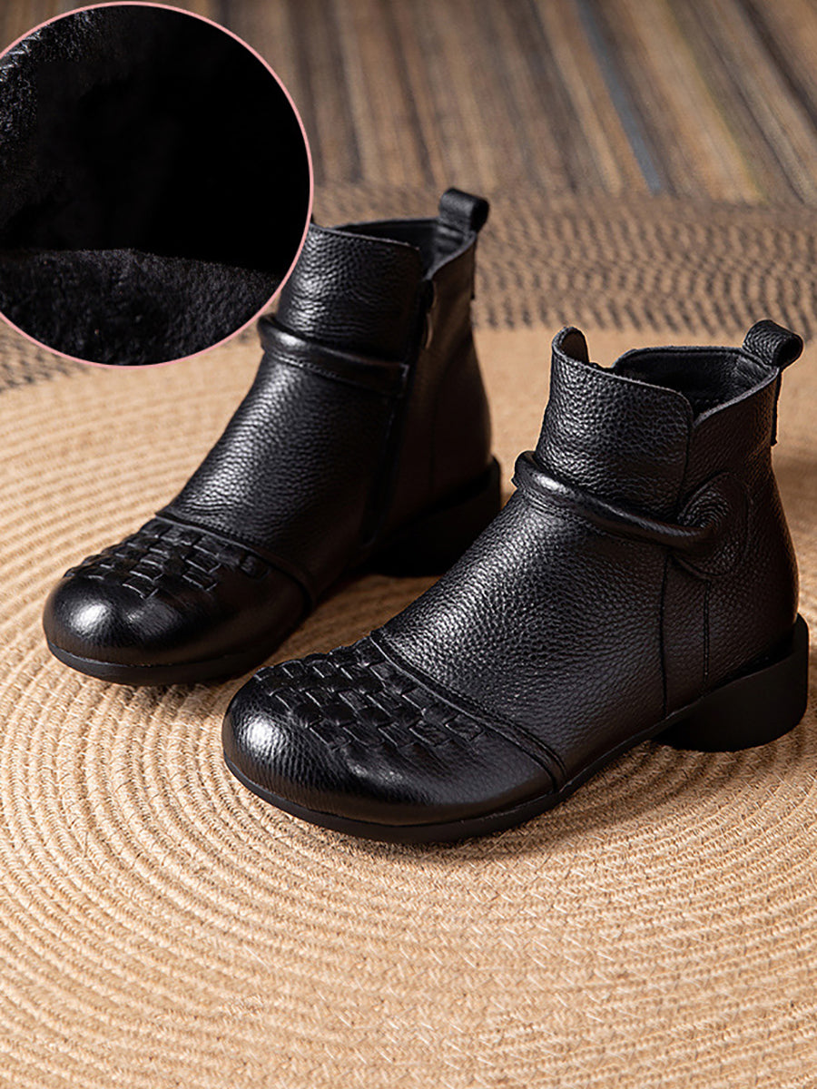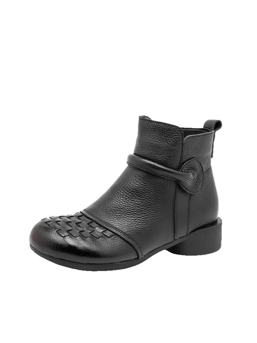 Women Winter Genuine Leather Fleece-lined Low Heel Boots