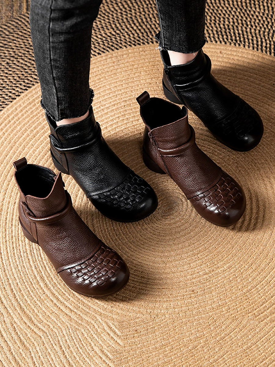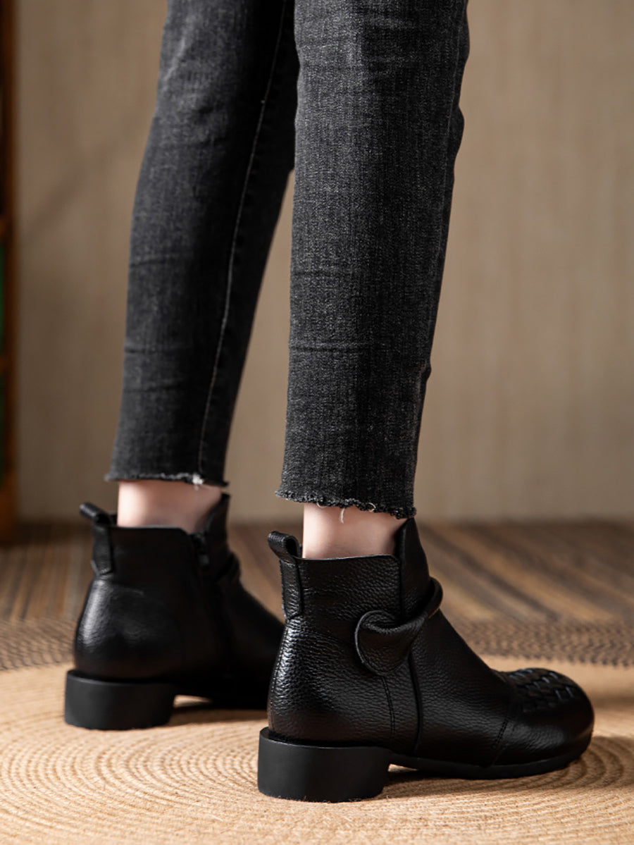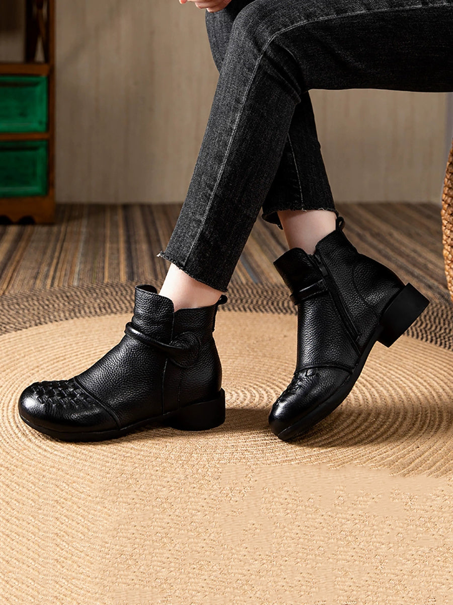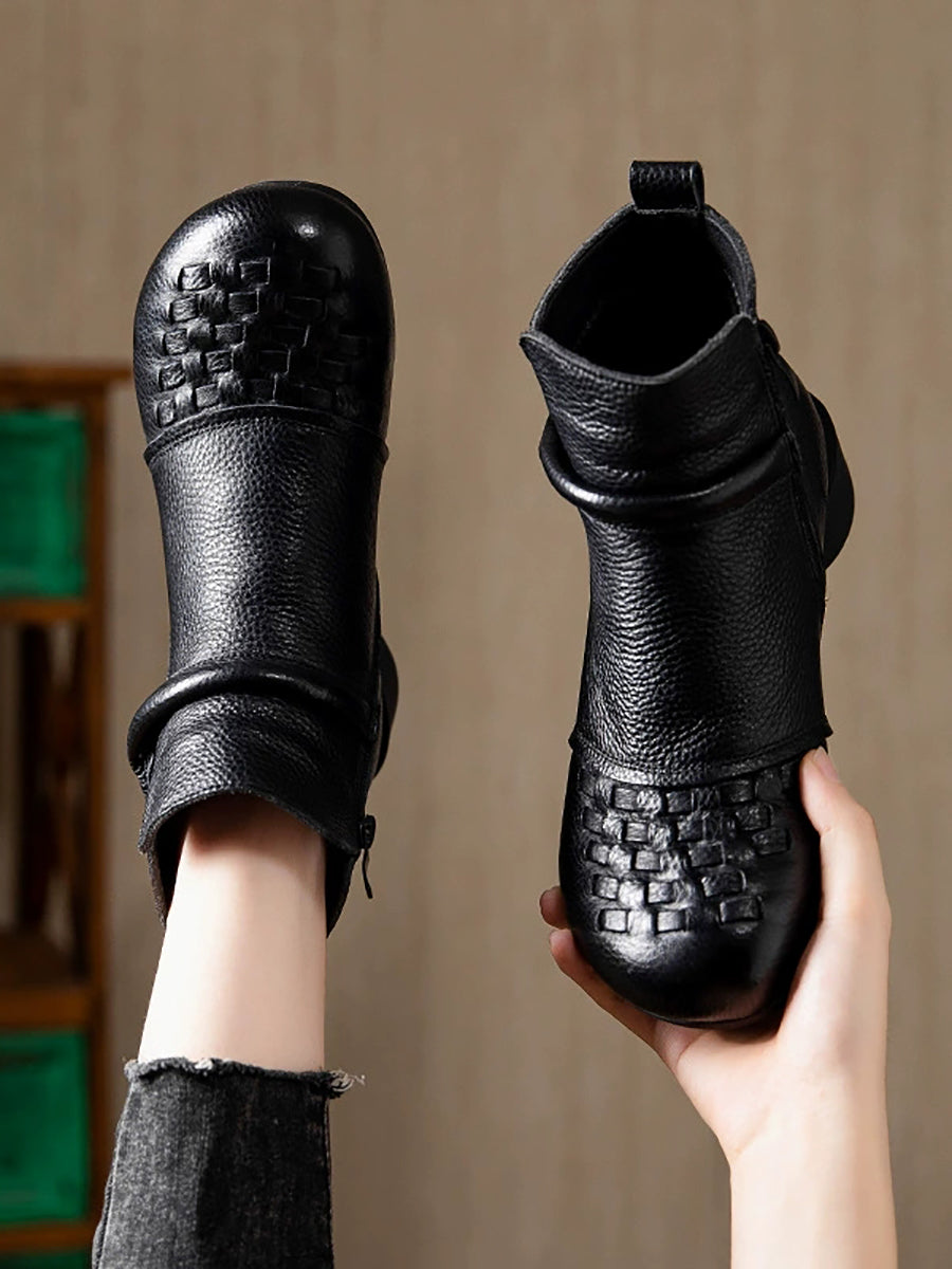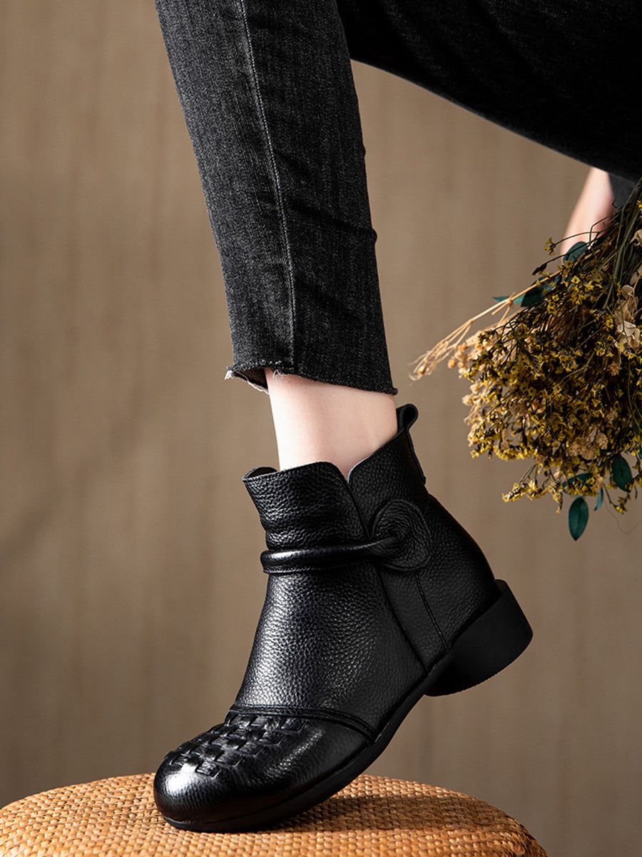 Women Winter Genuine Leather Fleece-lined Low Heel Boots
