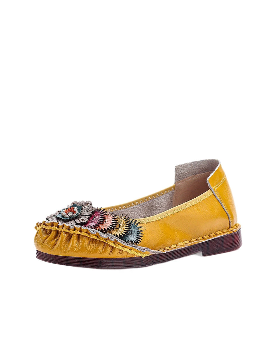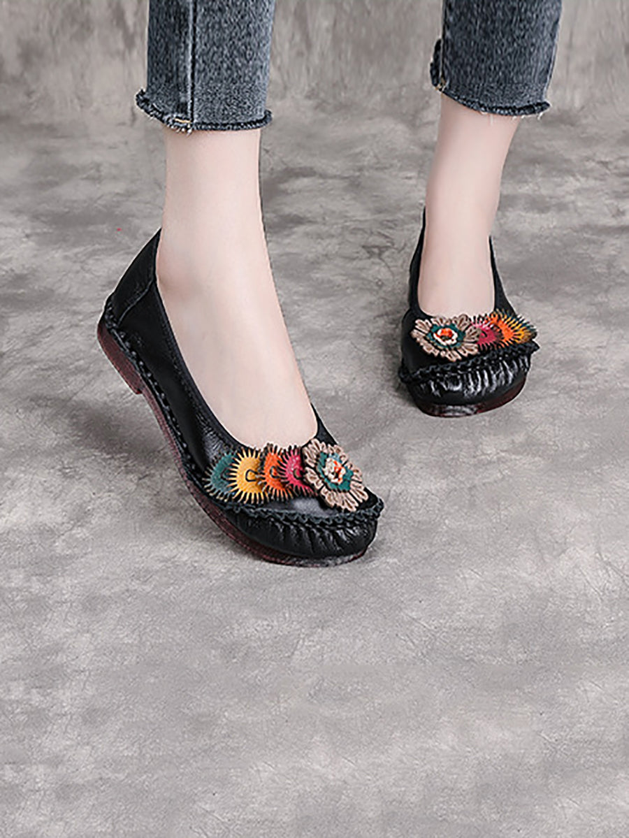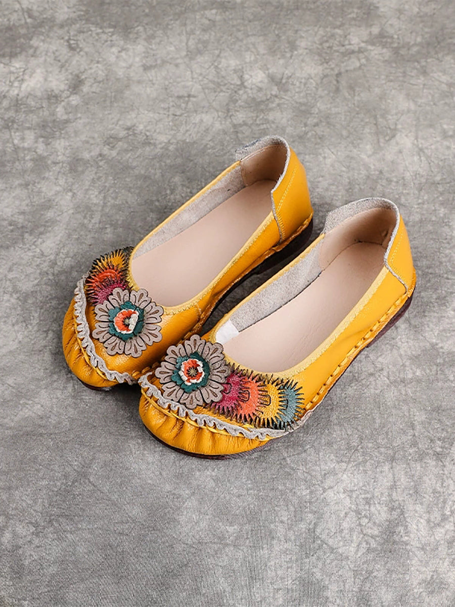 Women Ethnic Genuine Leather Flower Low Heel Shoes