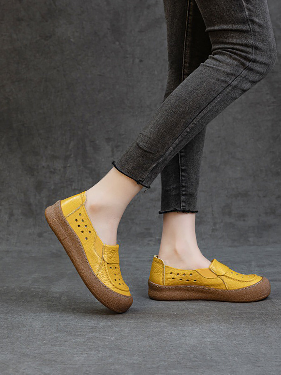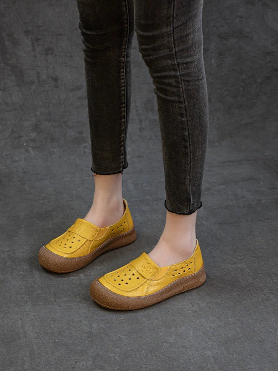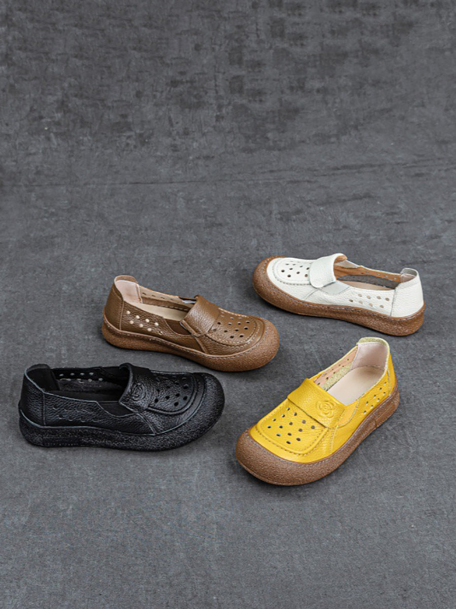 Women Summer Genuine Leather Hollow Out Flat Shoes