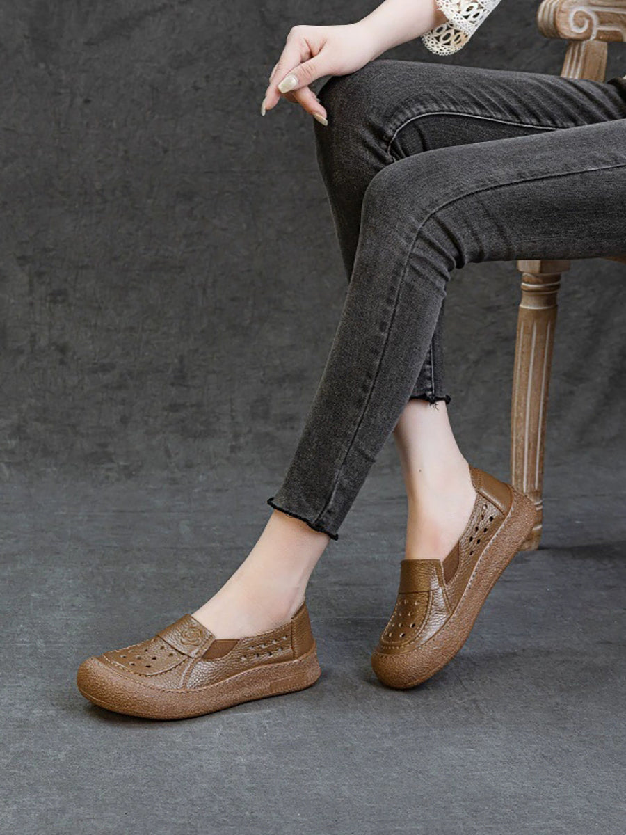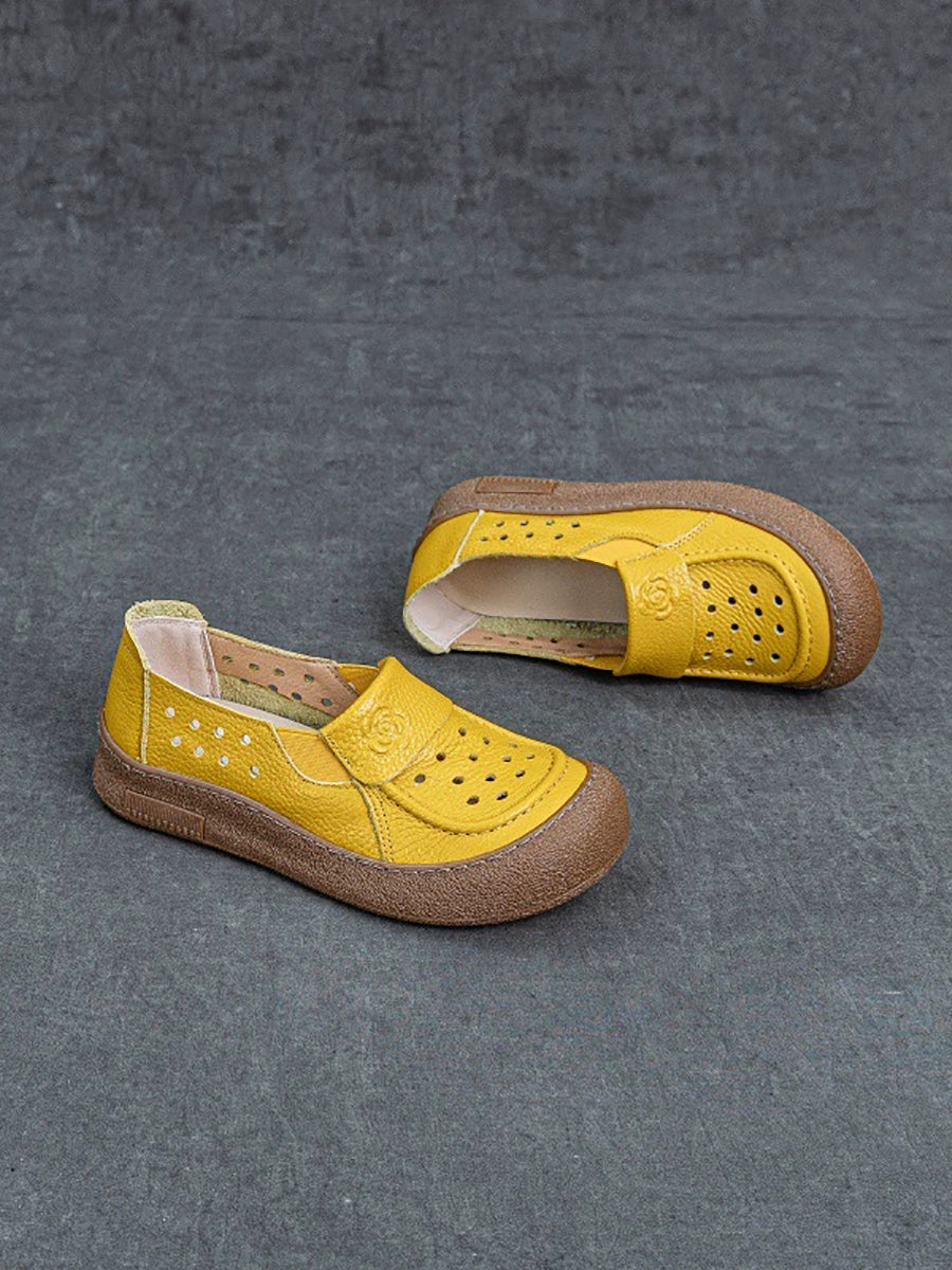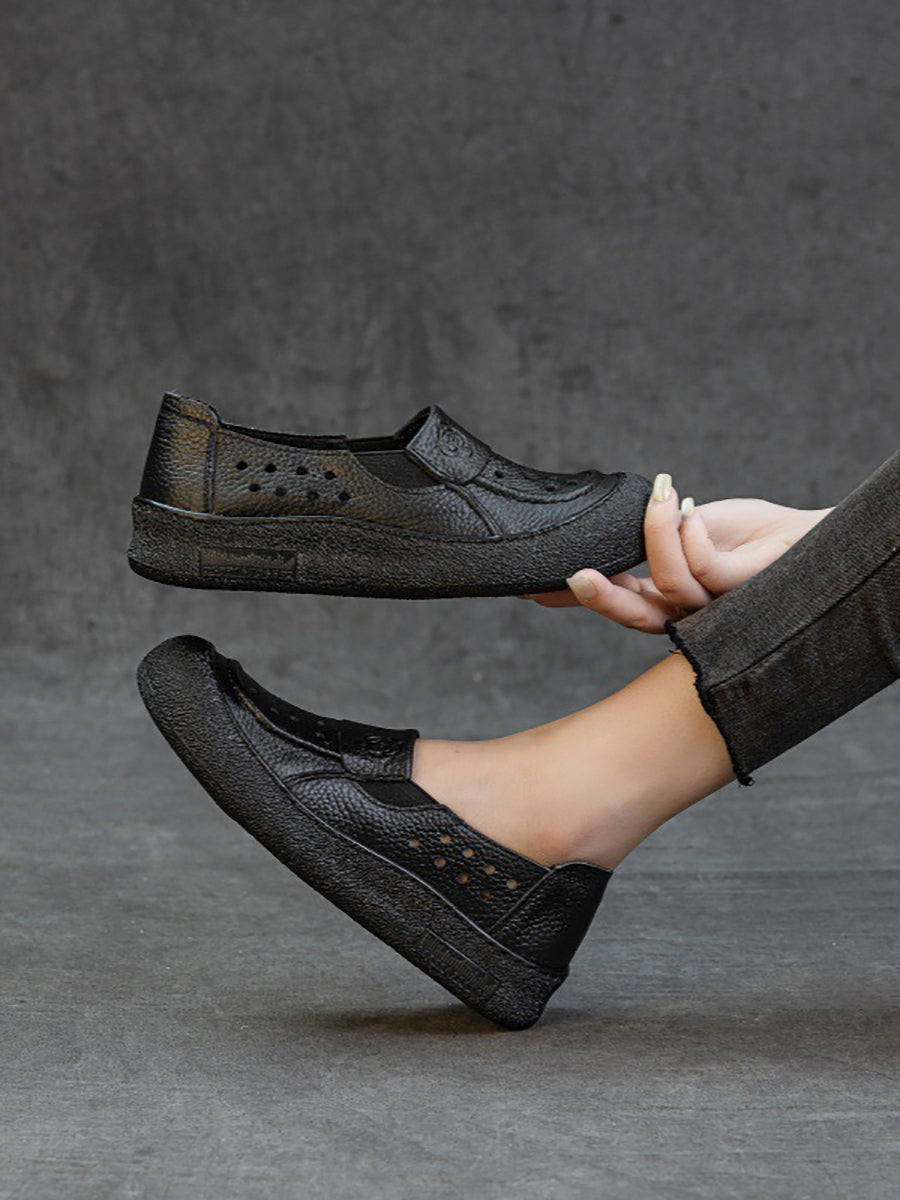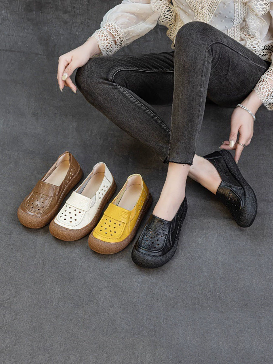 Women Summer Genuine Leather Hollow Out Flat Shoes
