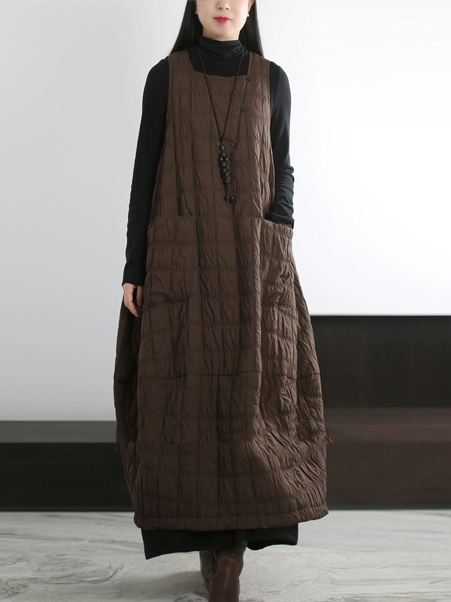 Plus Size Women Autumn Casual Pure Color Padded Vest Dress