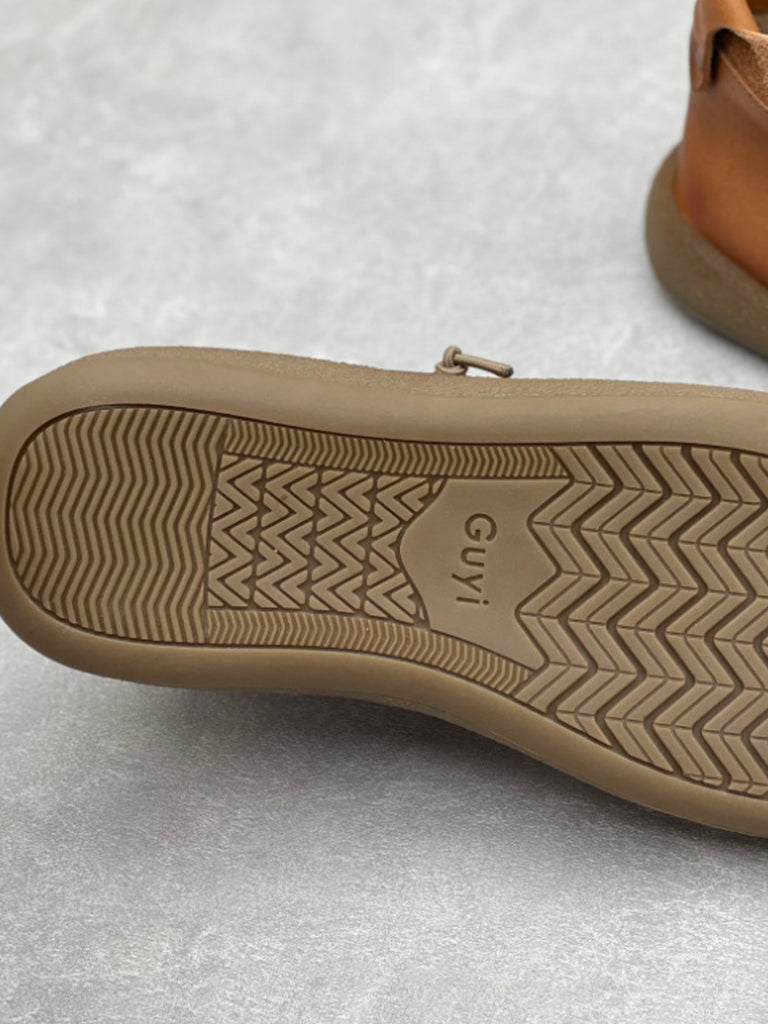 Women Vintage Genuine Leather Spliced Flat Ankle Boots