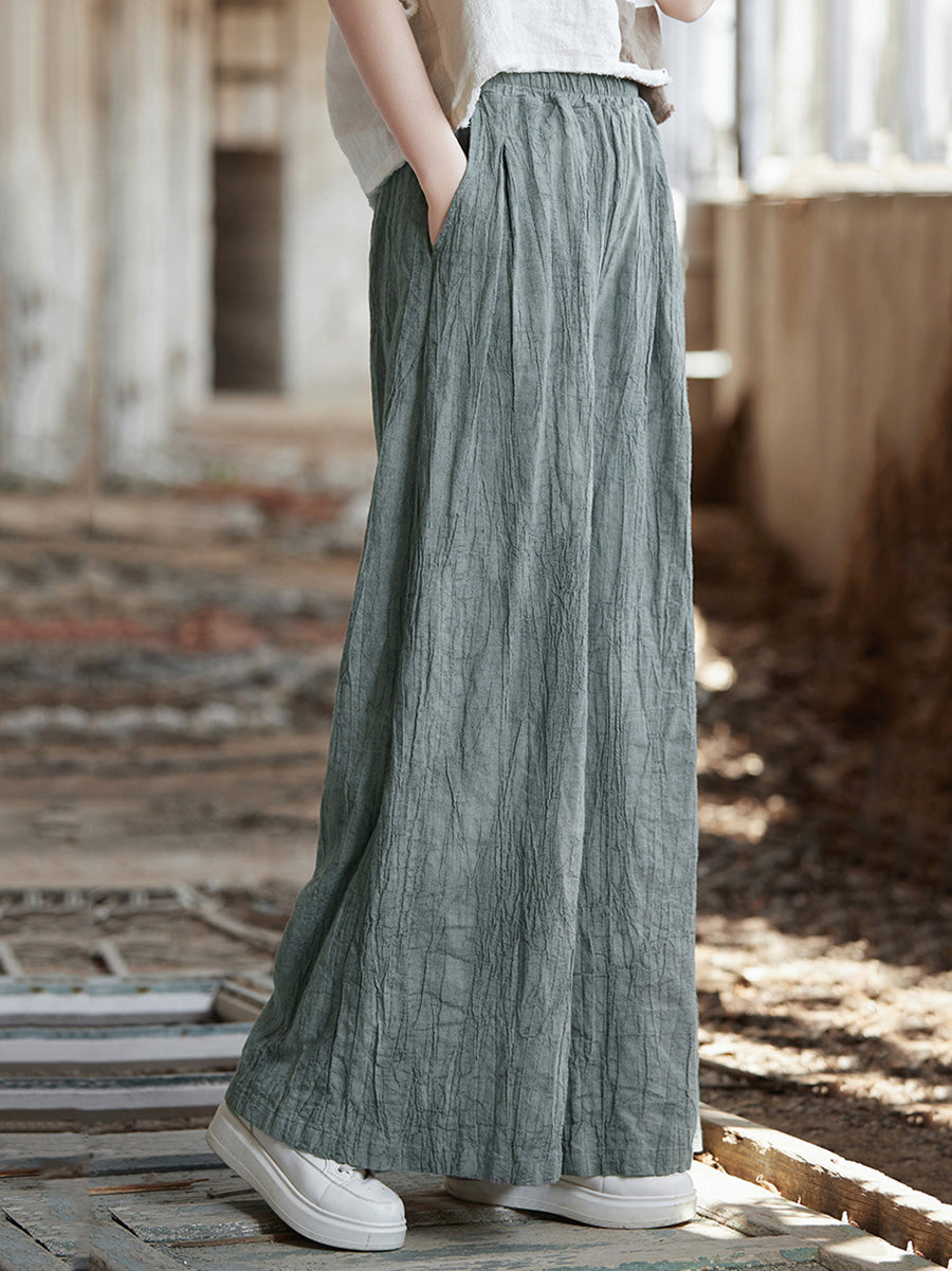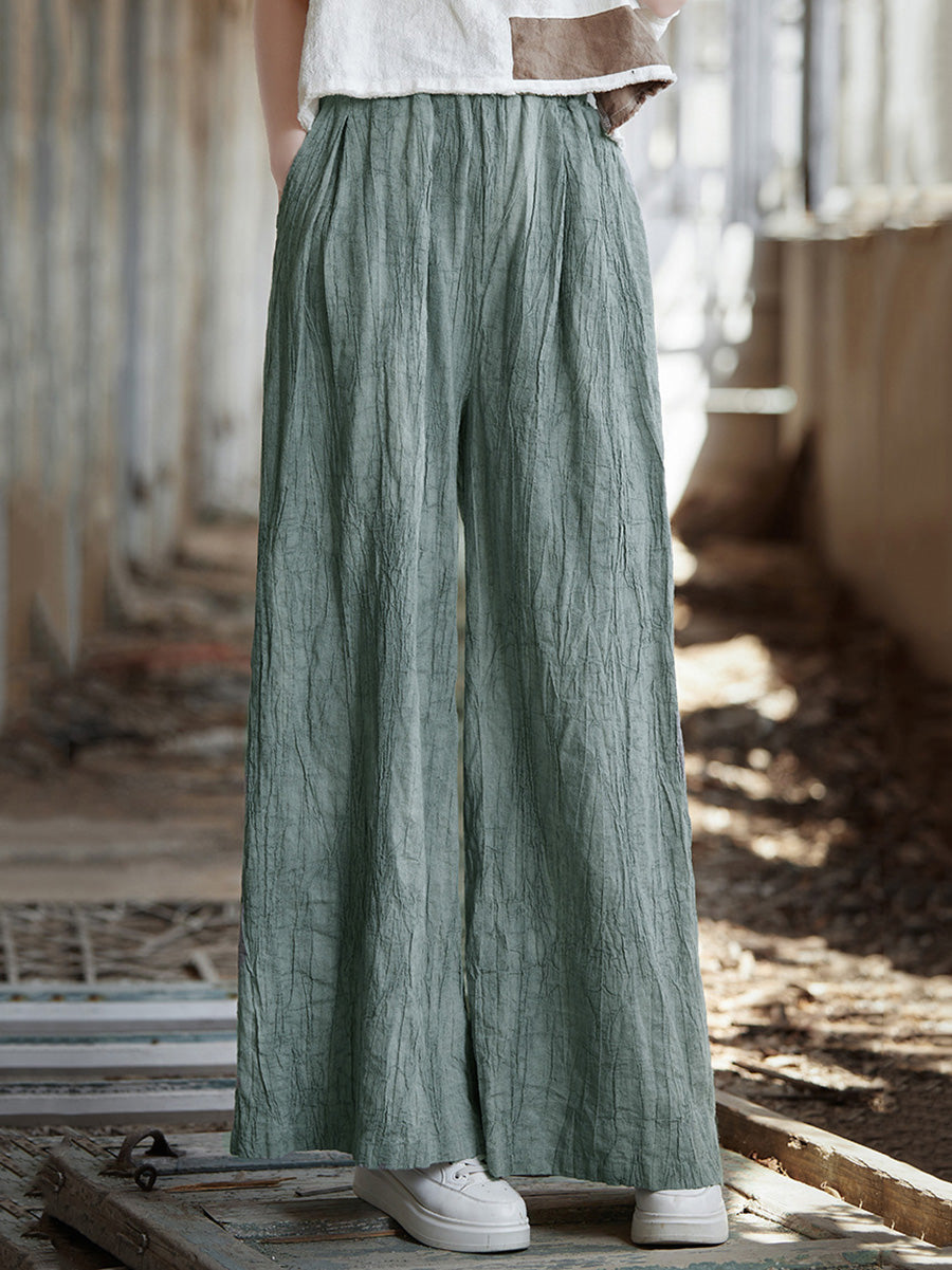 Women Spring Vintage Tie-dye Ramie Wide-leg Pants