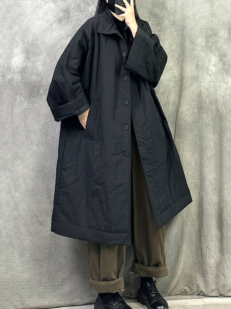 Women Winter Pure Color Turn-down Collar Long Padded Coat