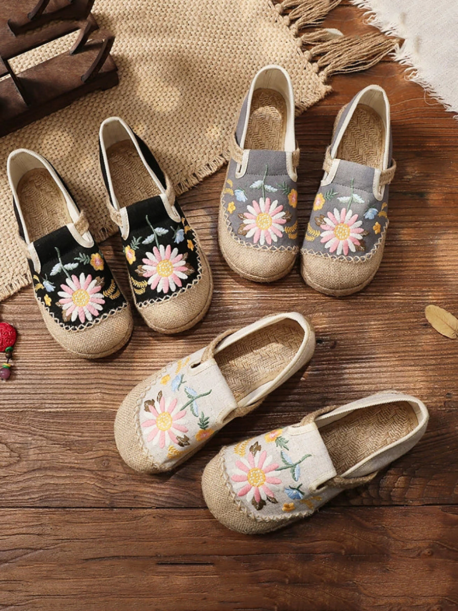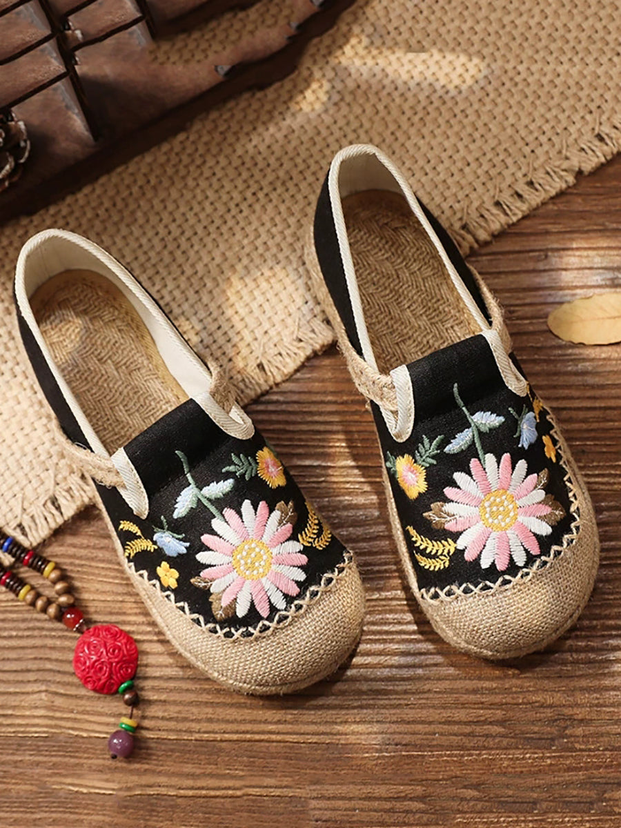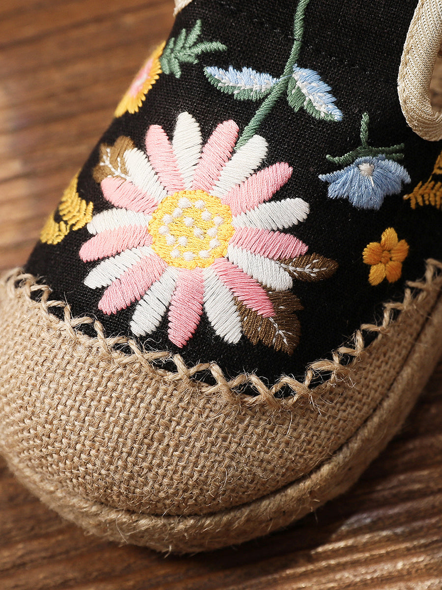 Women Summer Flower Embroidery Flat Canvas Shoes
