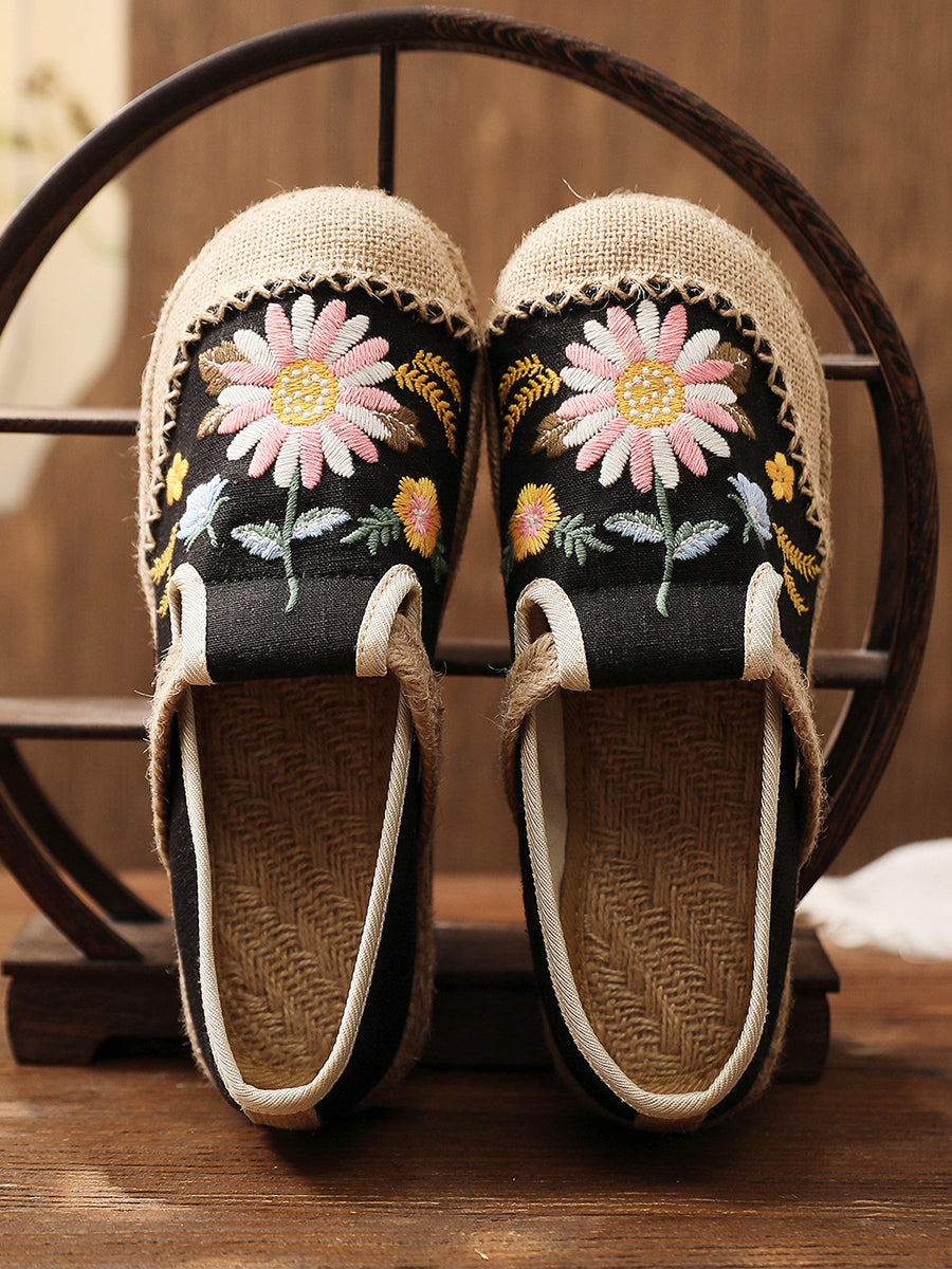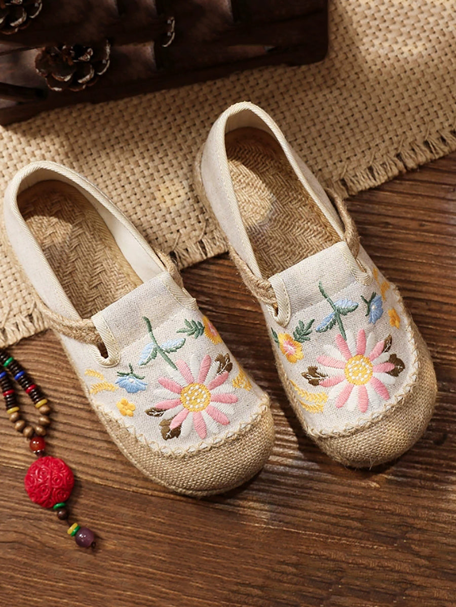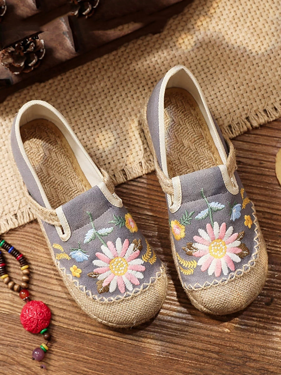 Women Summer Flower Embroidery Flat Canvas Shoes