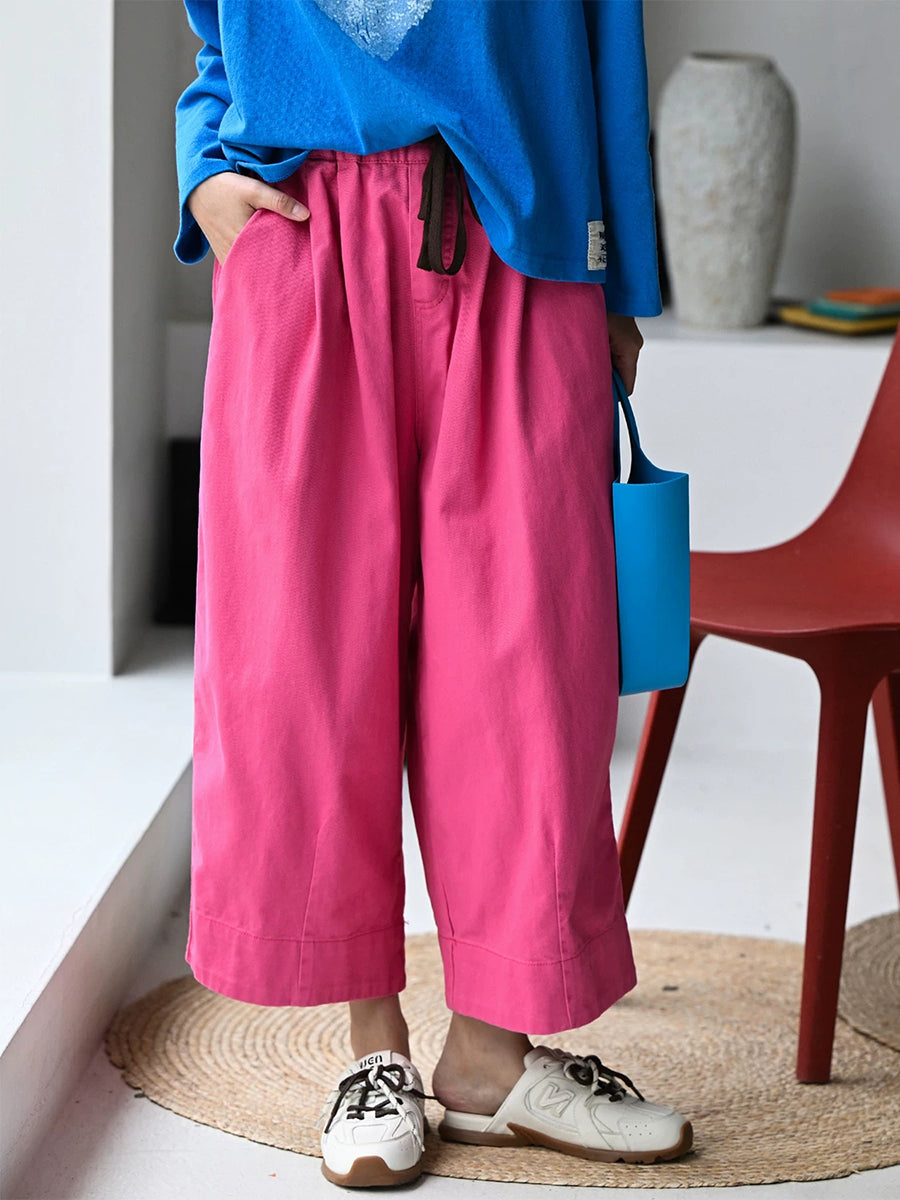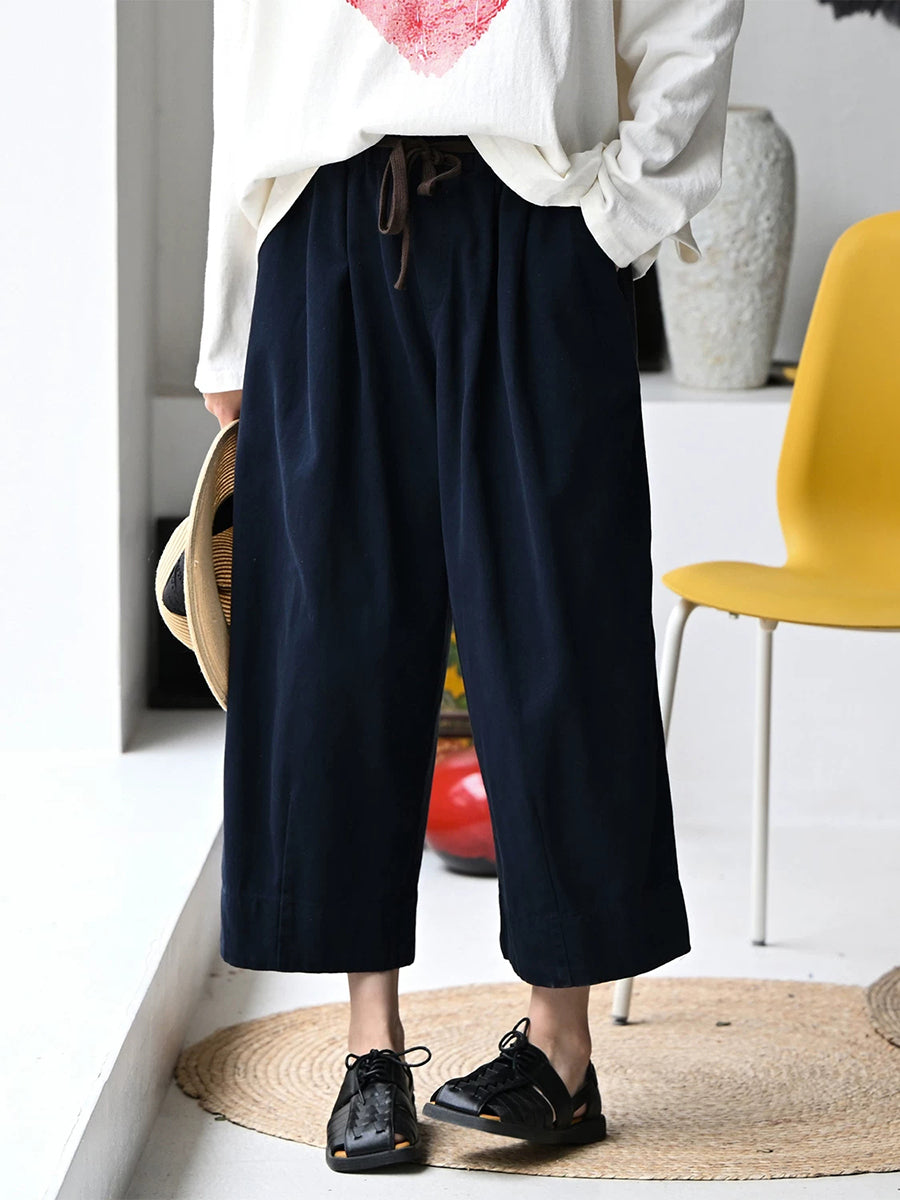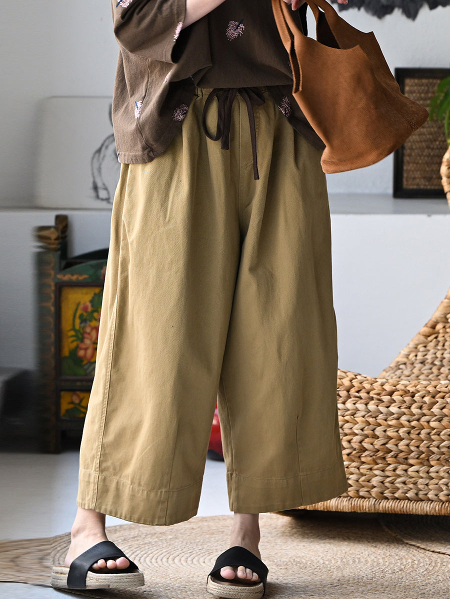 Women Summer Casual Pure Color 100%Cotton Wide-leg Pants