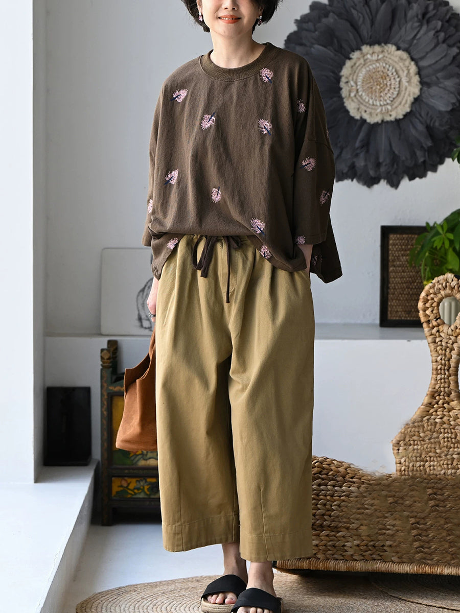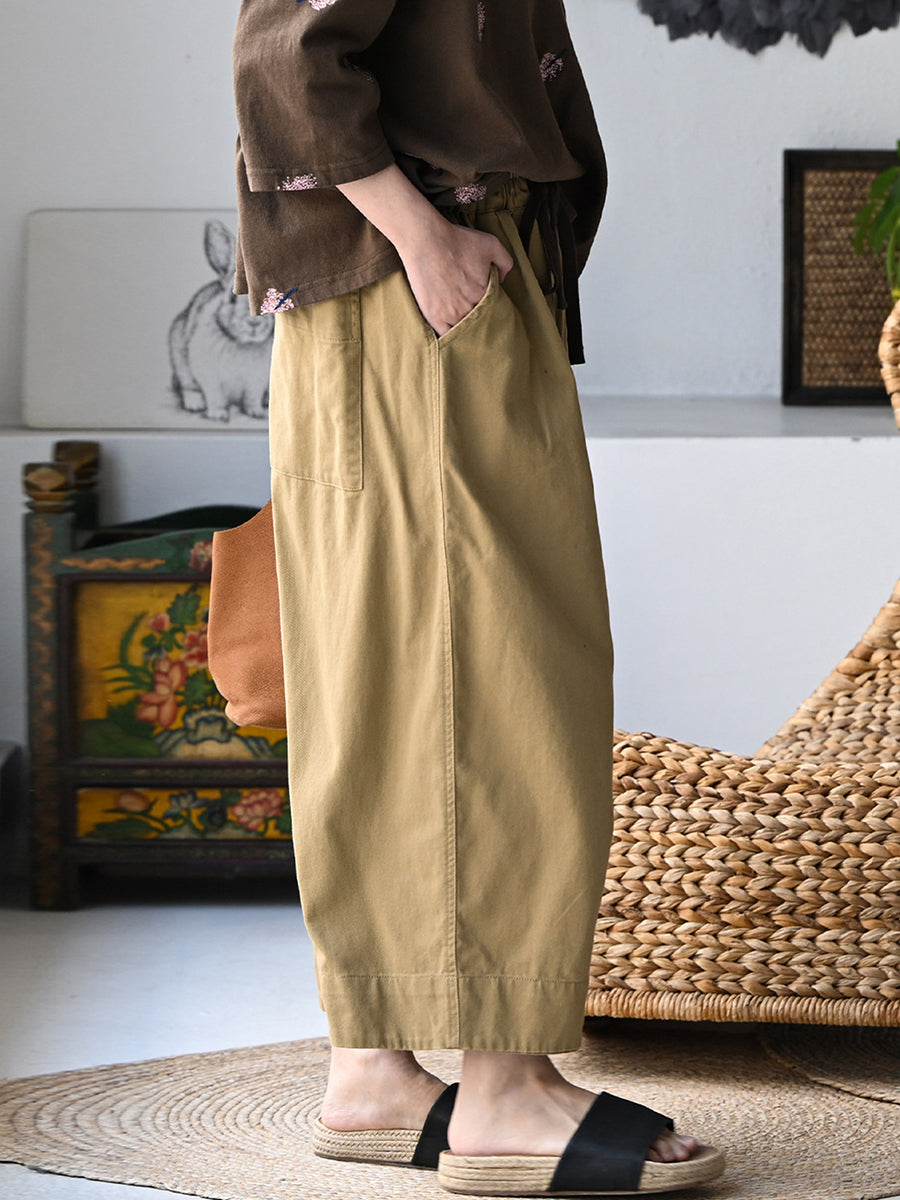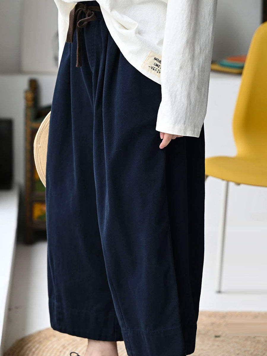 Women Summer Casual Pure Color 100%Cotton Wide-leg Pants