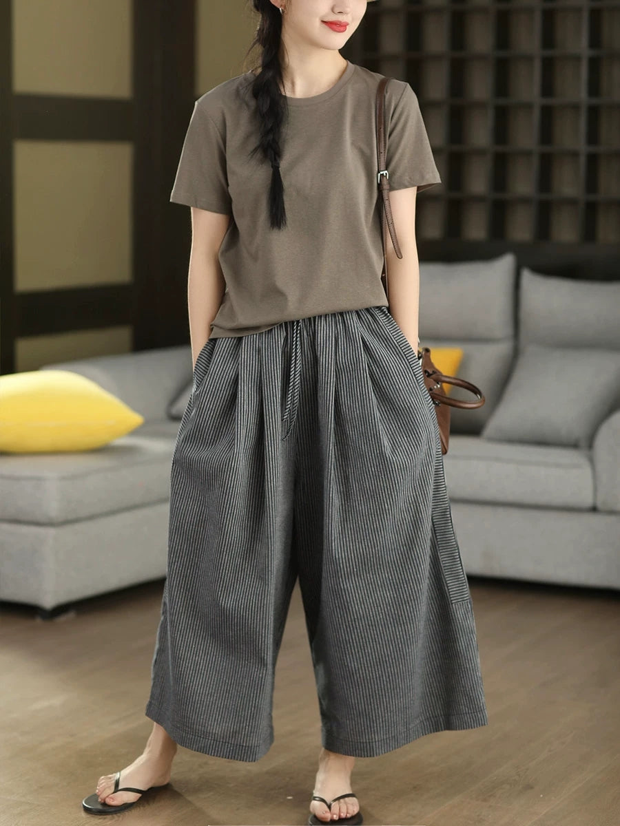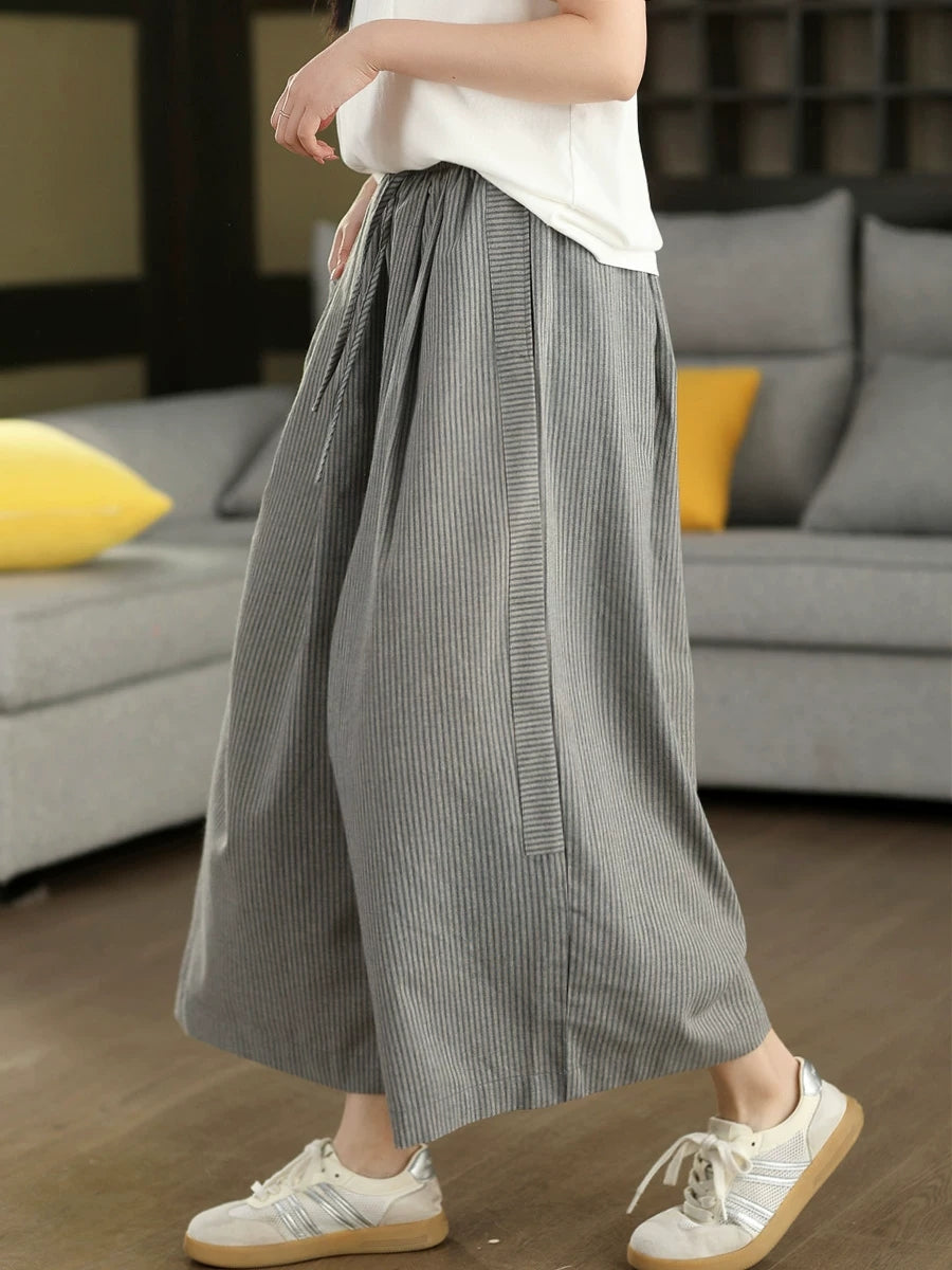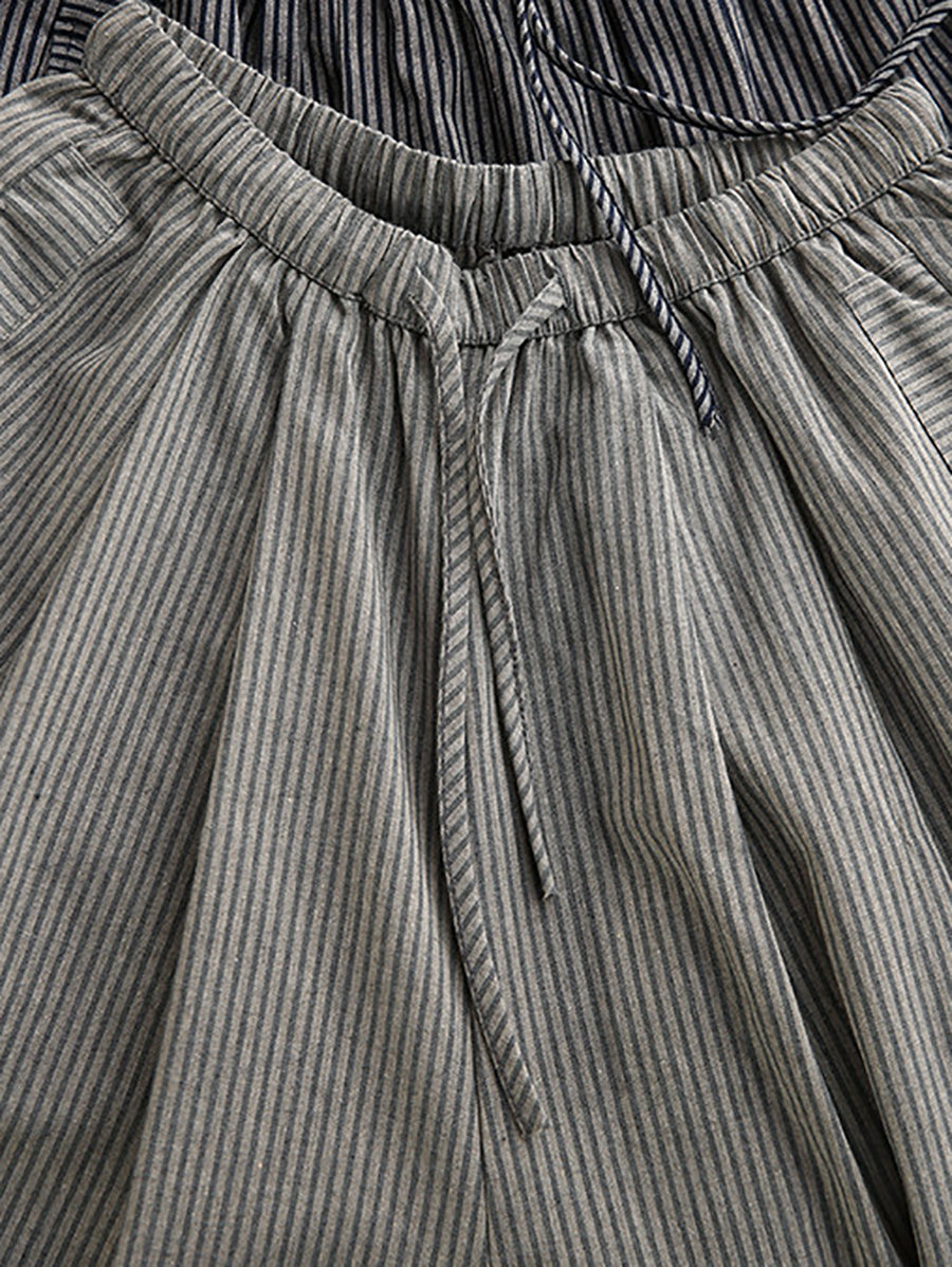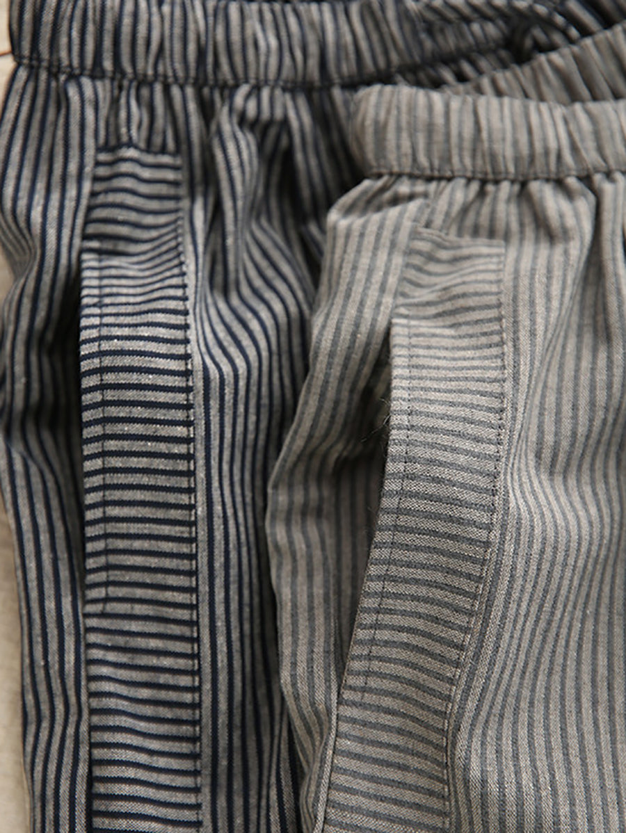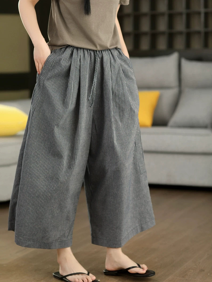 Women Summer Vintage Stripe Linen Wide-leg Pants