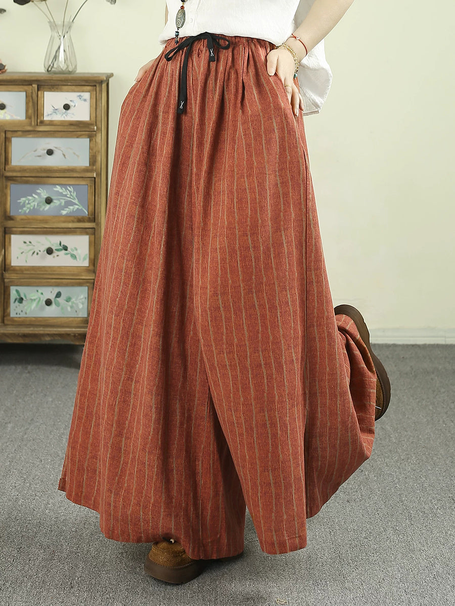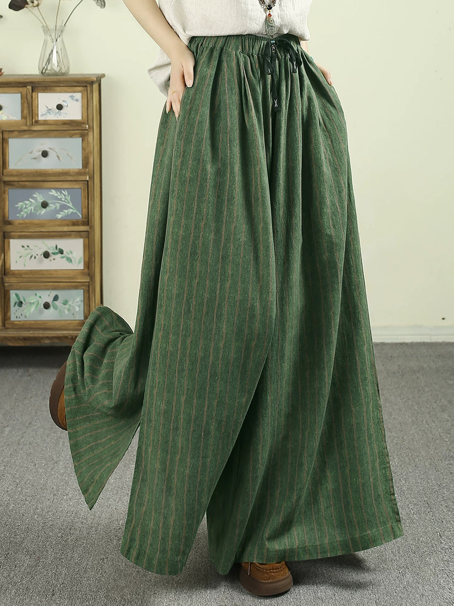 Women Summer Vintage Stripe Wide-leg Pants