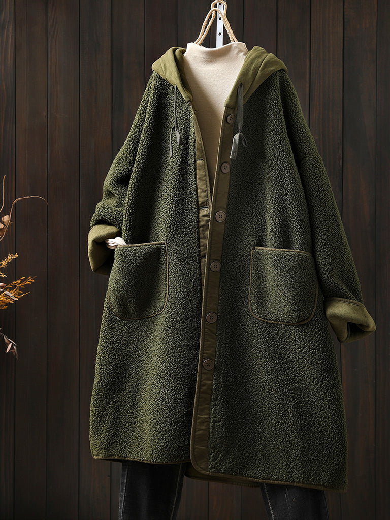 Plus Size Women Winter Warm Fleece Hooded Coat