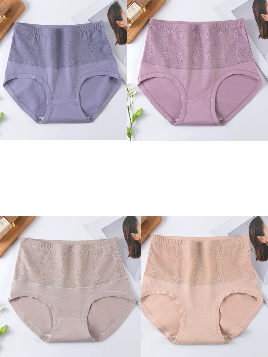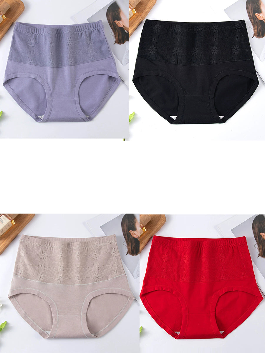 4 Pieces Women Artsy Jacquard High Waist Underwear