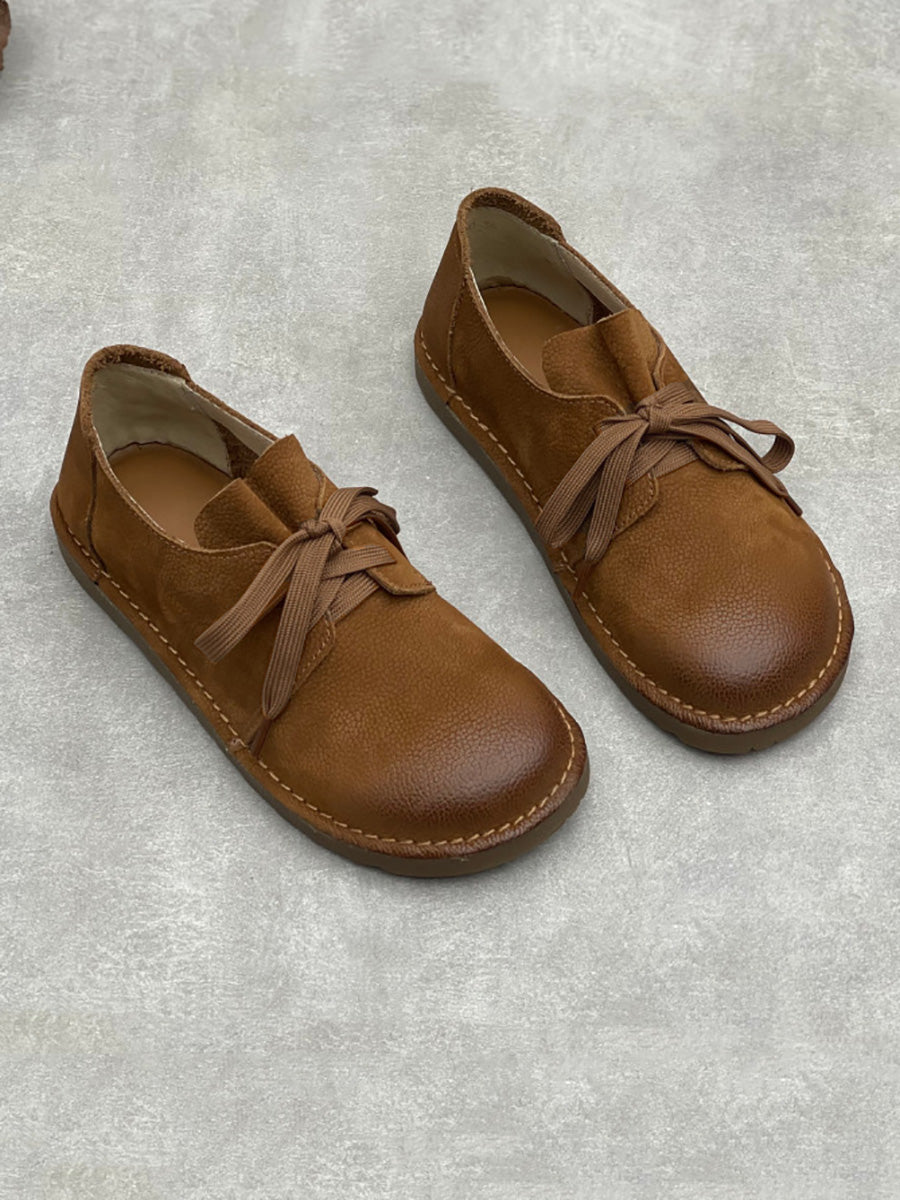 Women Vintage Summer Genuine Leather Flat Shoes