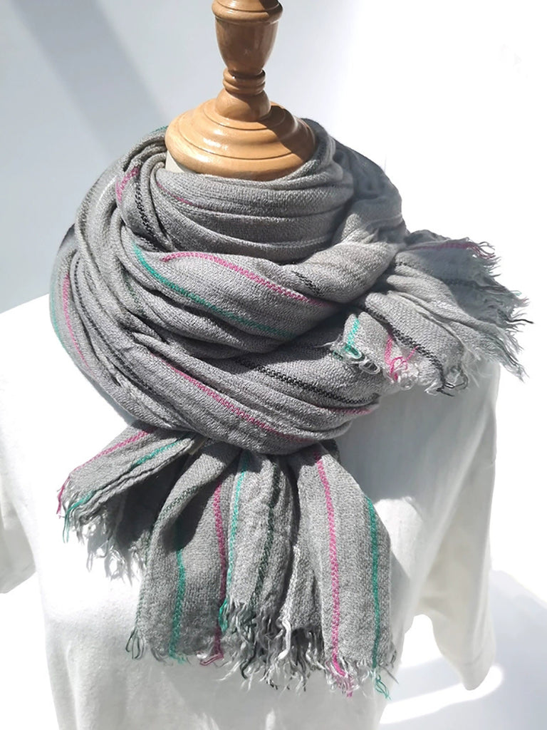 Women Winter Vintage Stripe Warm Shawl Scarf