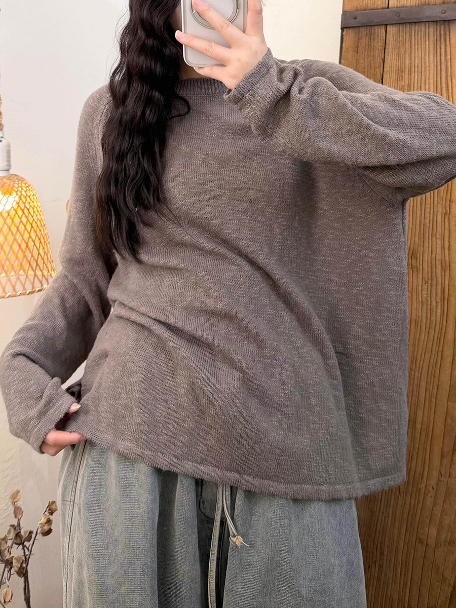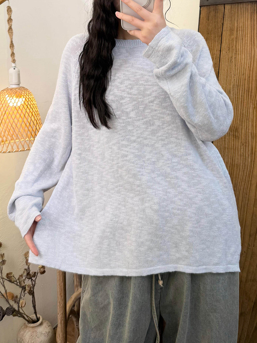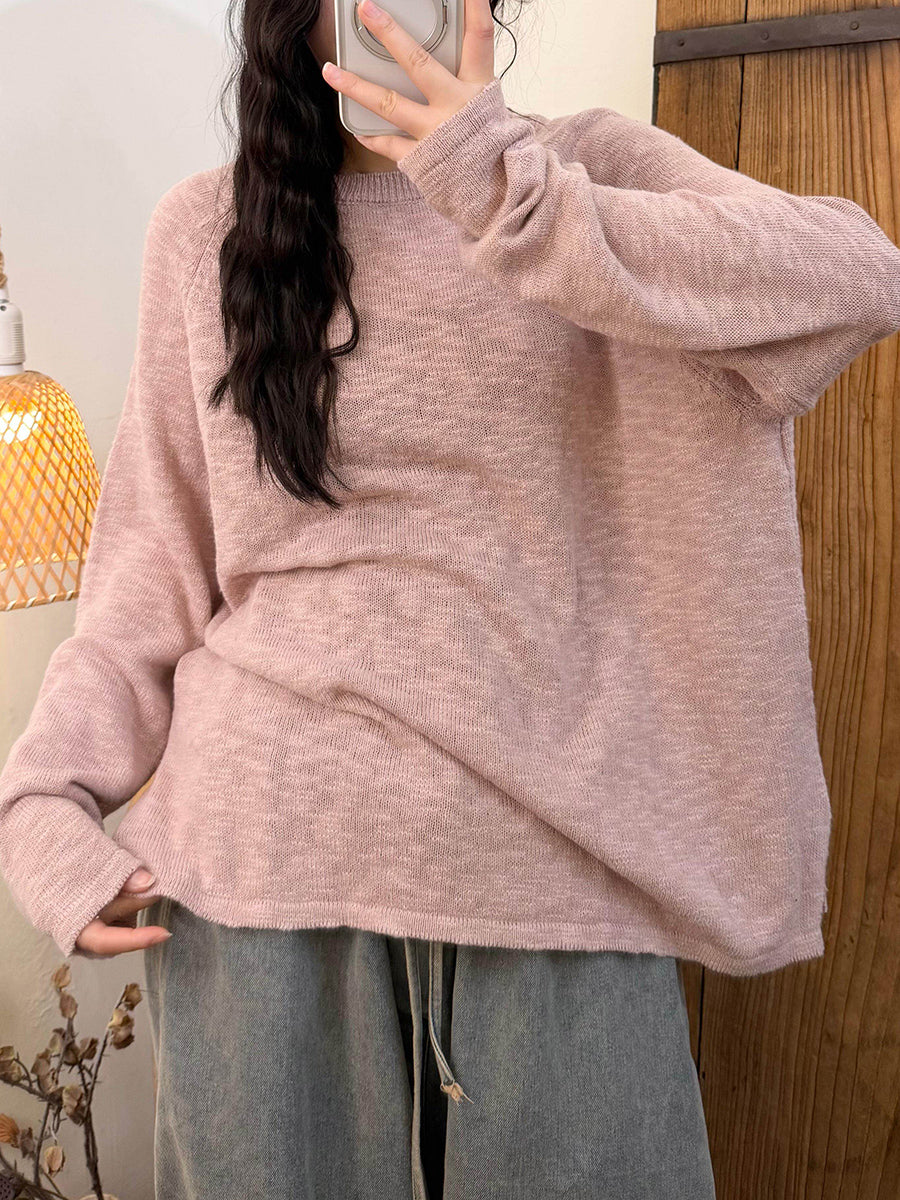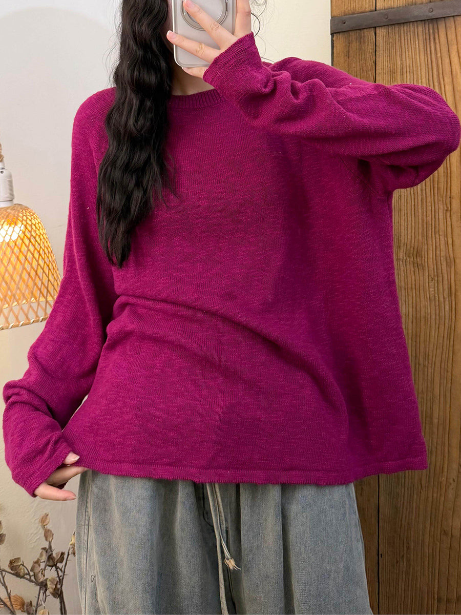 Women Spring Casual Pure Color O-Neck Knitted Shirt
