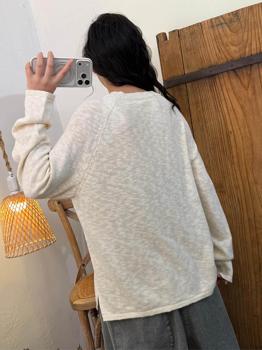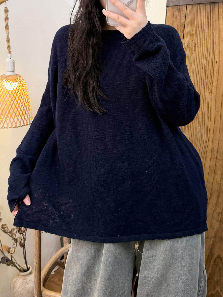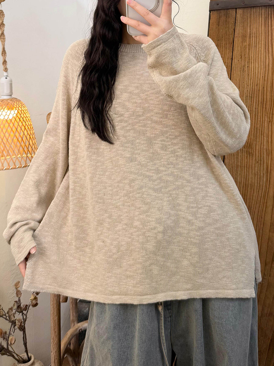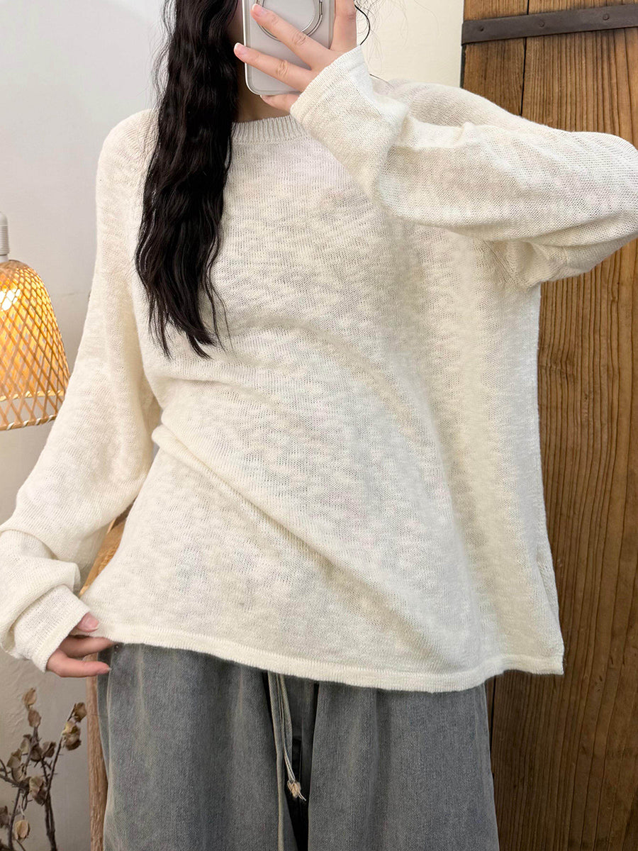 Women Spring Casual Pure Color O-Neck Knitted Shirt