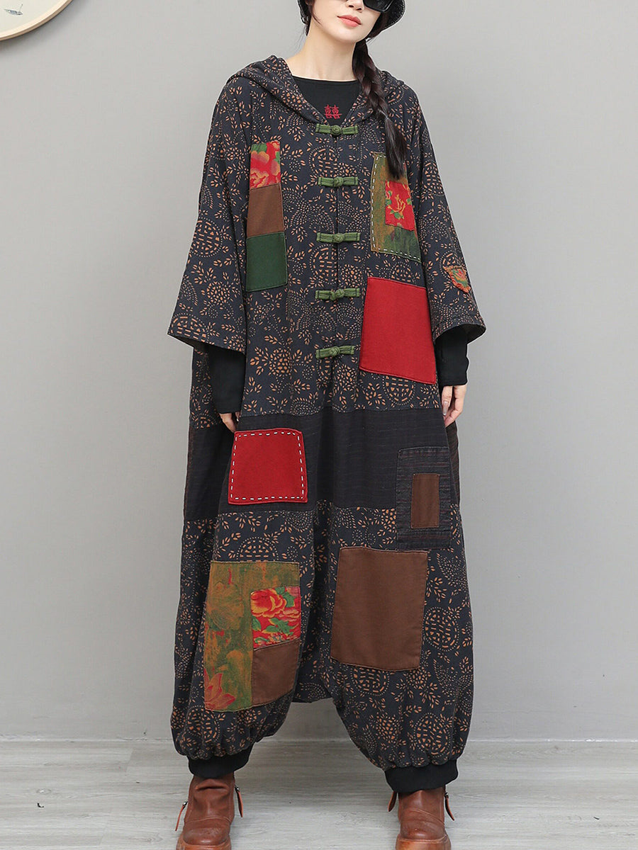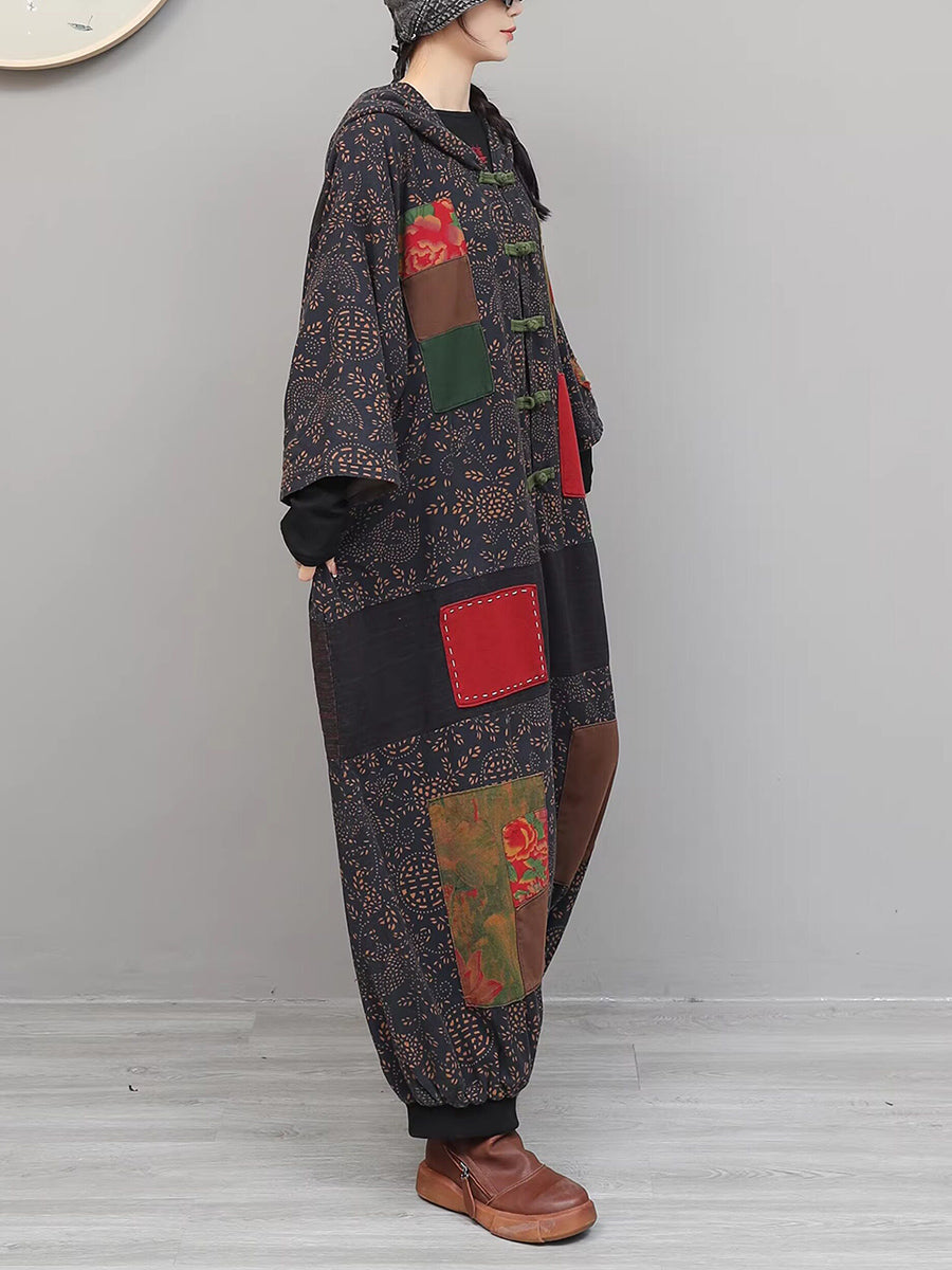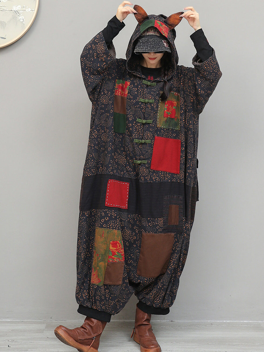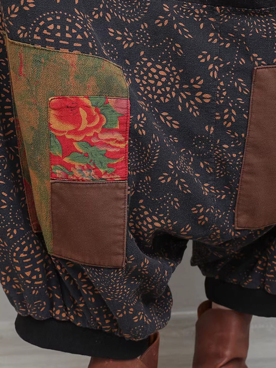 Women Spring Retro Patchwork Low Crotch Jumpsuits
