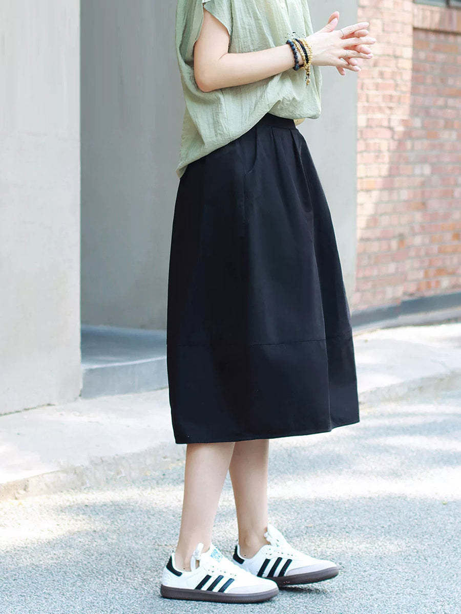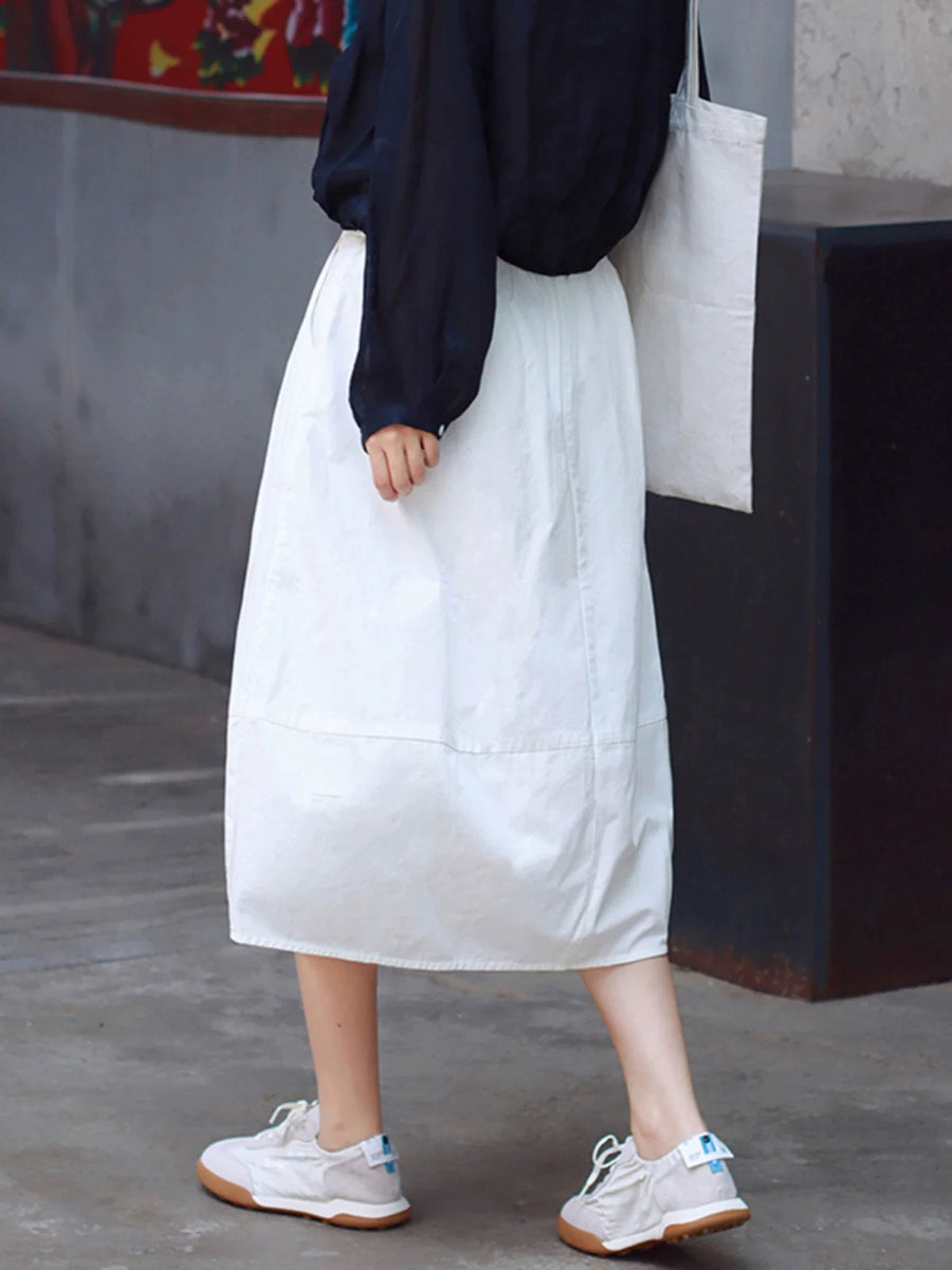 Women Summer Casual Pure Color 100%Cotton Bud Skirt