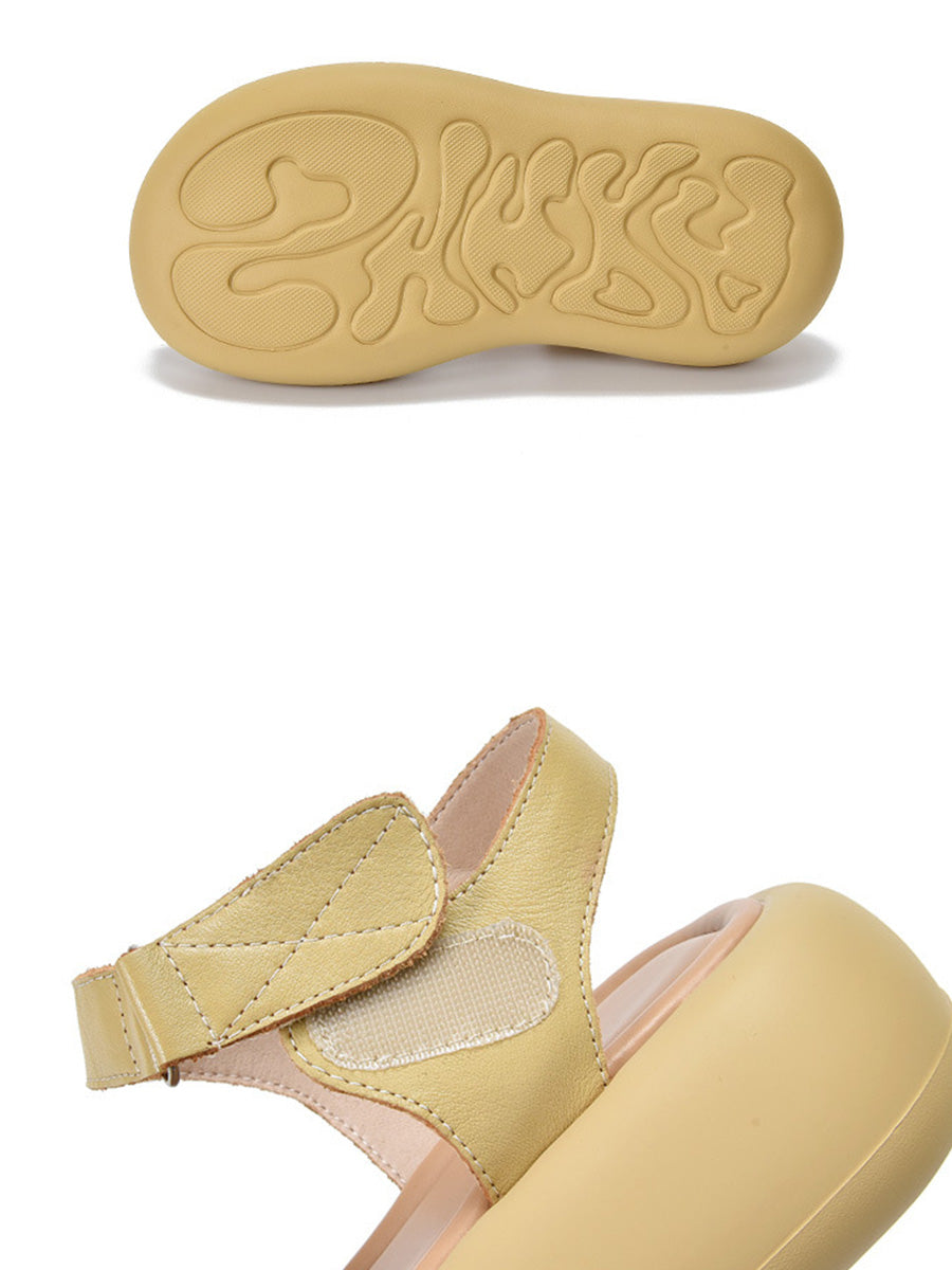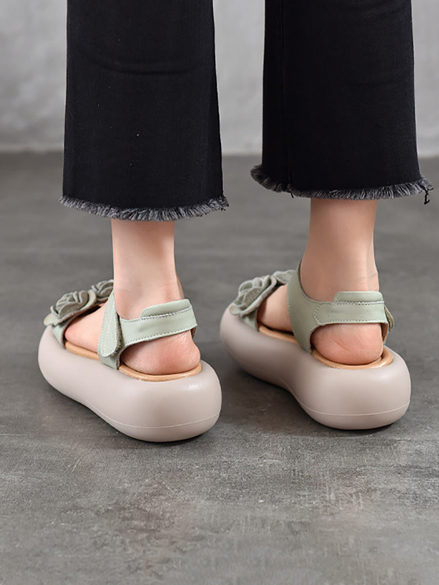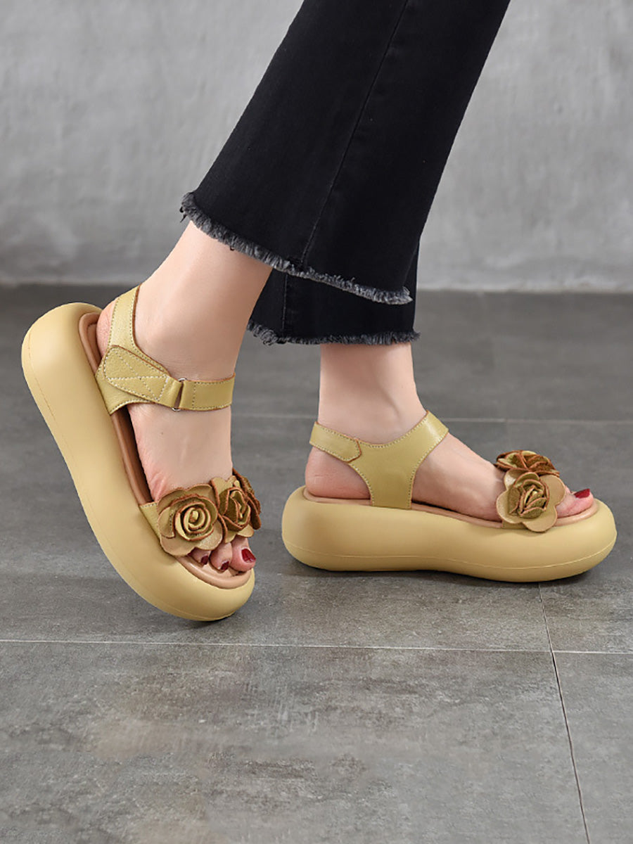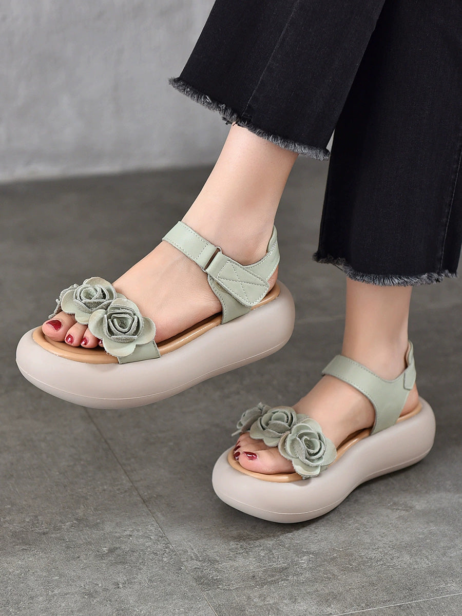 Women Summer Artsy Flower Leather Platform Sandals