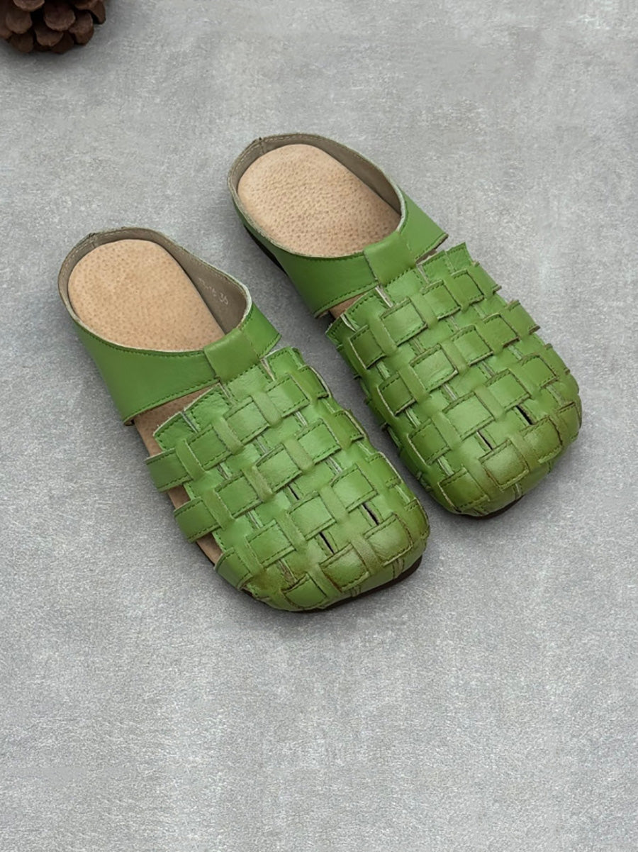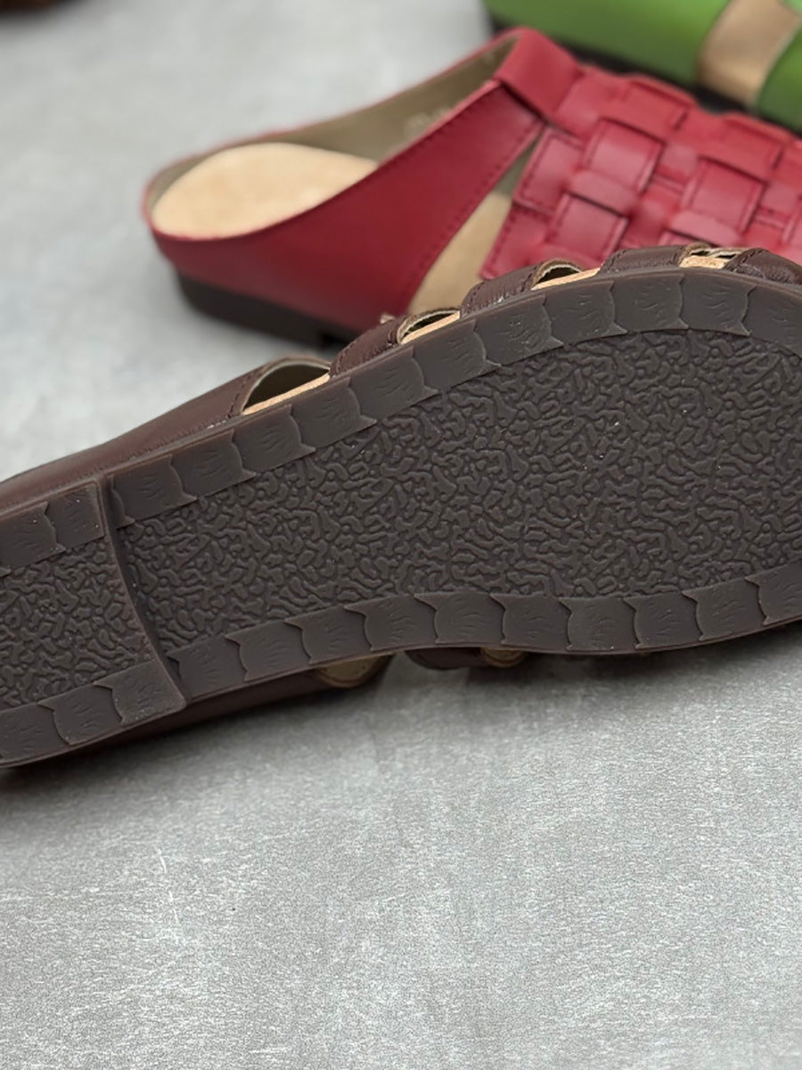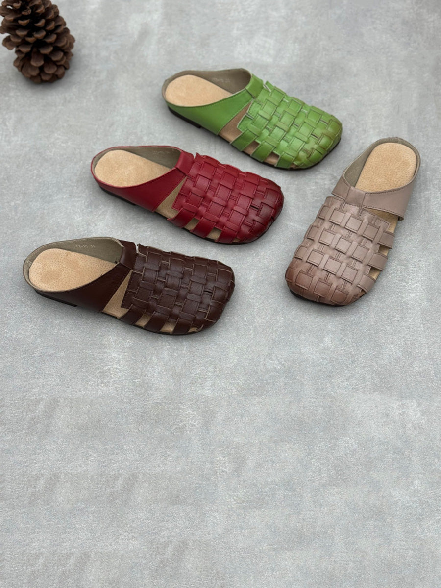 Women Summer Genuine Leather Weave Slippers