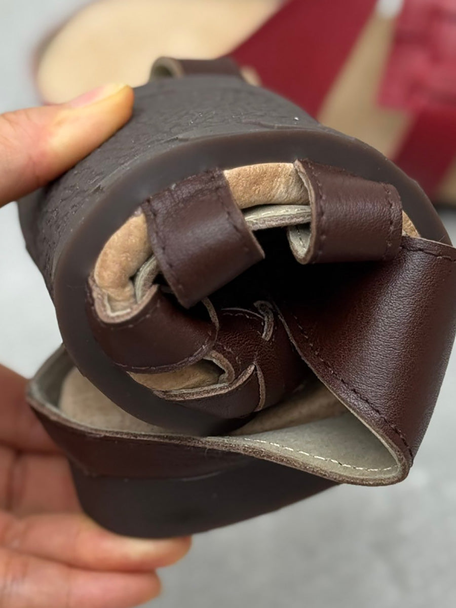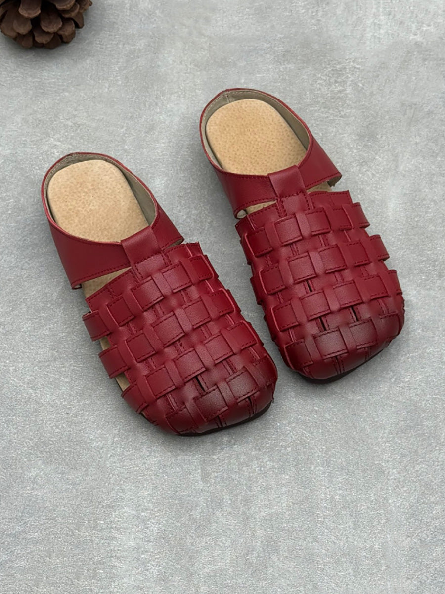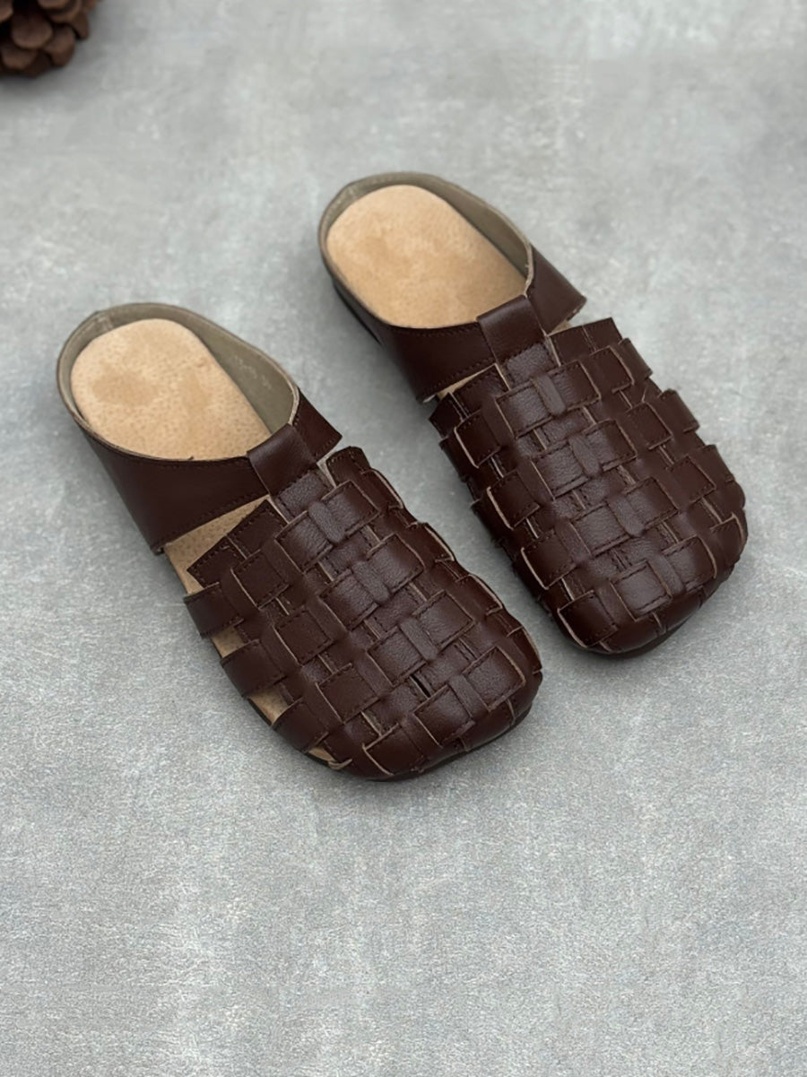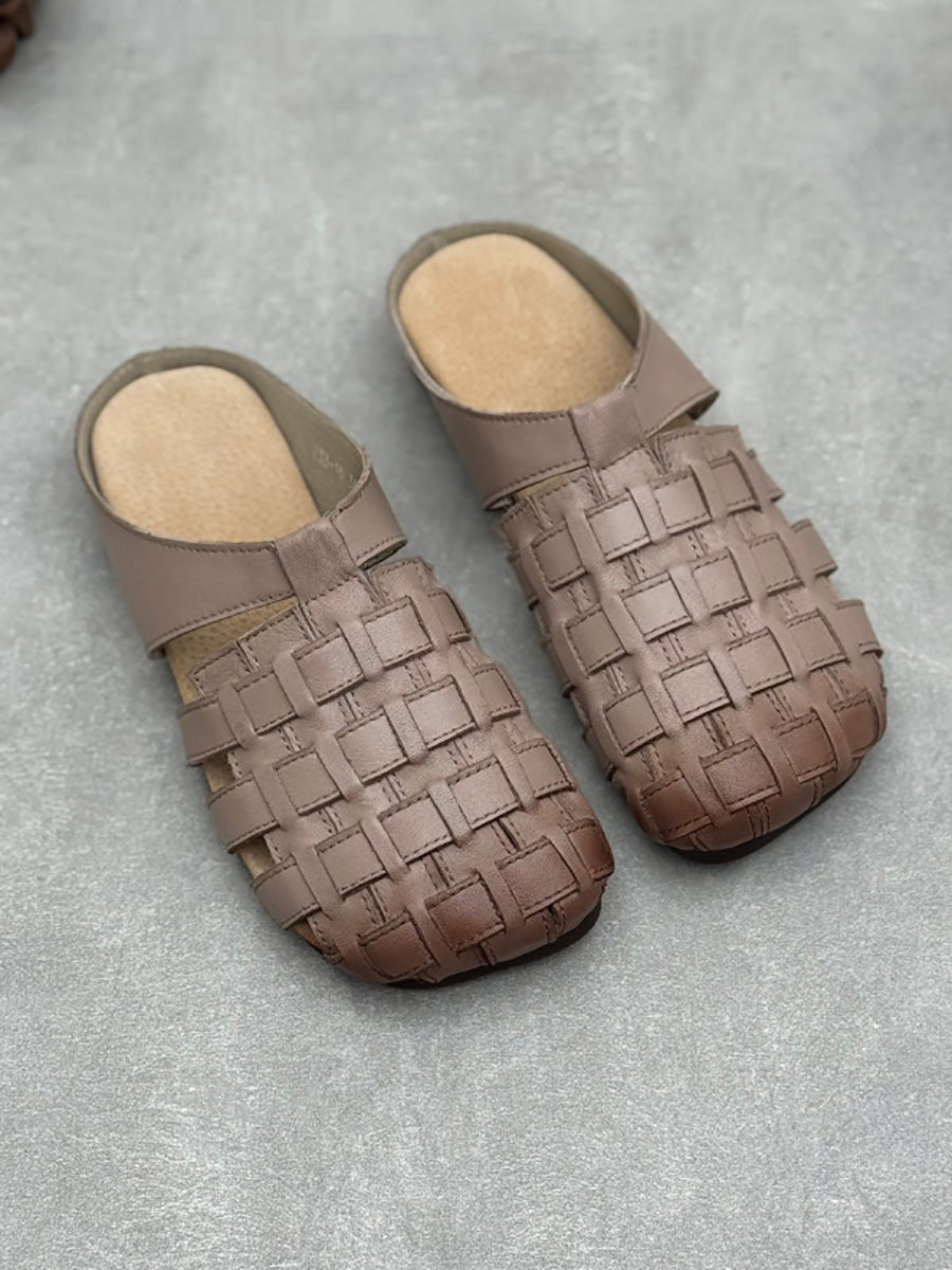 Women Summer Genuine Leather Weave Slippers