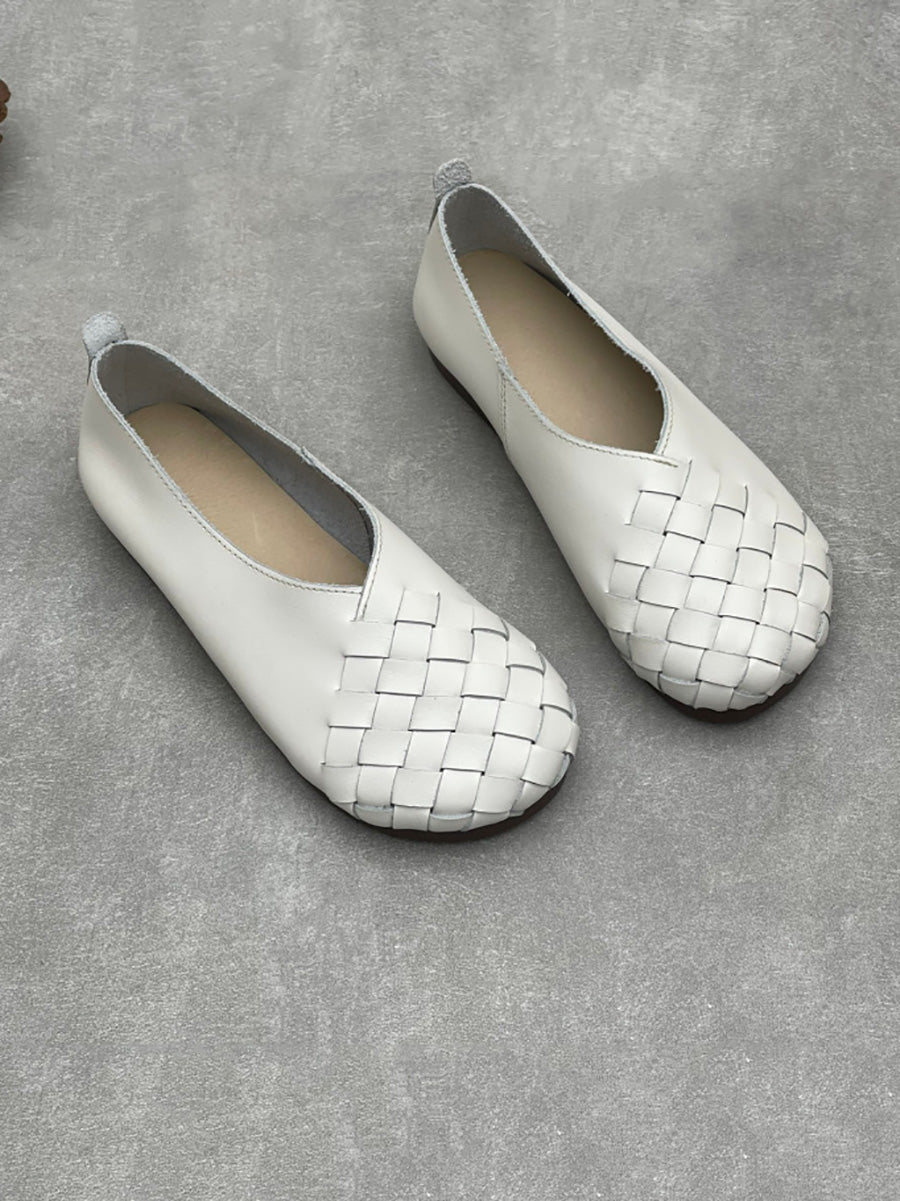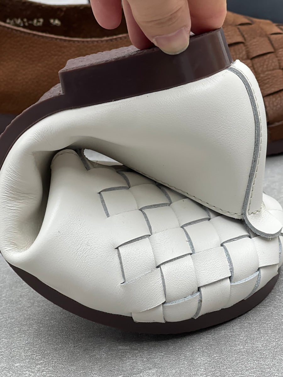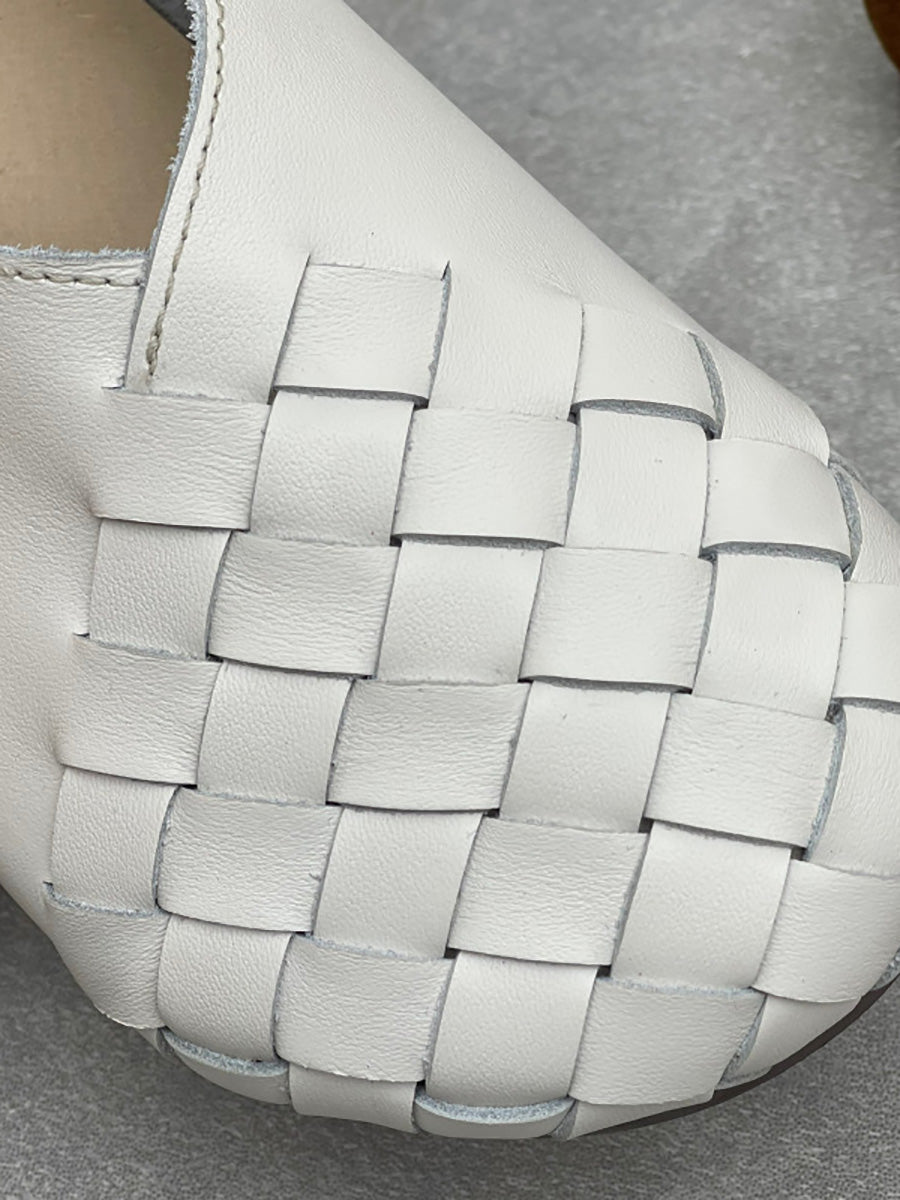 Women Summer Soft Leather Weave Flat Shoes