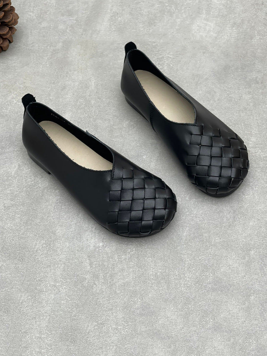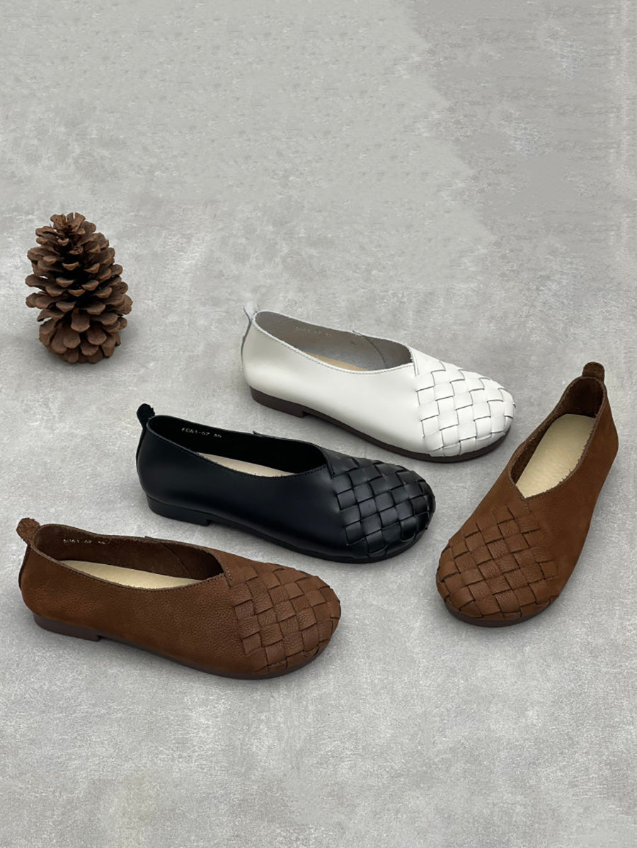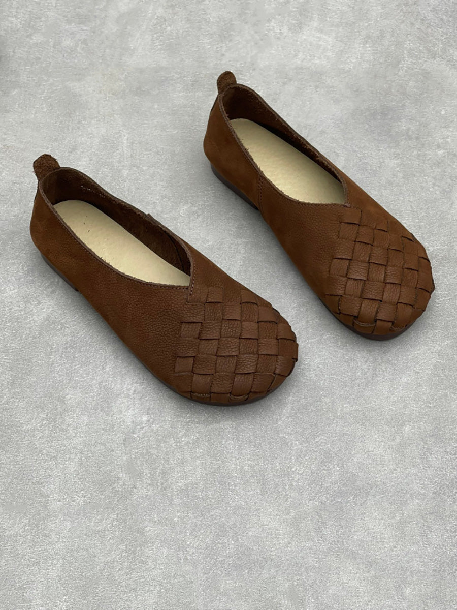 Women Summer Soft Leather Weave Flat Shoes