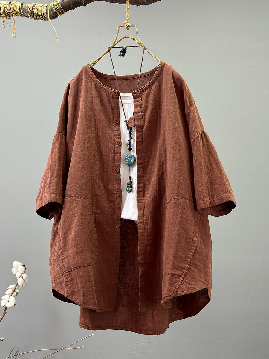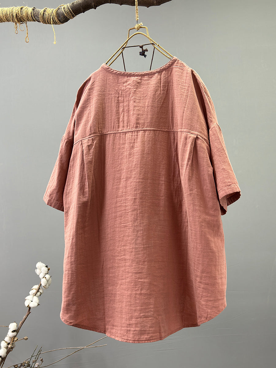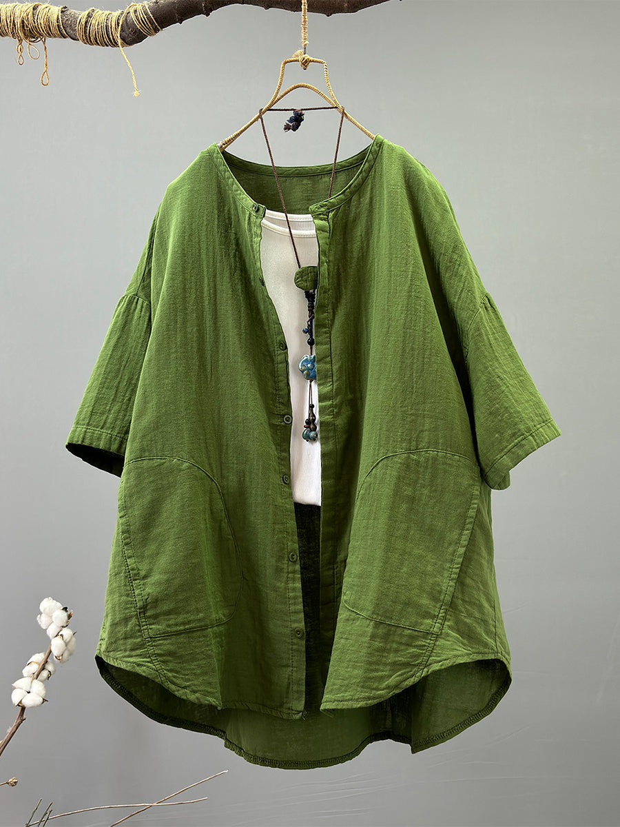 Women Summer Casual Pure Color 100%Cotton Shirt
