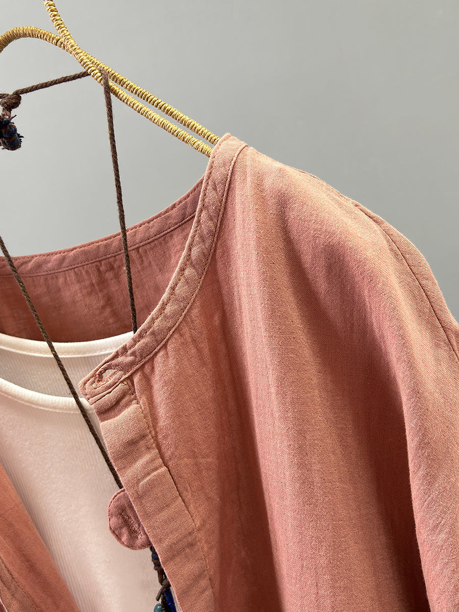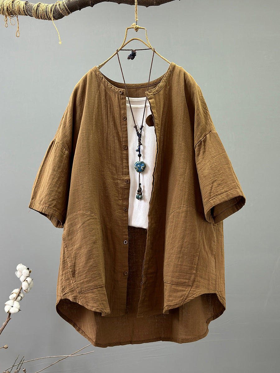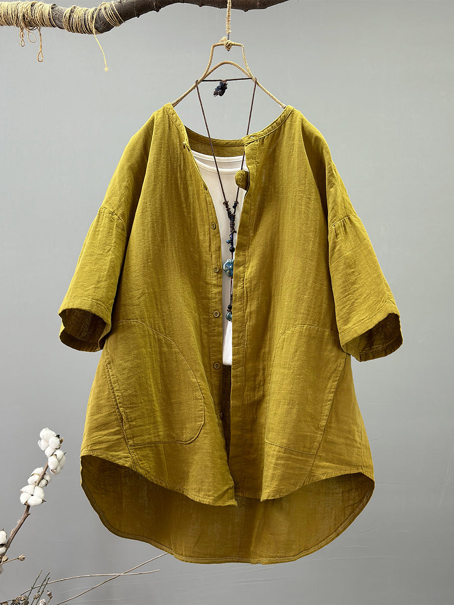 Women Summer Casual Pure Color 100%Cotton Shirt