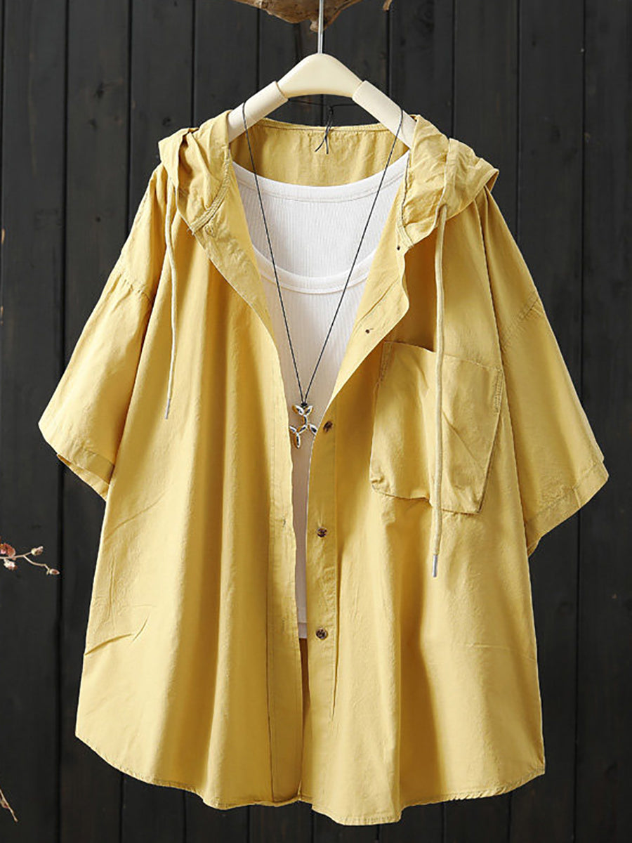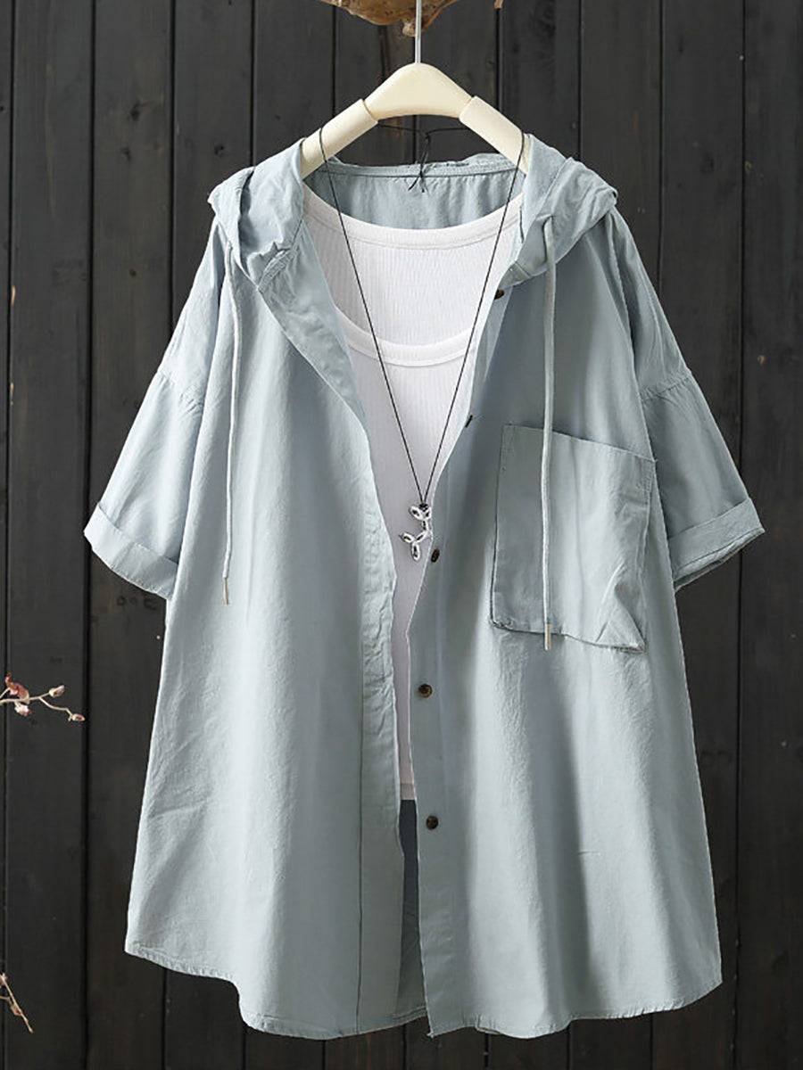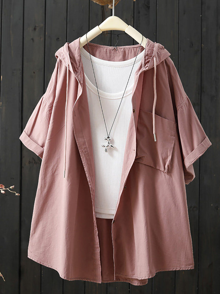 Women Summer Casual Pure Color Hoodie