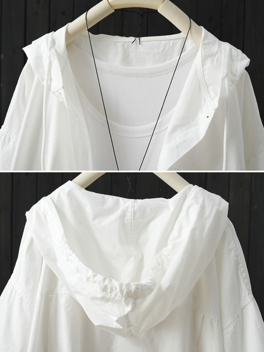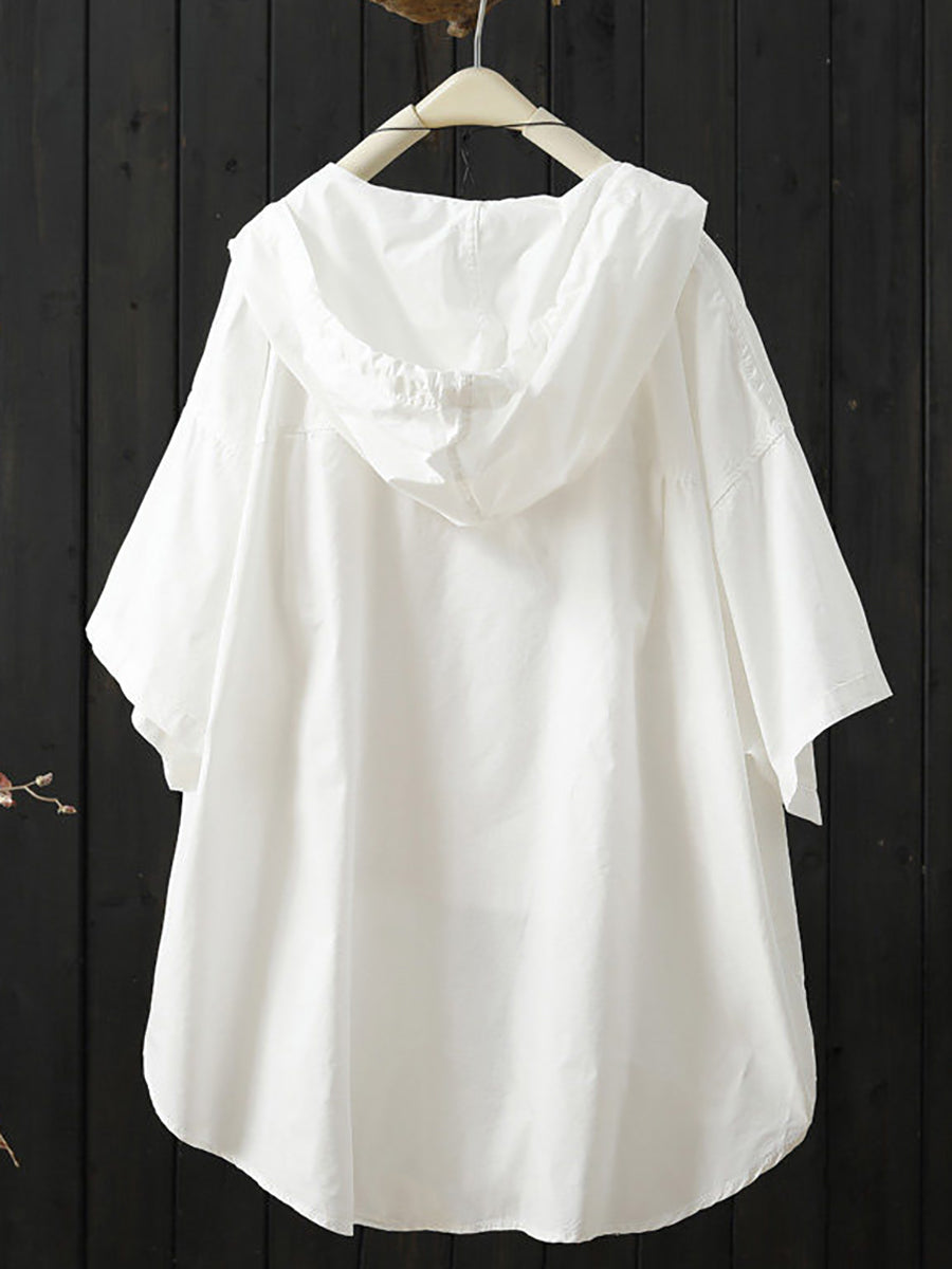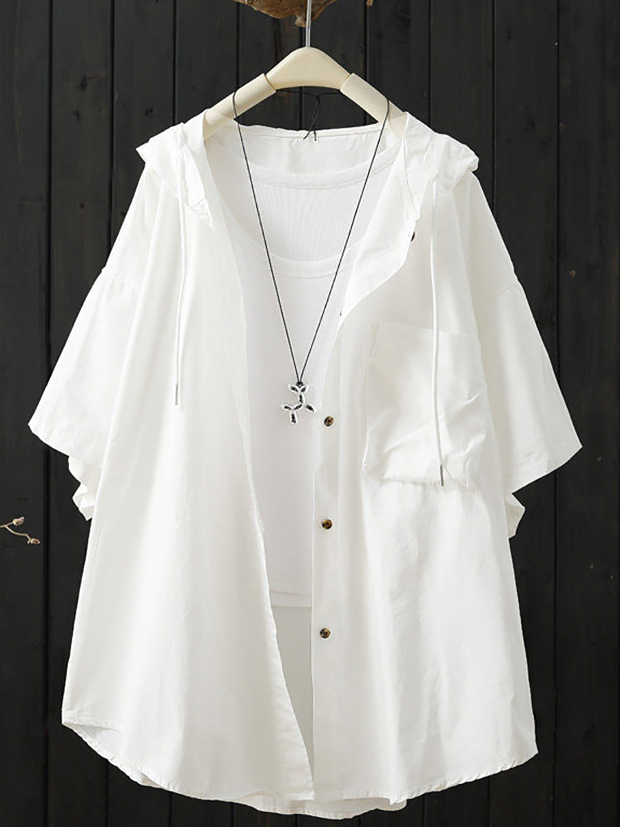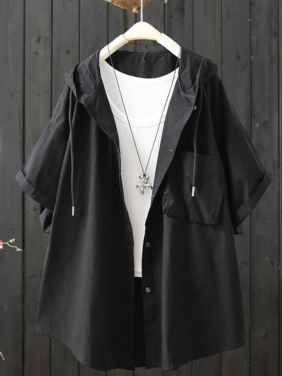 Women Summer Casual Pure Color Hoodie