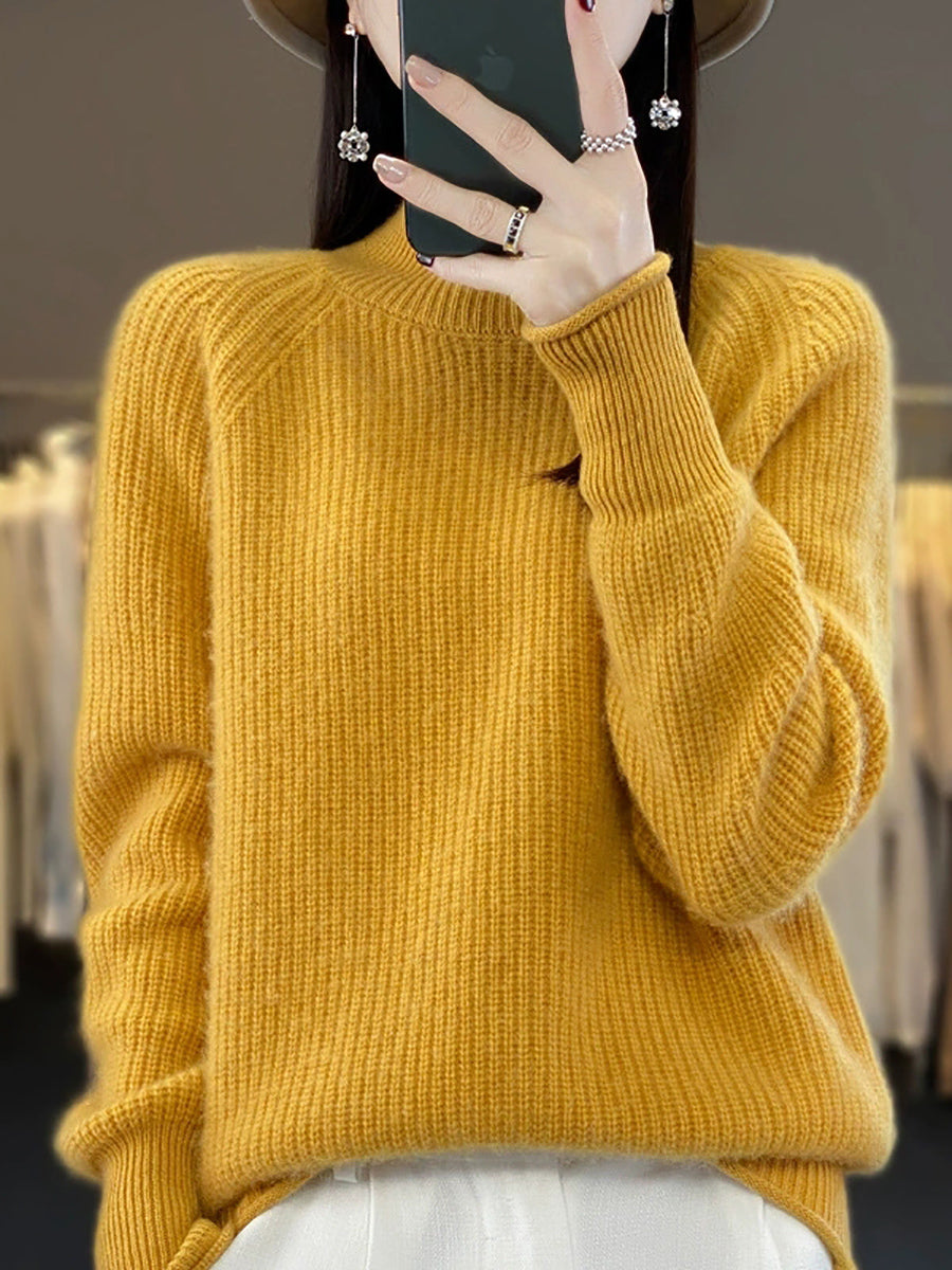Women Winter Pure Color Turtleneck Wool Sweater