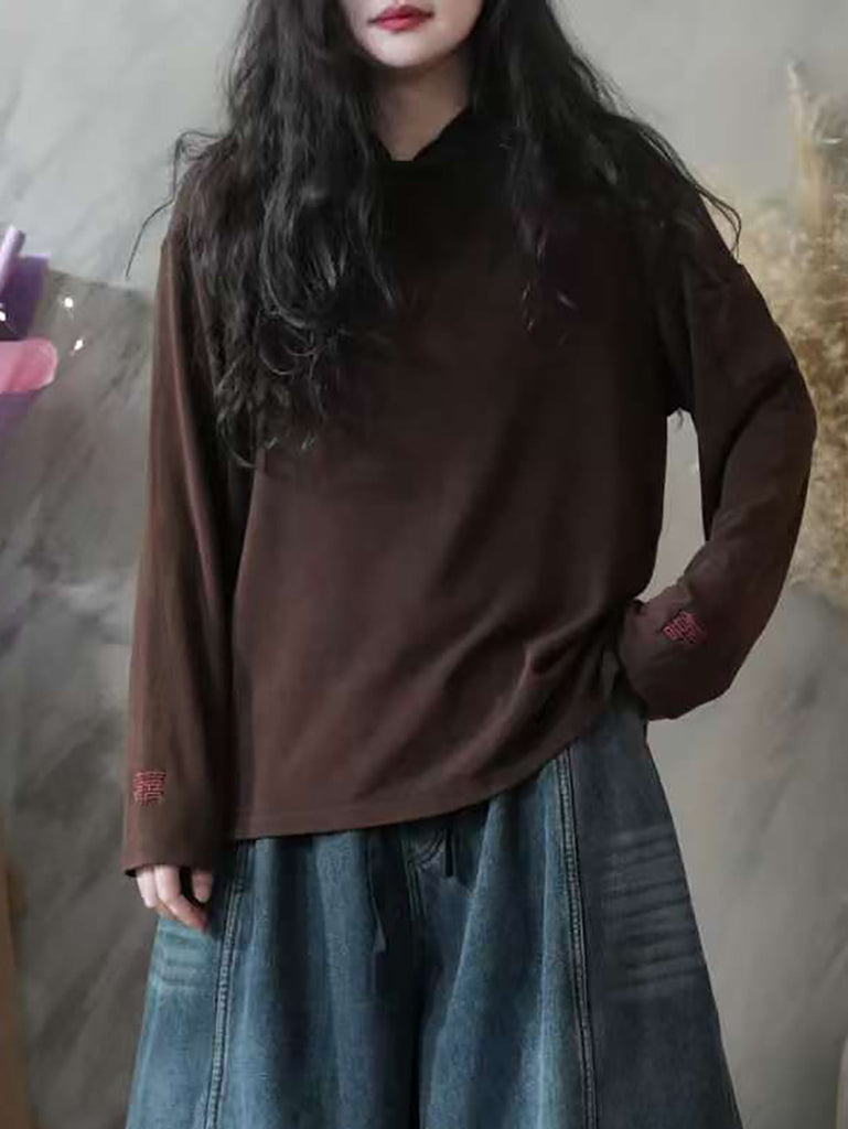 Women Autumn Casual 100%Cotton Half-Turtleneck Blouse