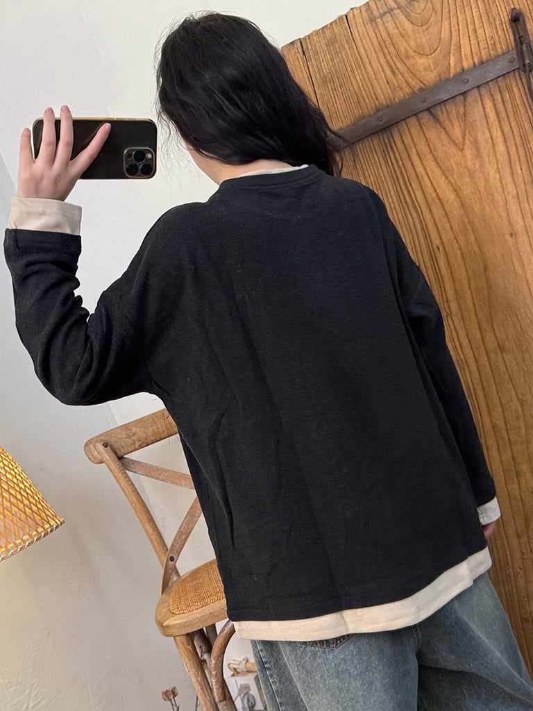 Women Autumn Casual Colorblock O-Neck Blouse