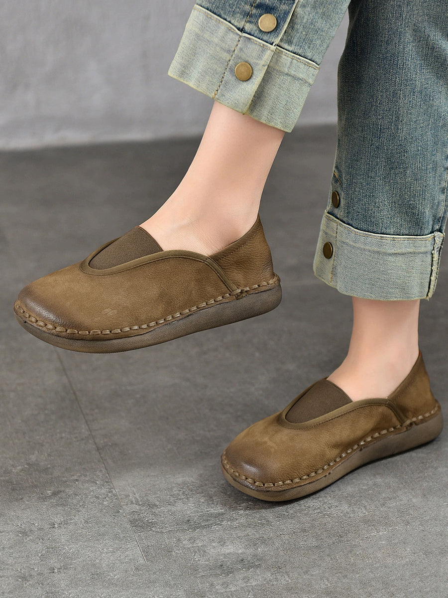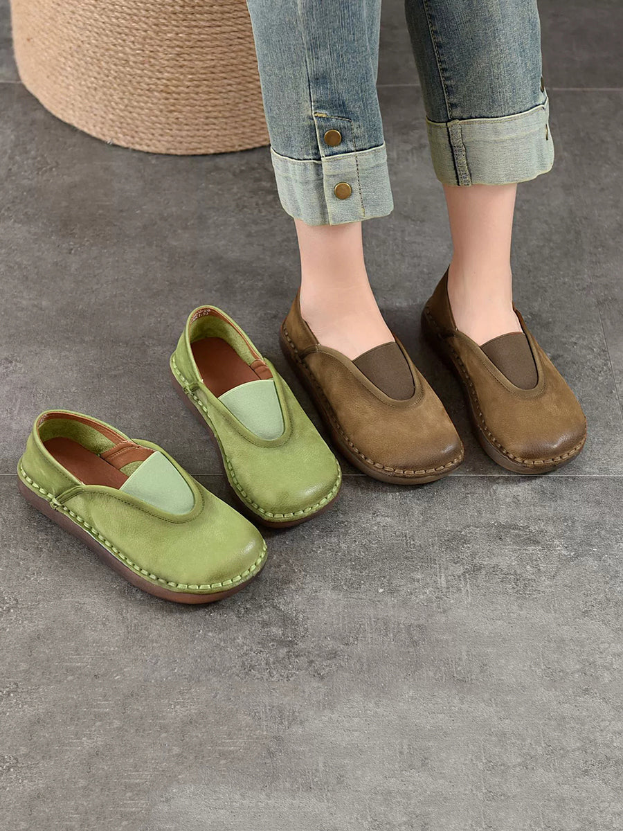 Women Vintage Genuine Leather Spliced Flat Shoes