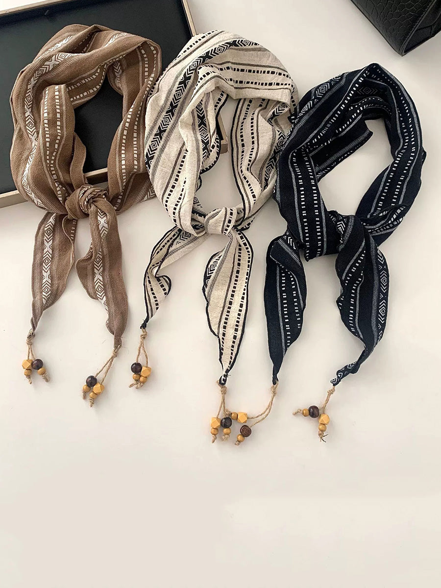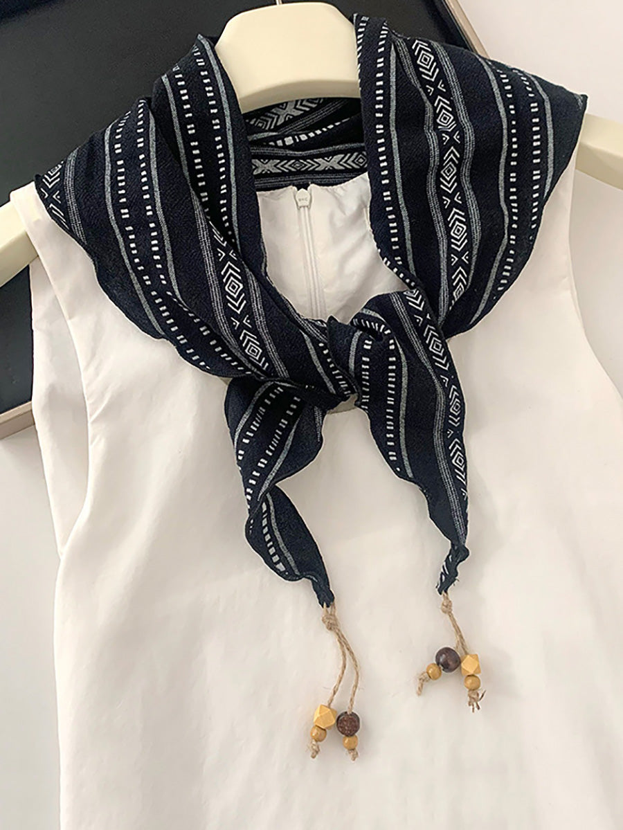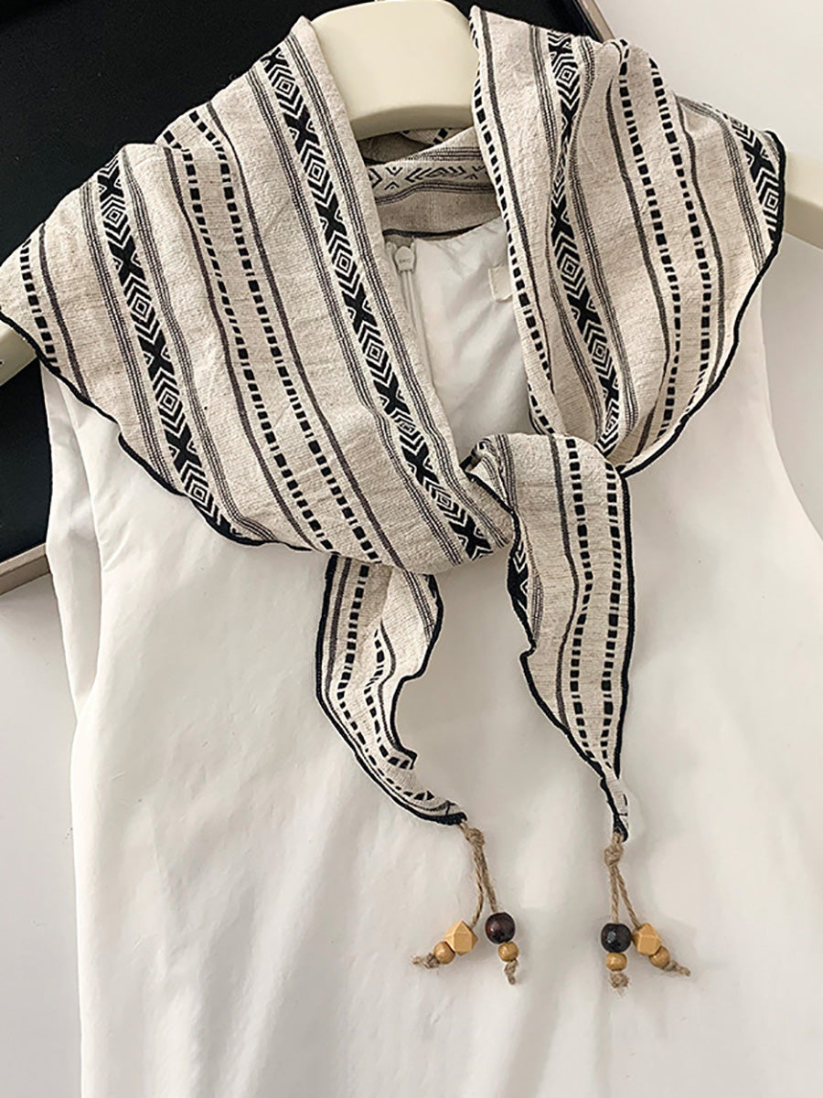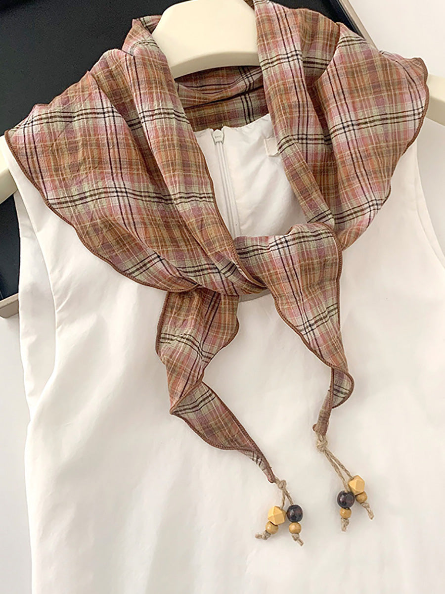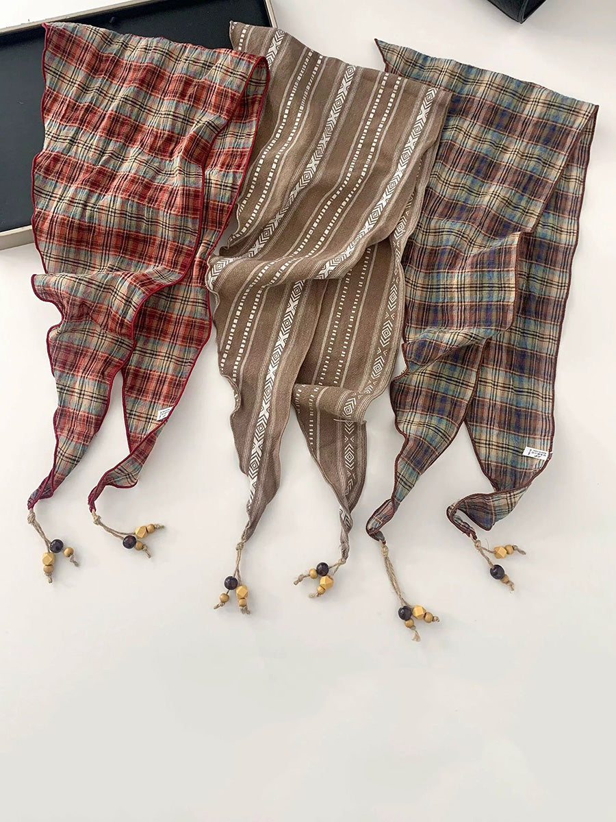 Women Vintage Plaid Bead Tassel Triangular Scarf