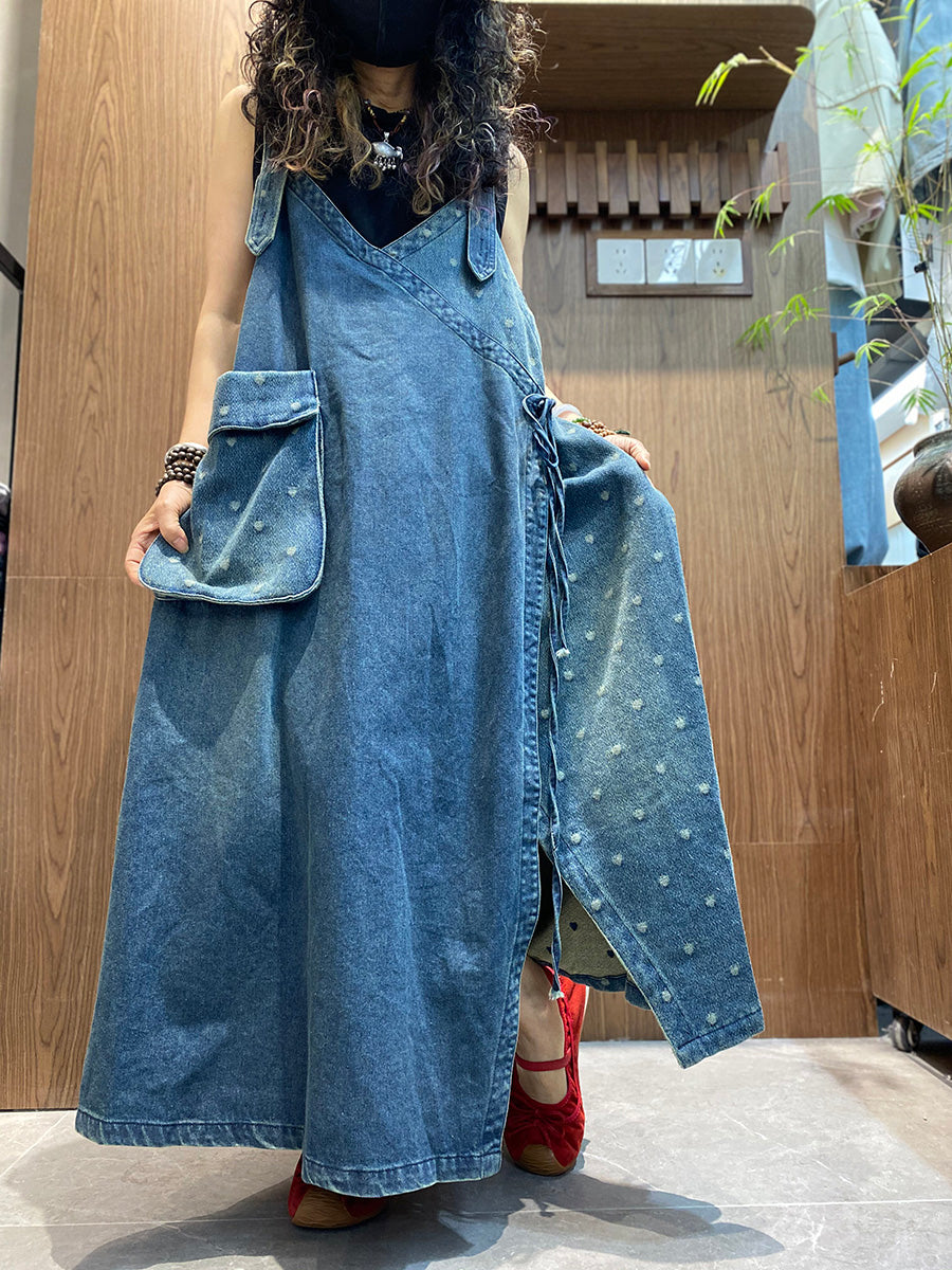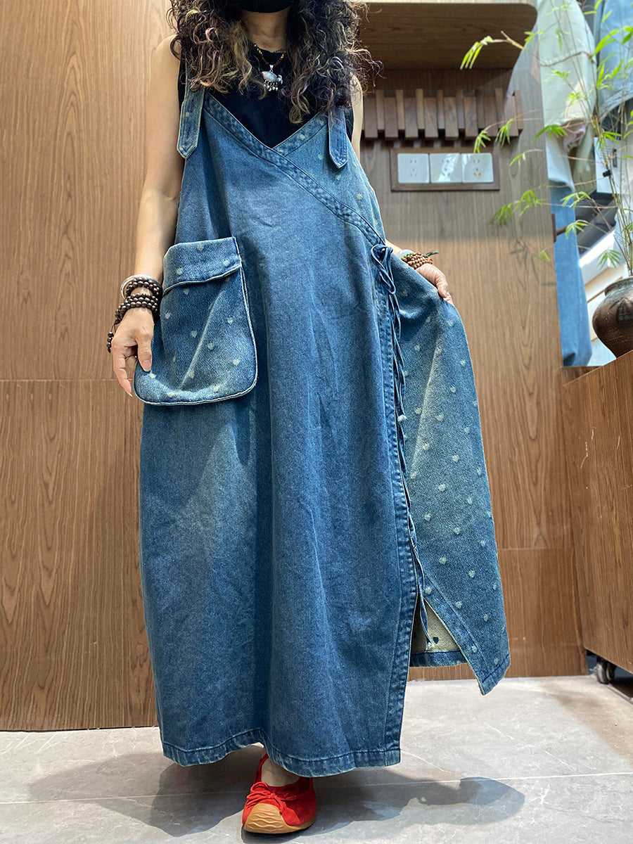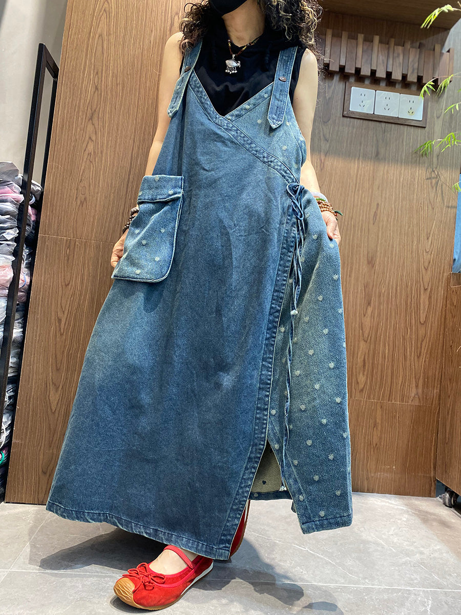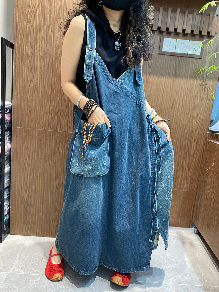 Women Casual Spliced Denim Overall Dress