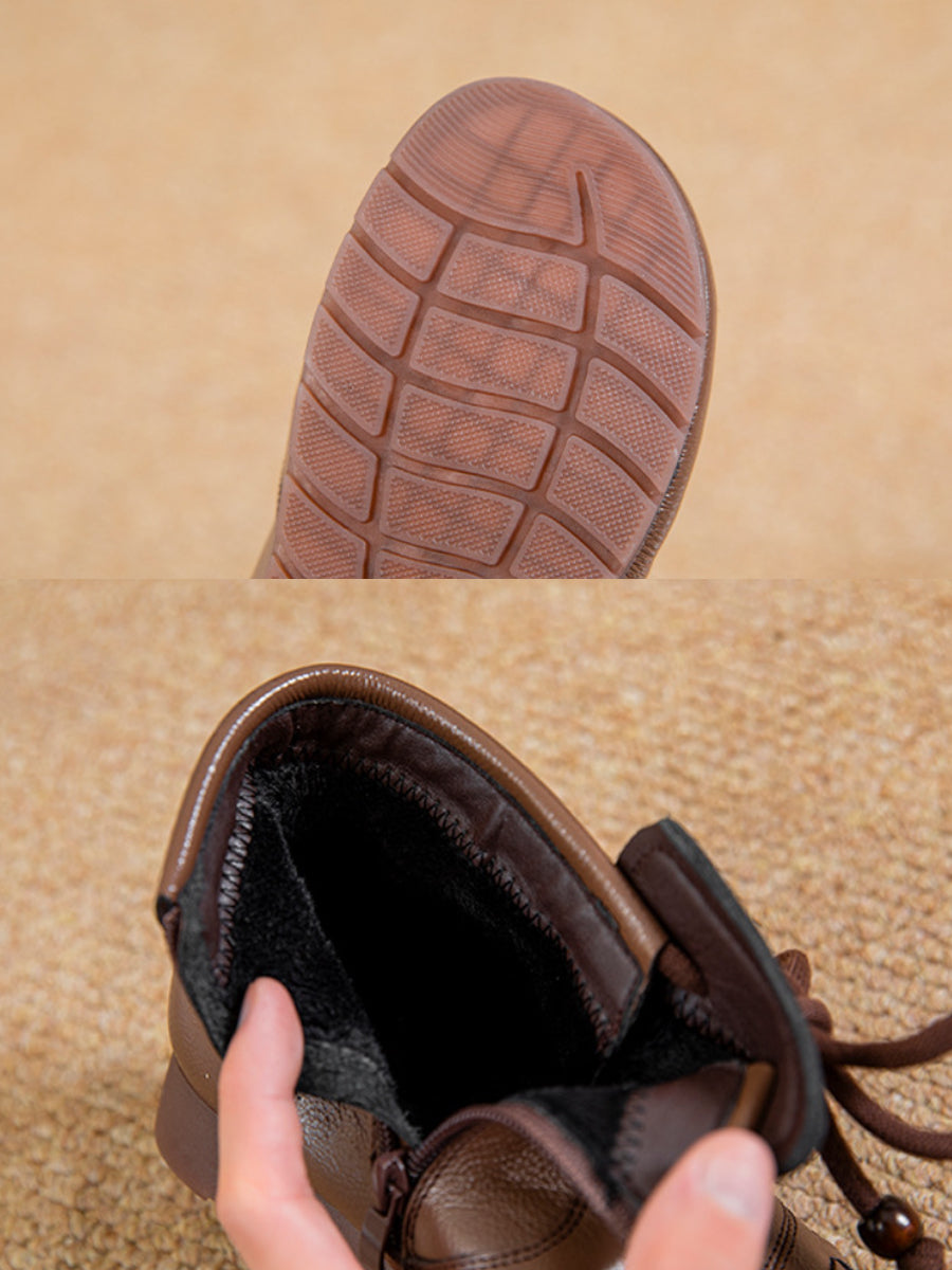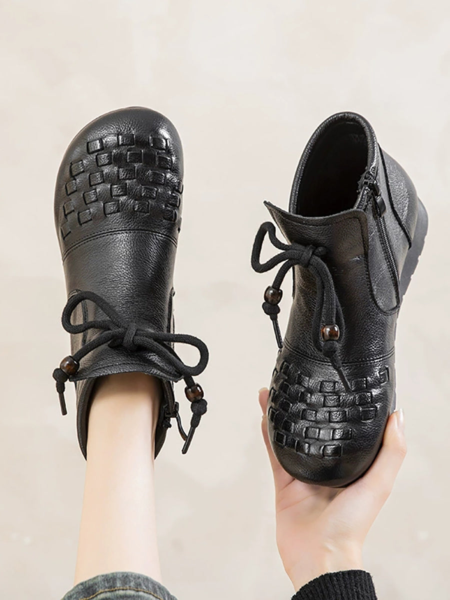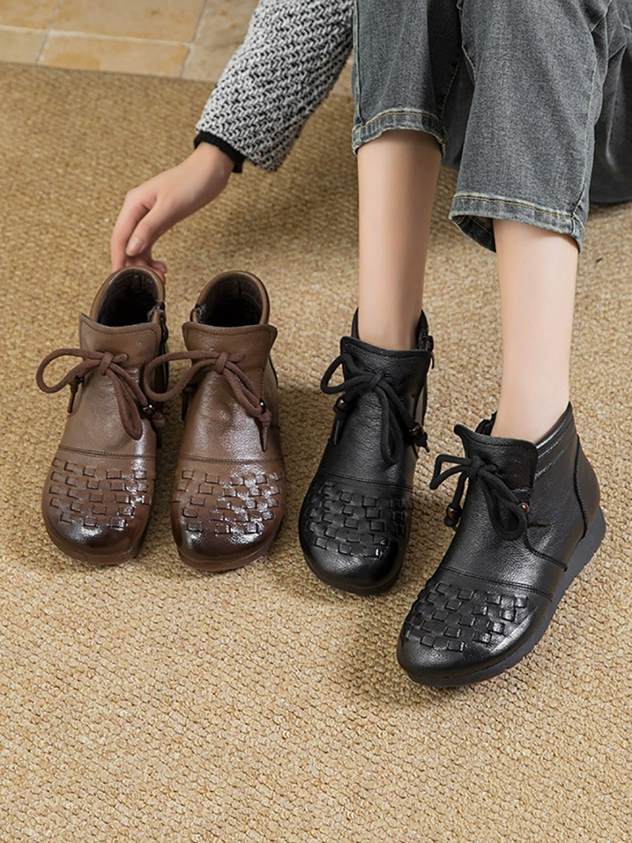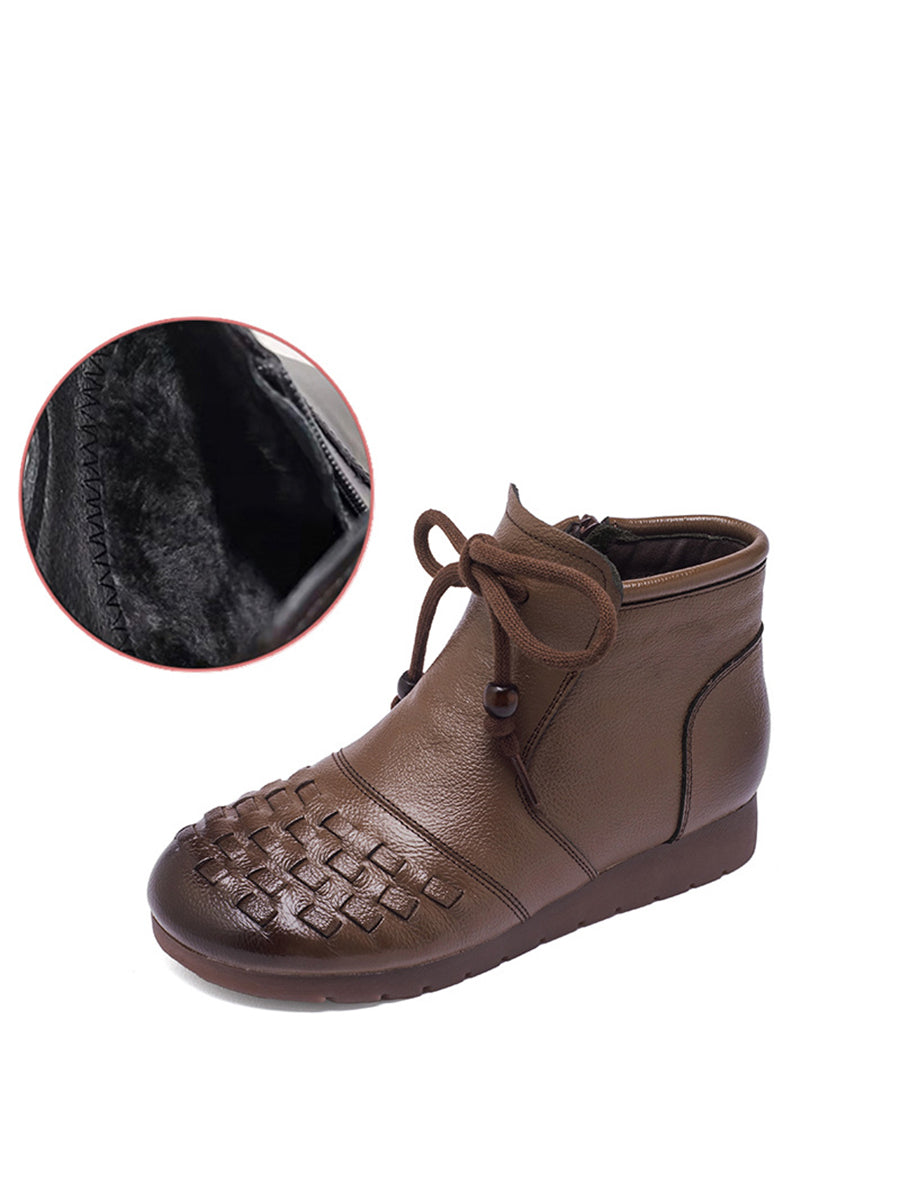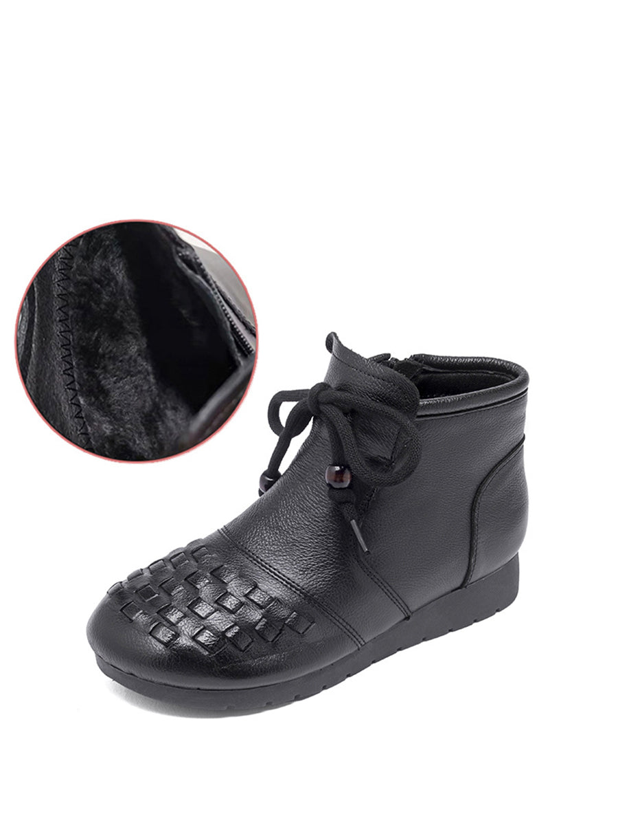 Women Winter Pure Color Leather Weave Ankle Boots