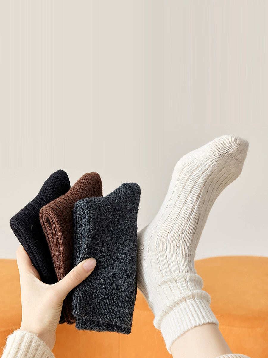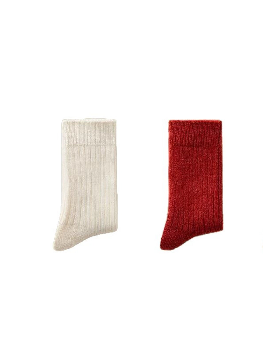 2 Pairs Women Winter Artsy Pure Color Warm Socks