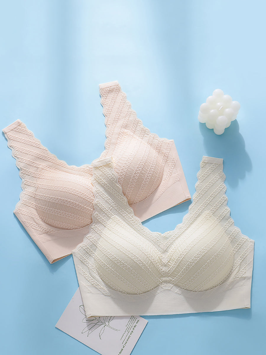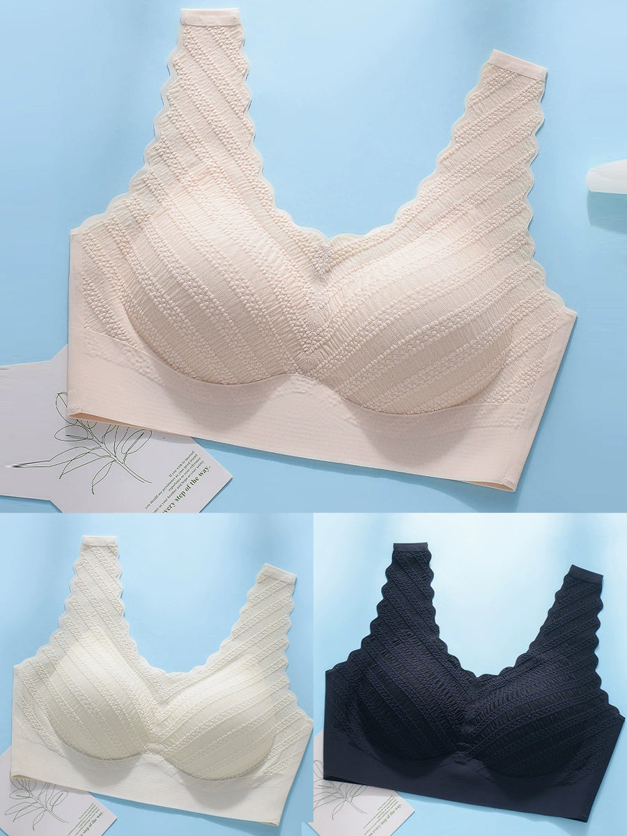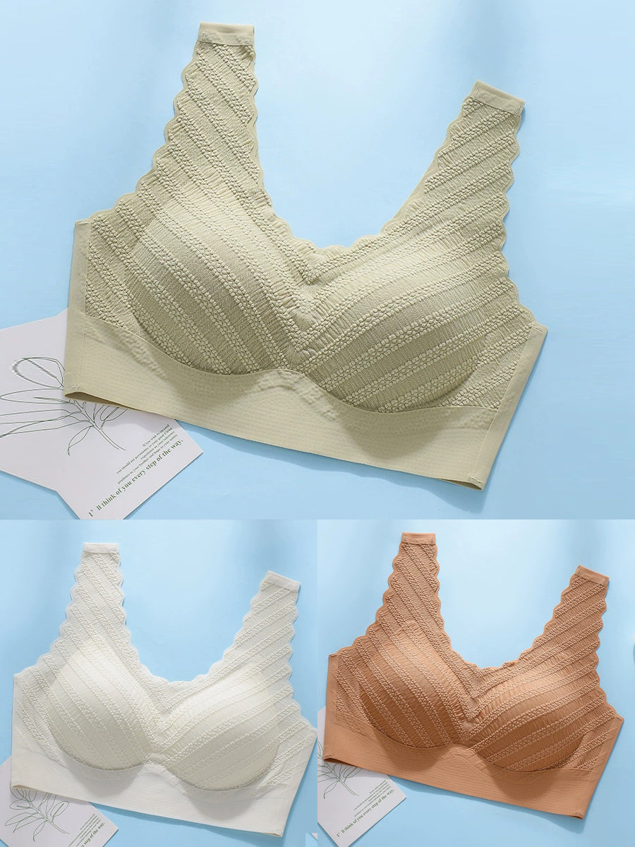 3 Pieces Women Artsy Pure Color One-piece Wireless Bra