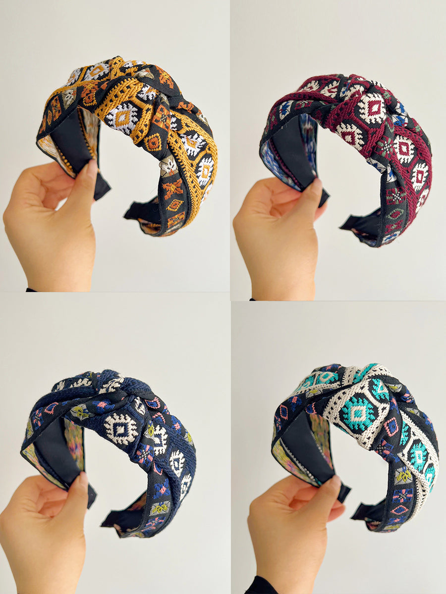 4 Pieces Winter Artsy Flower Knitted Wide Hairband