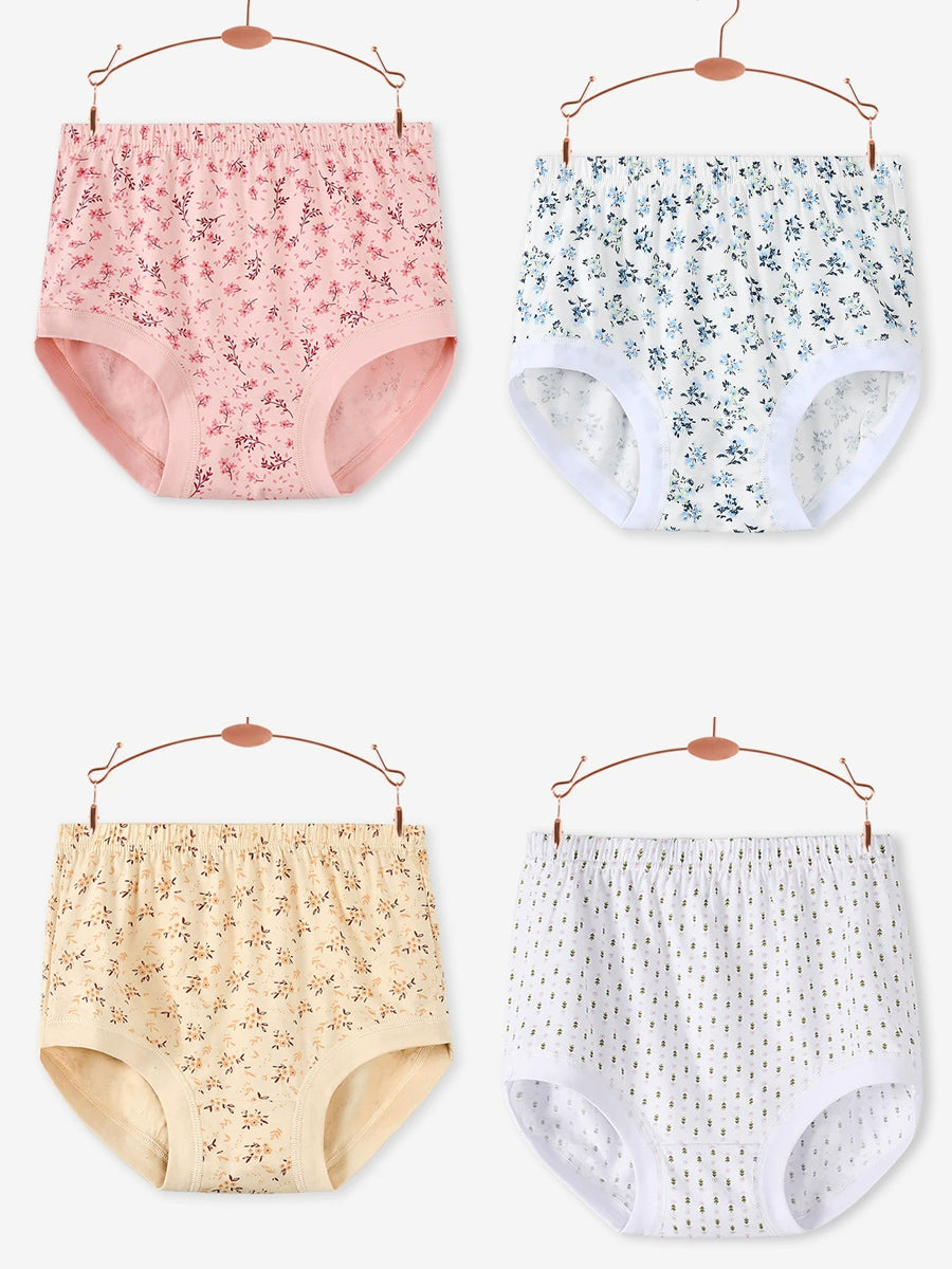 4 Pieces Women Artsy Floral High Waist Underwear