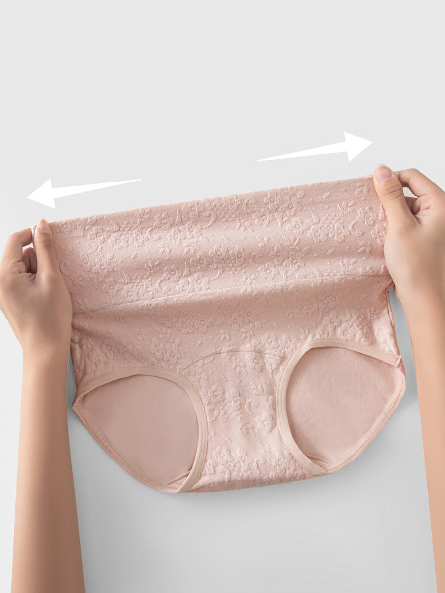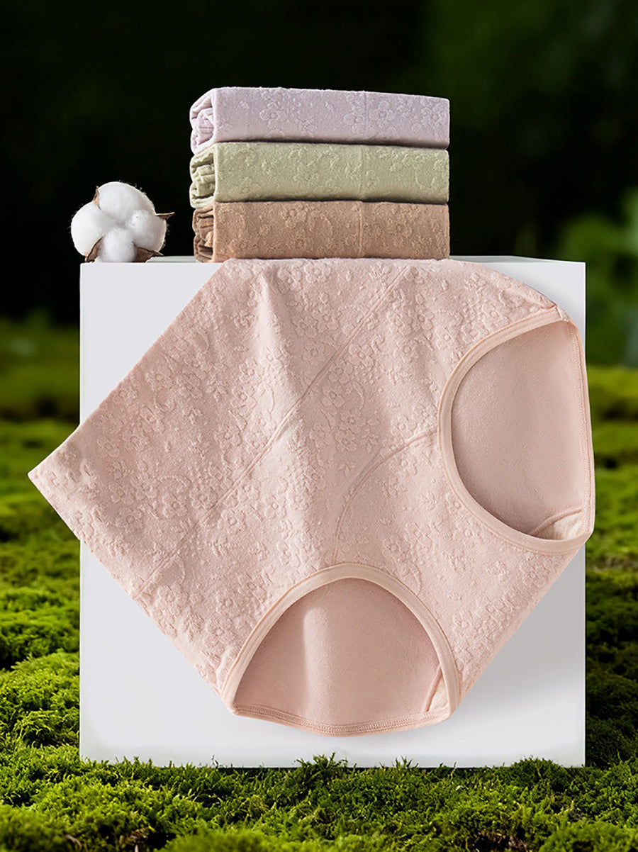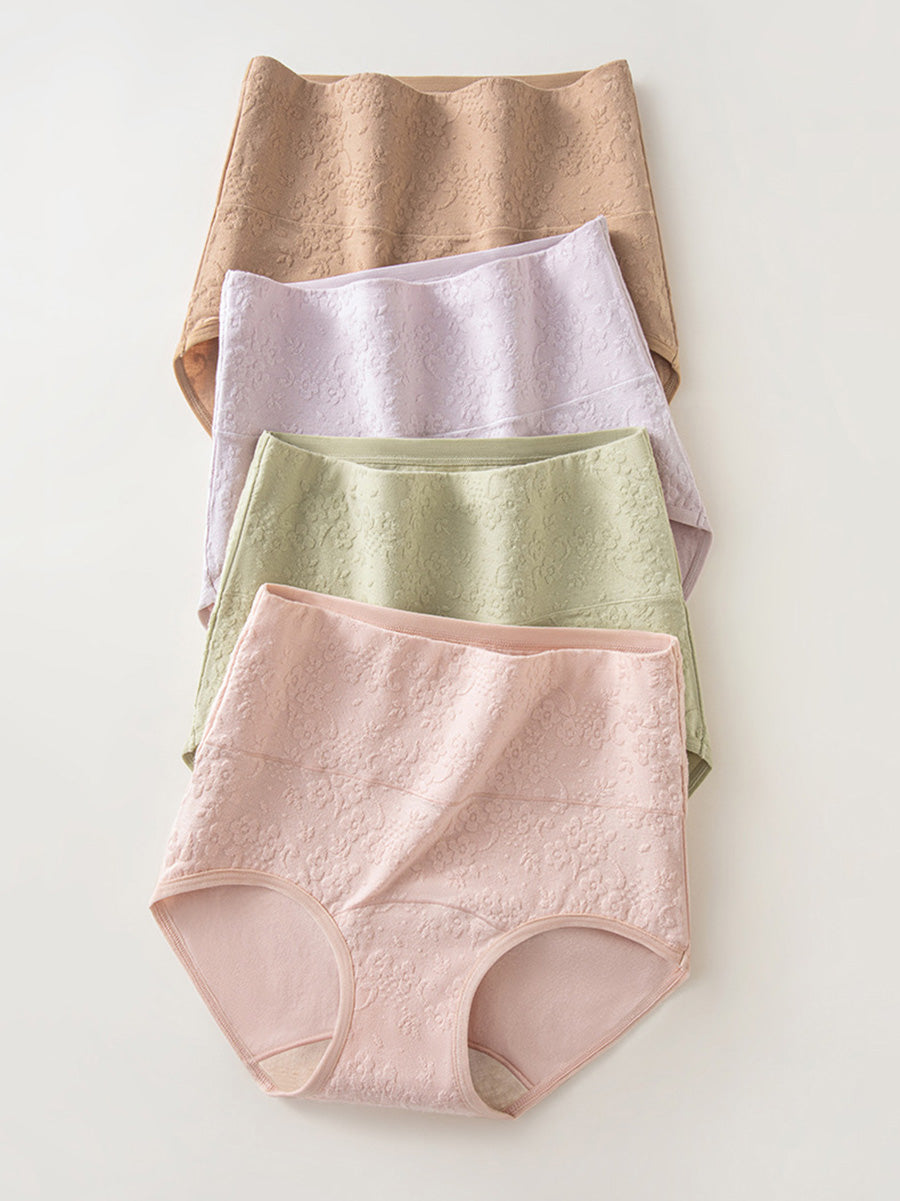 4 Pieces Women Artsy Flower Embossing High Waist Underwear
