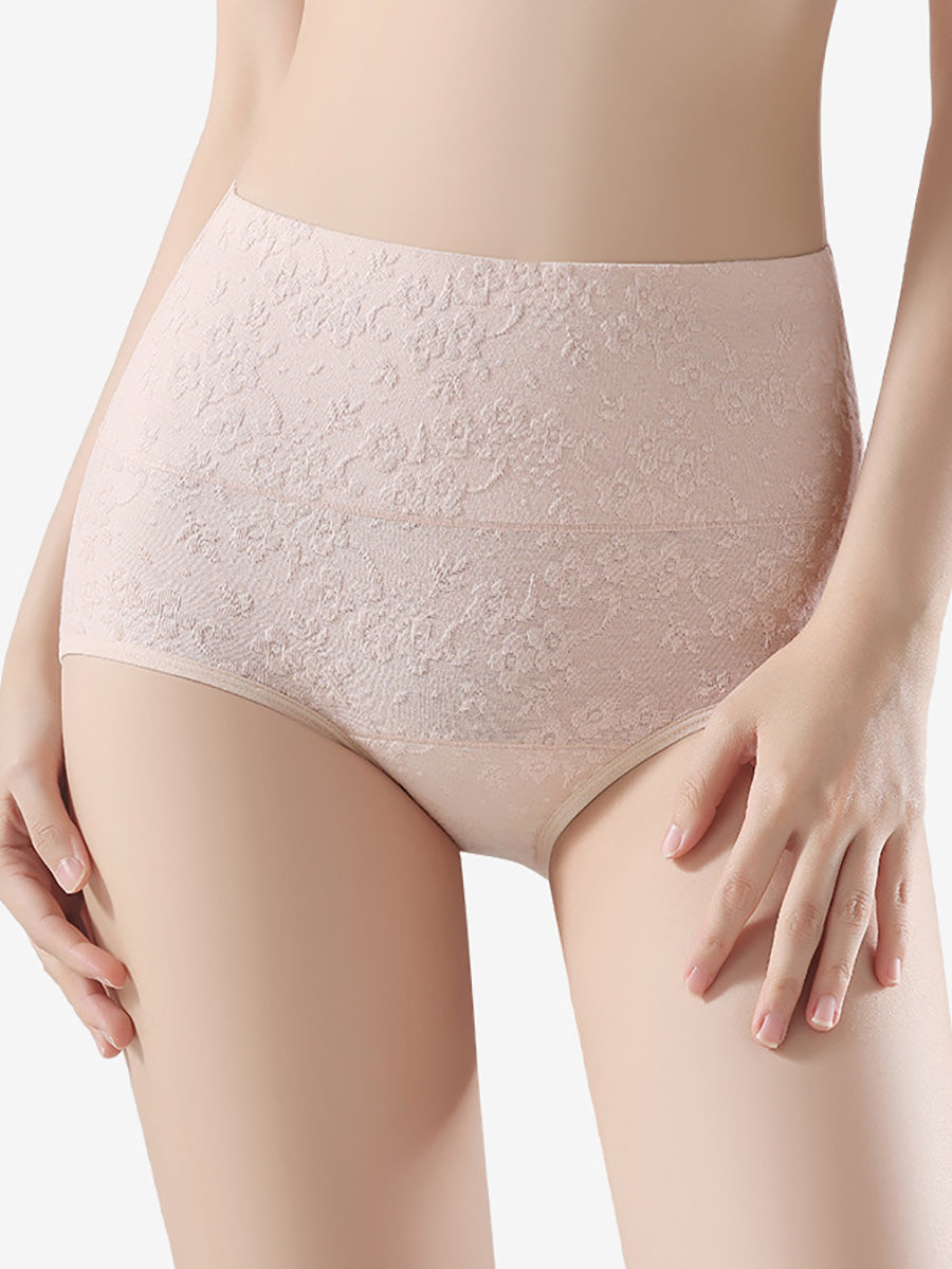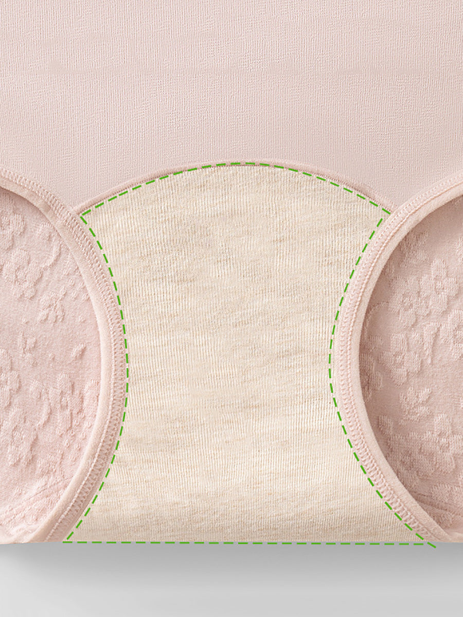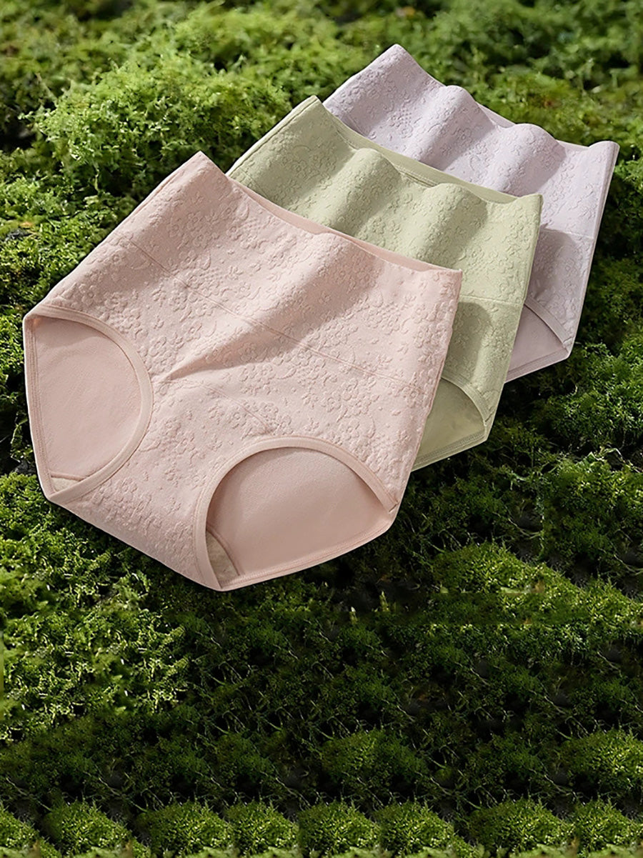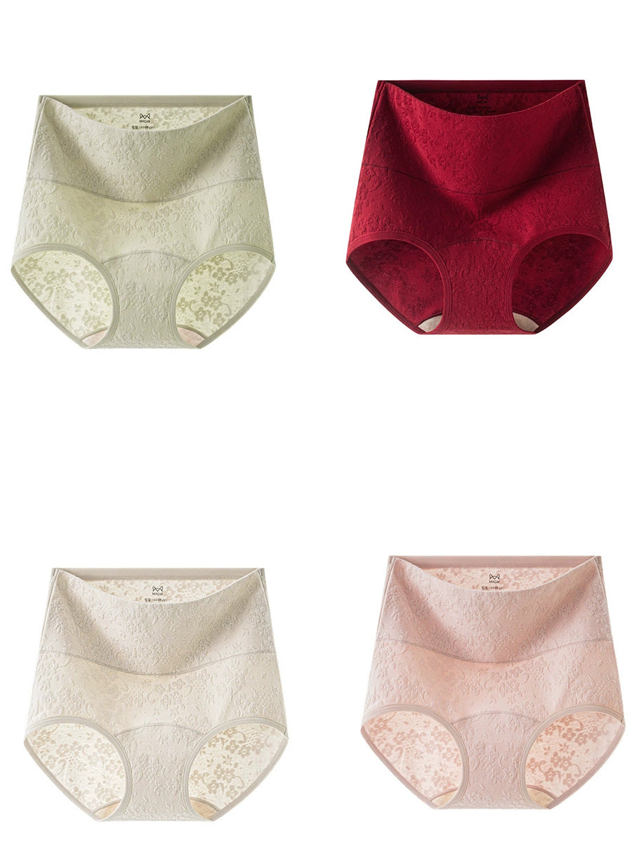 4 Pieces Women Artsy Flower Embossing High Waist Underwear