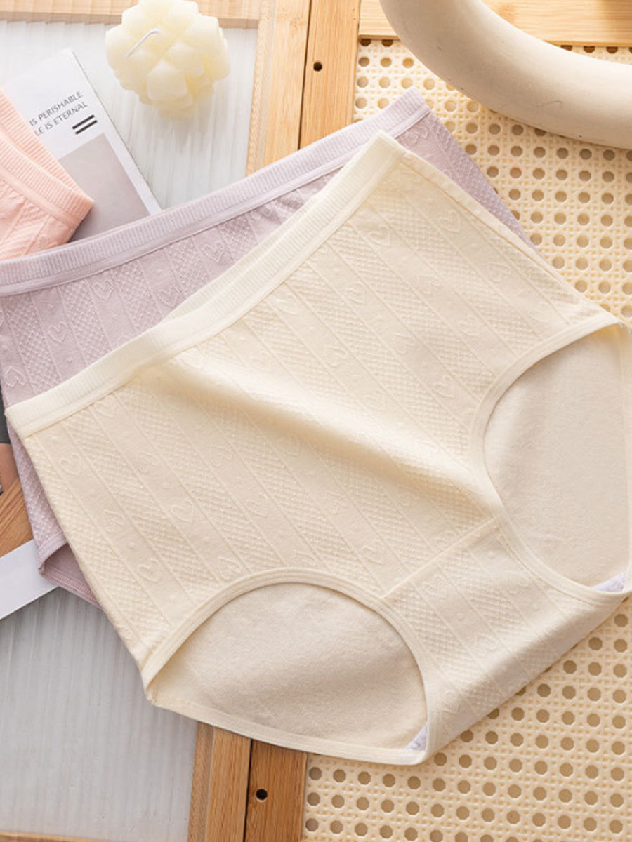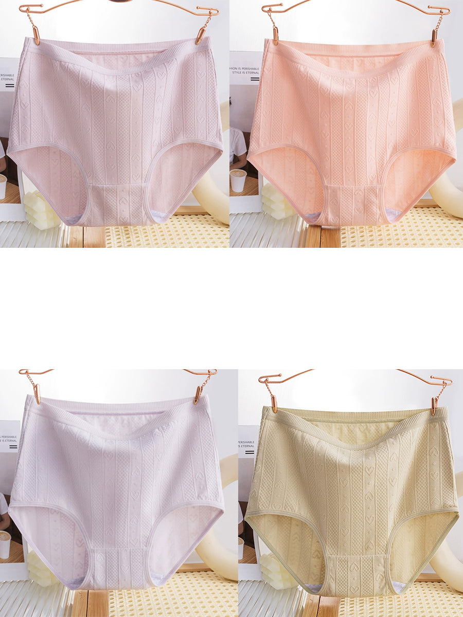 4 Pieces Women Artsy Heart Jacquard High Waist Underwear