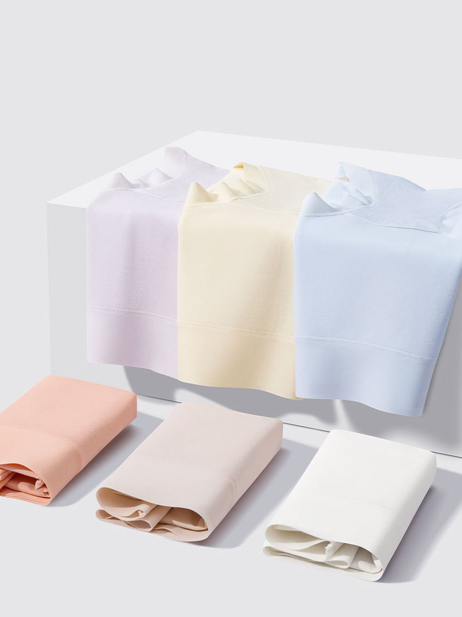 4 Pieces Women Artsy Pure Color High Waist Underwear